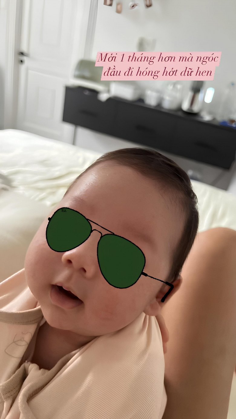 Gallery - Lisa nhà Khánh Thi 2 tháng tuổi tóc đầy đầu, mũi cao vút như Tây, trông khác hẳn lúc mới chào đời