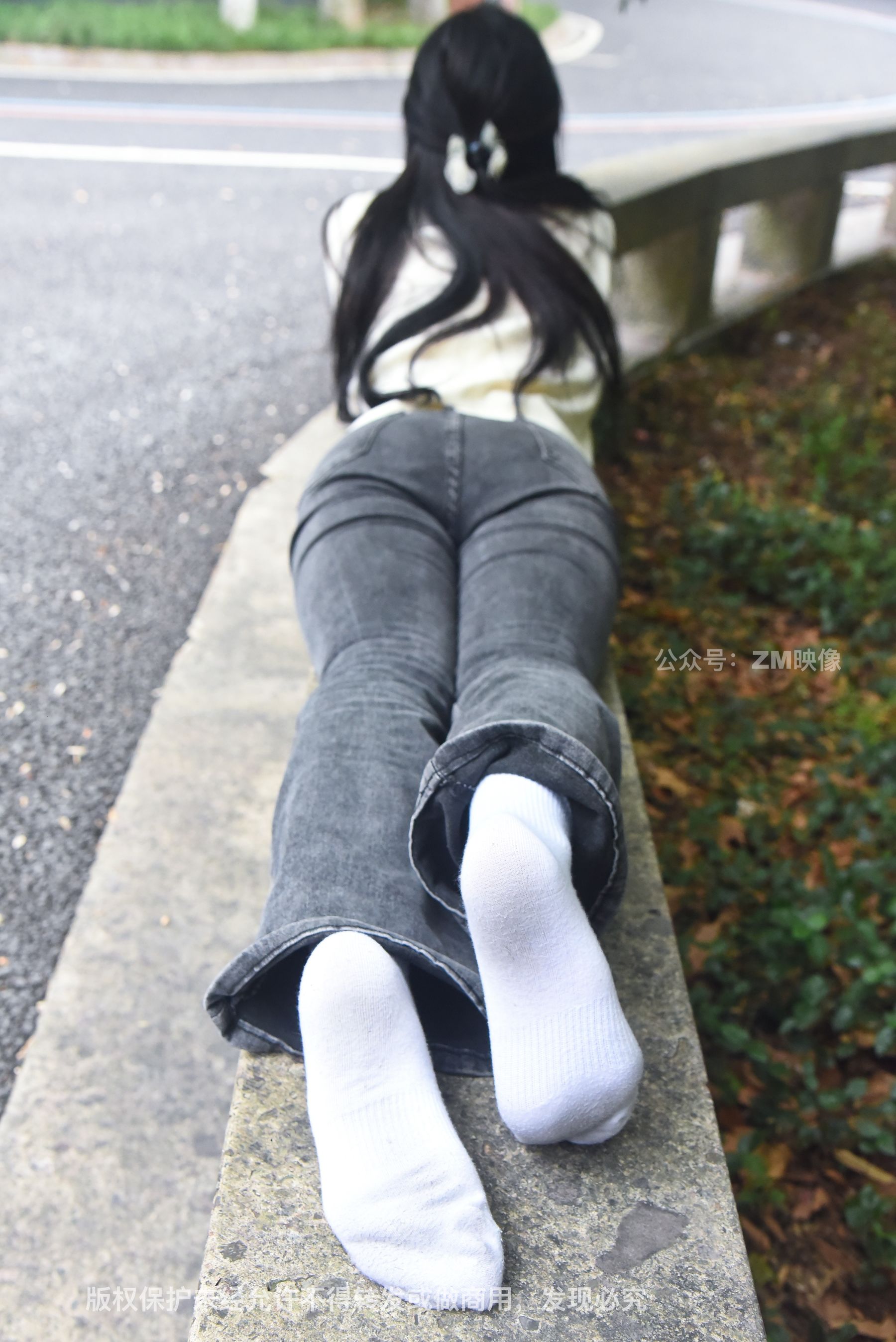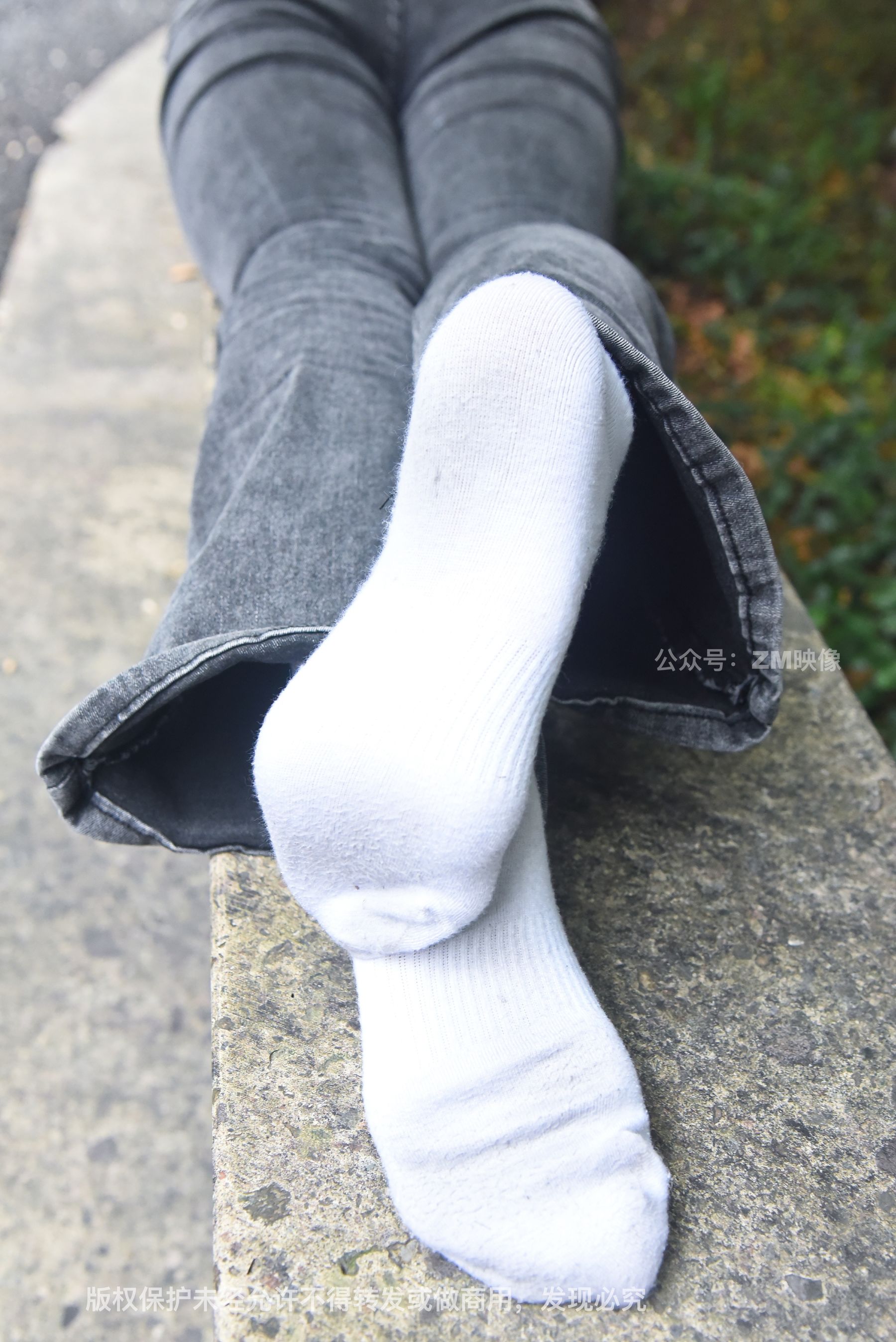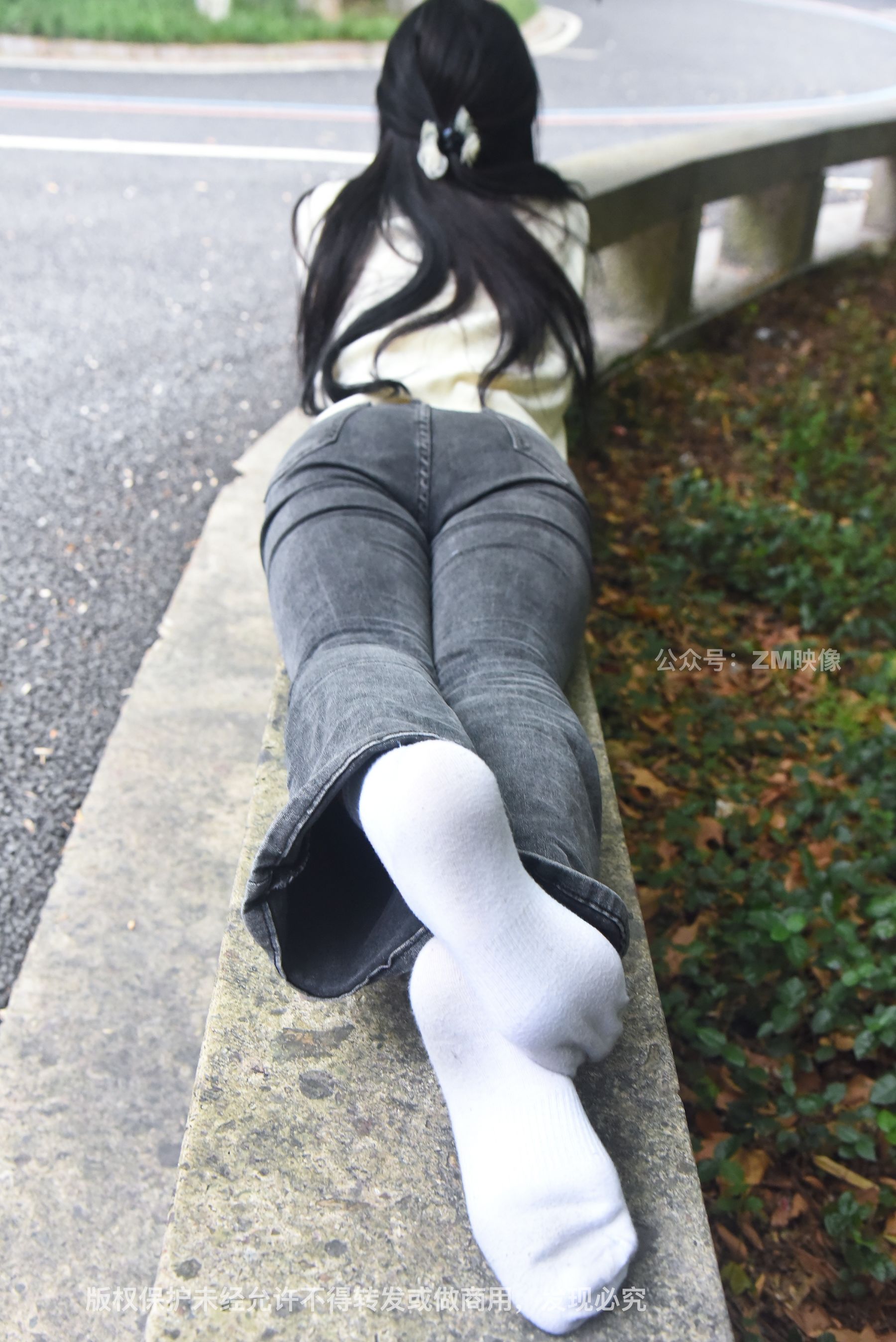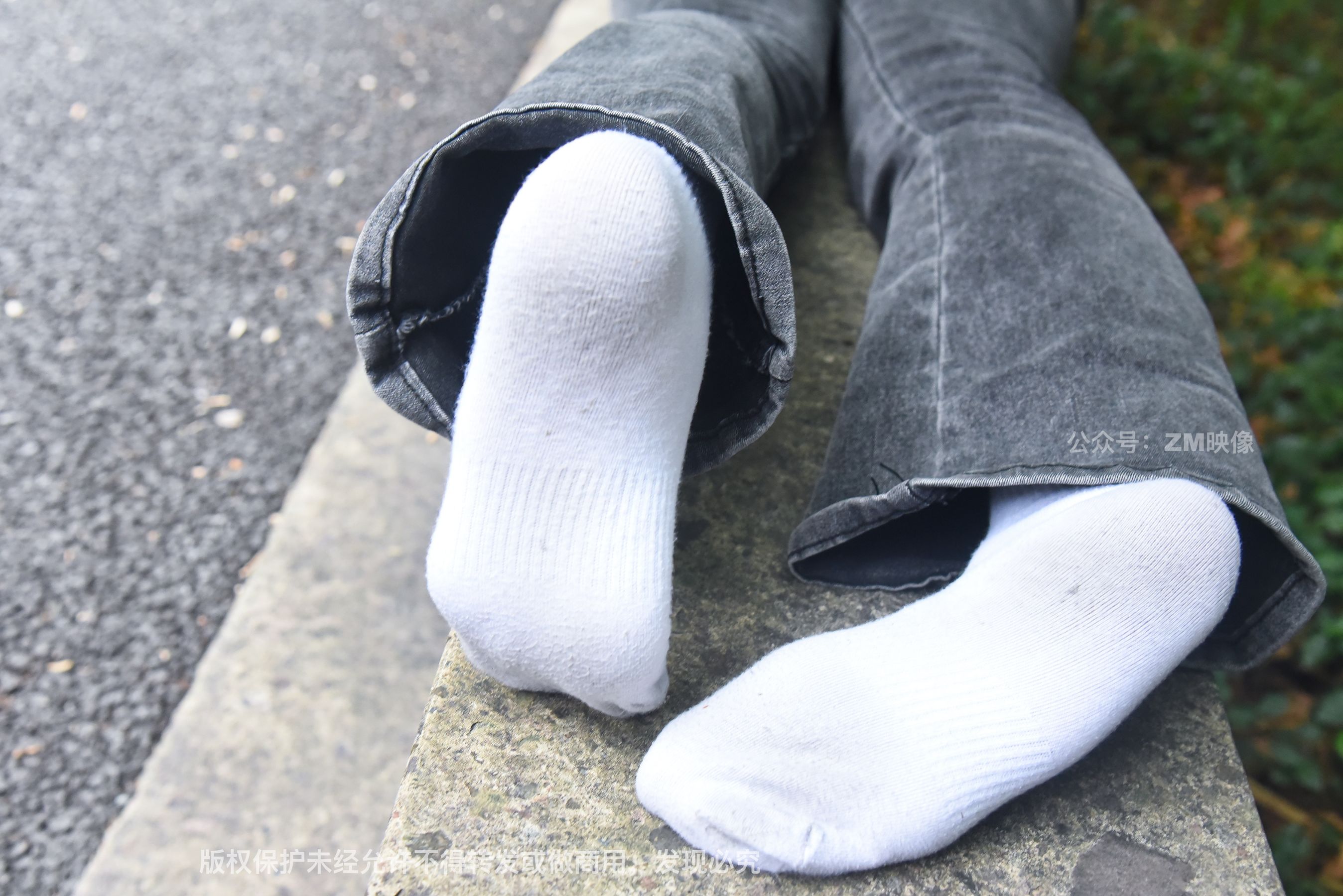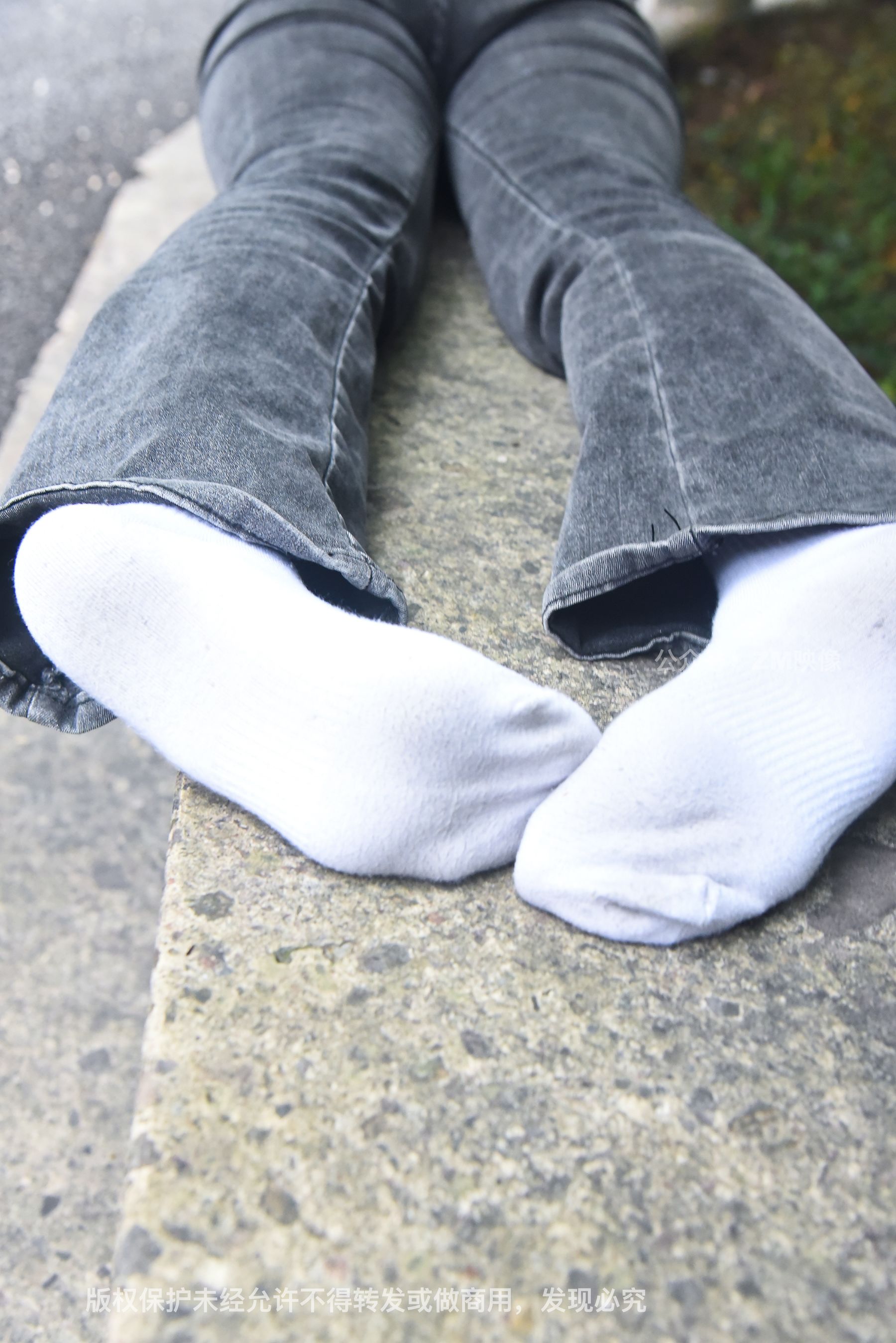 Gallery - [织梦映像] 少女牛仔裤草地白袜 - 图库库