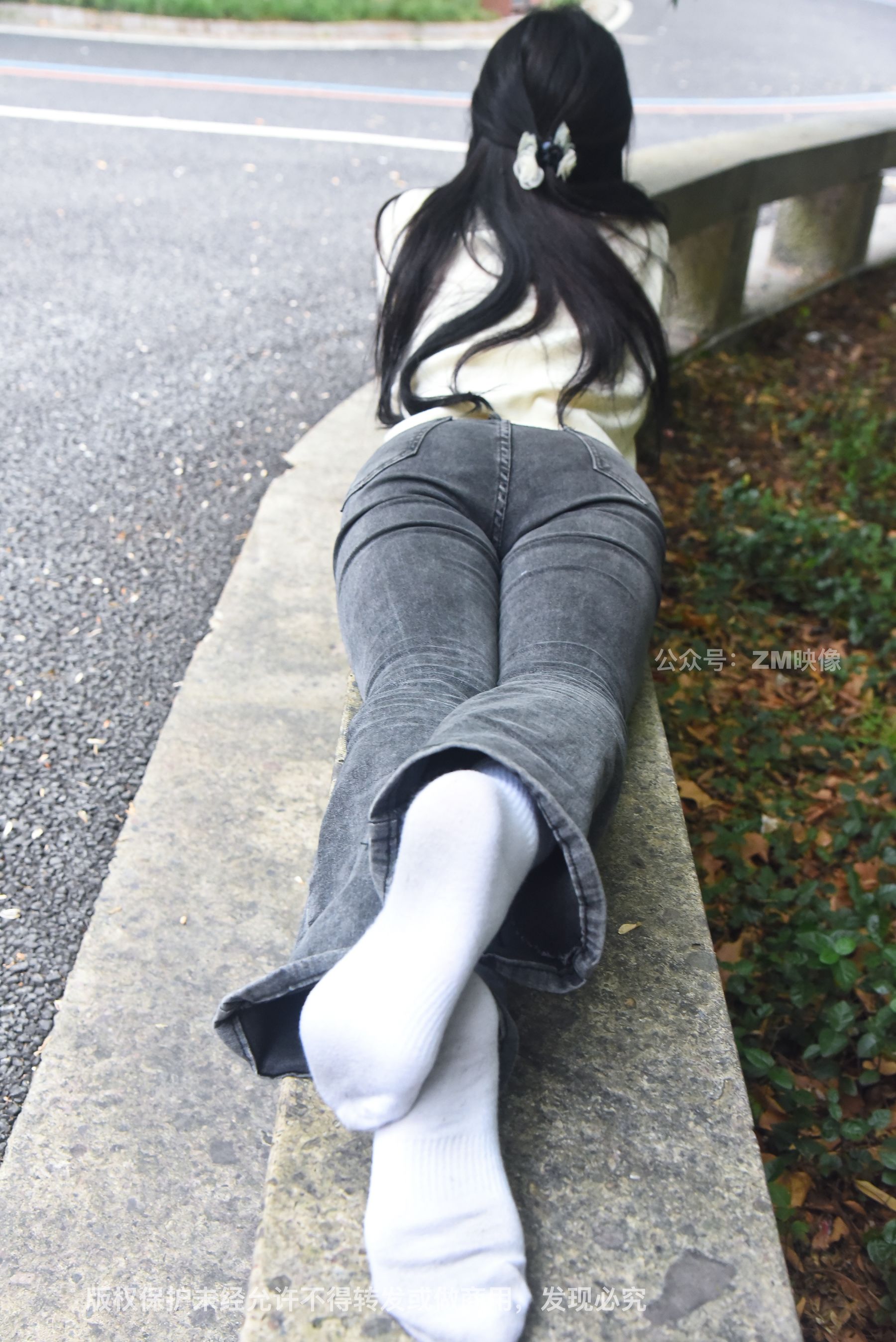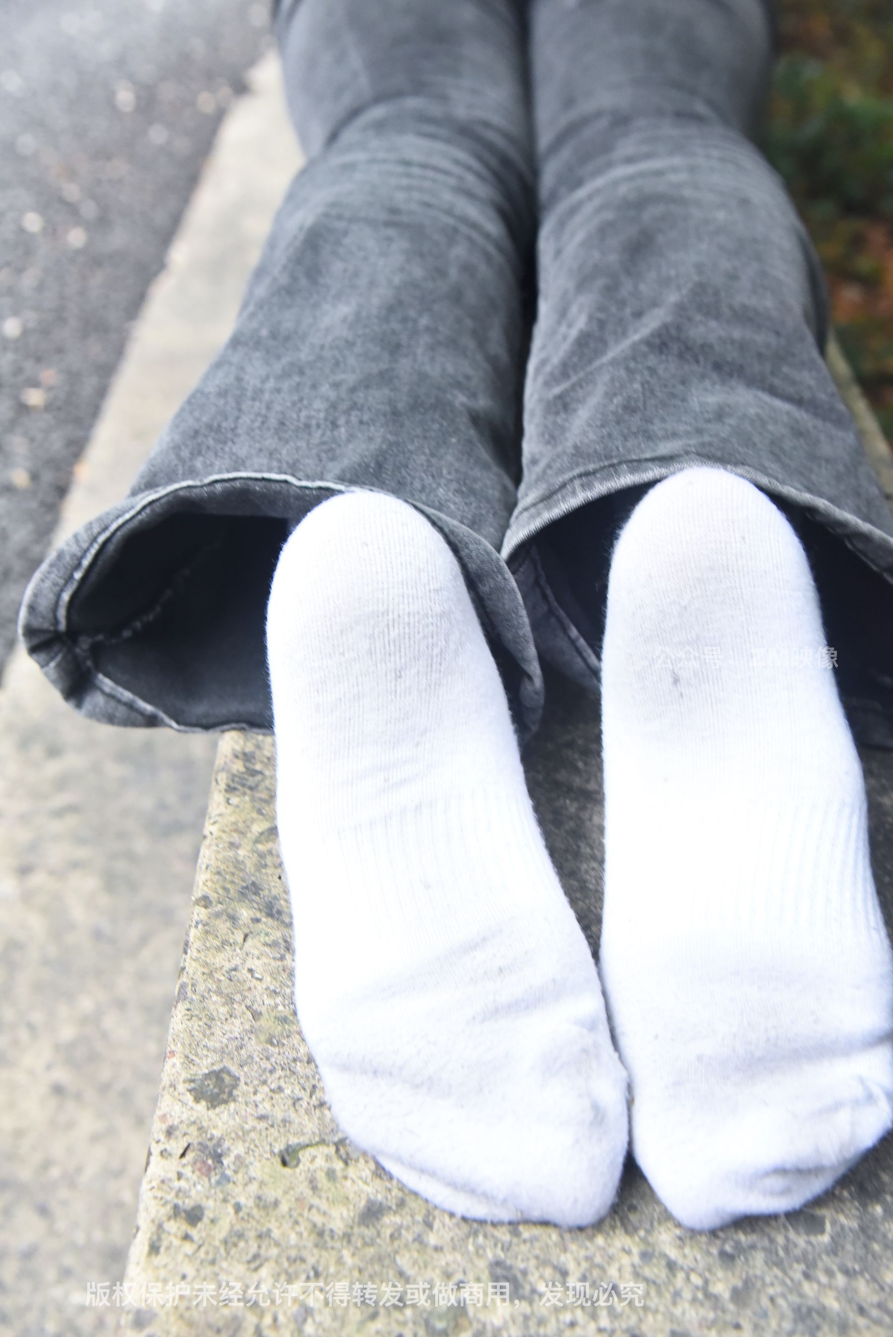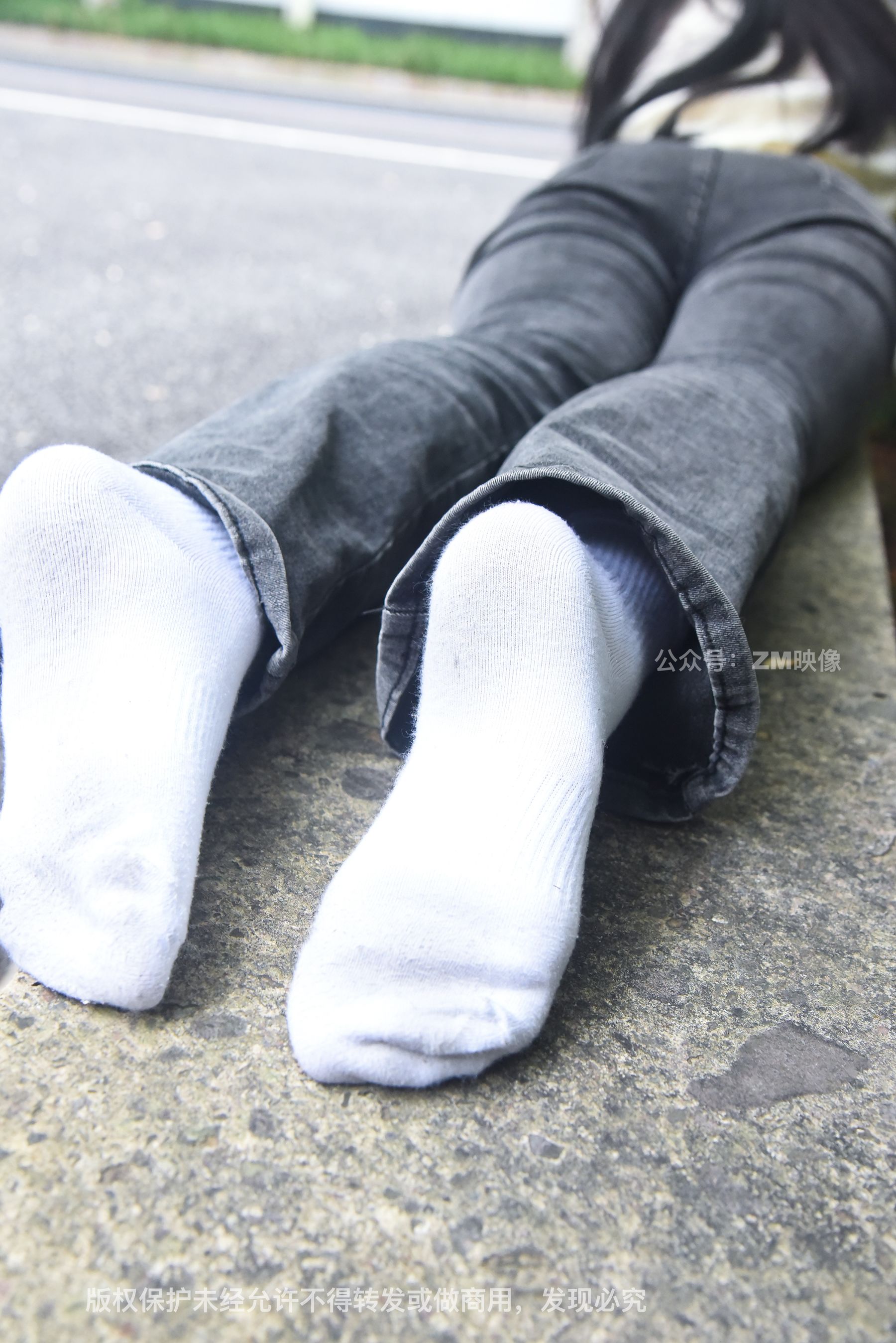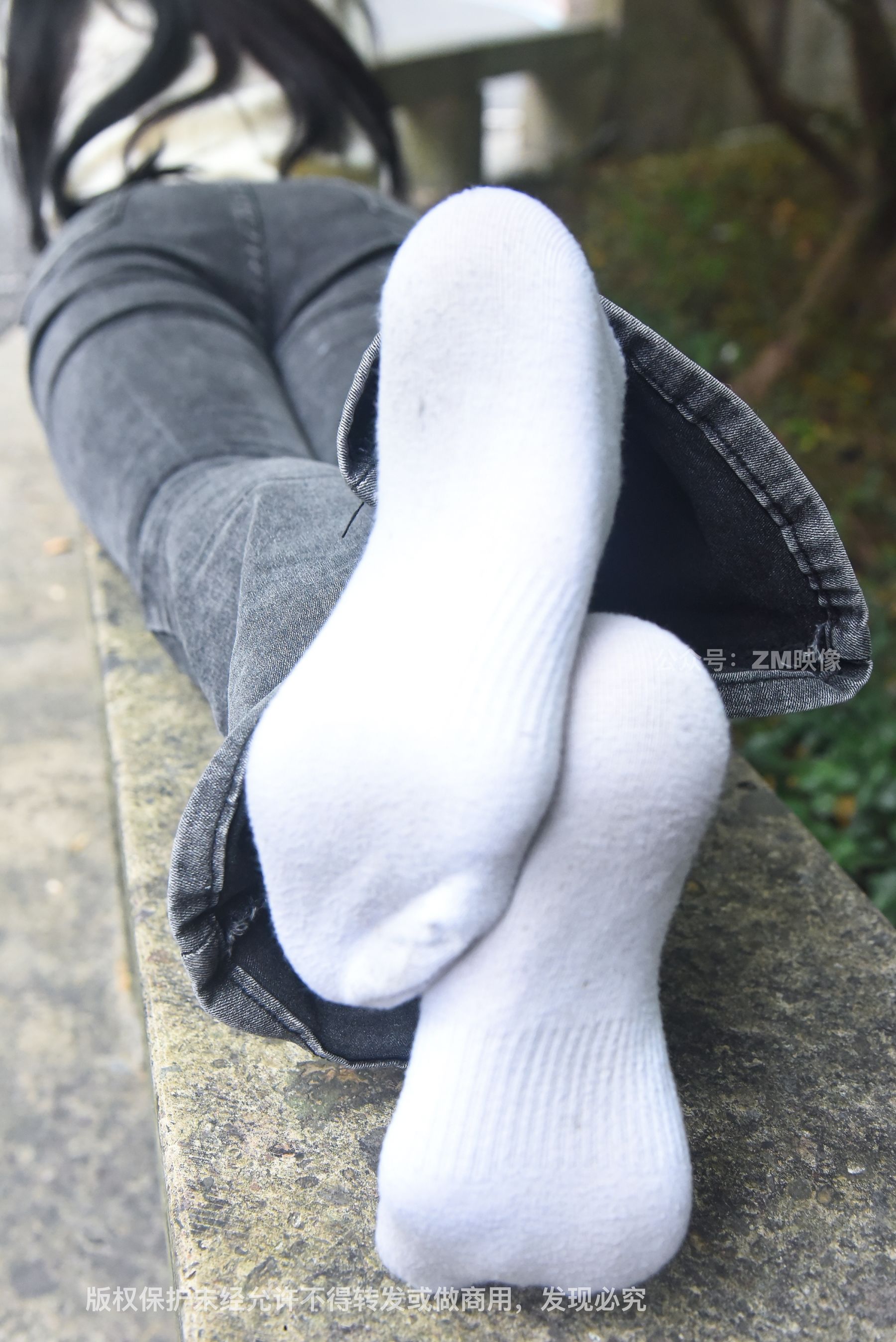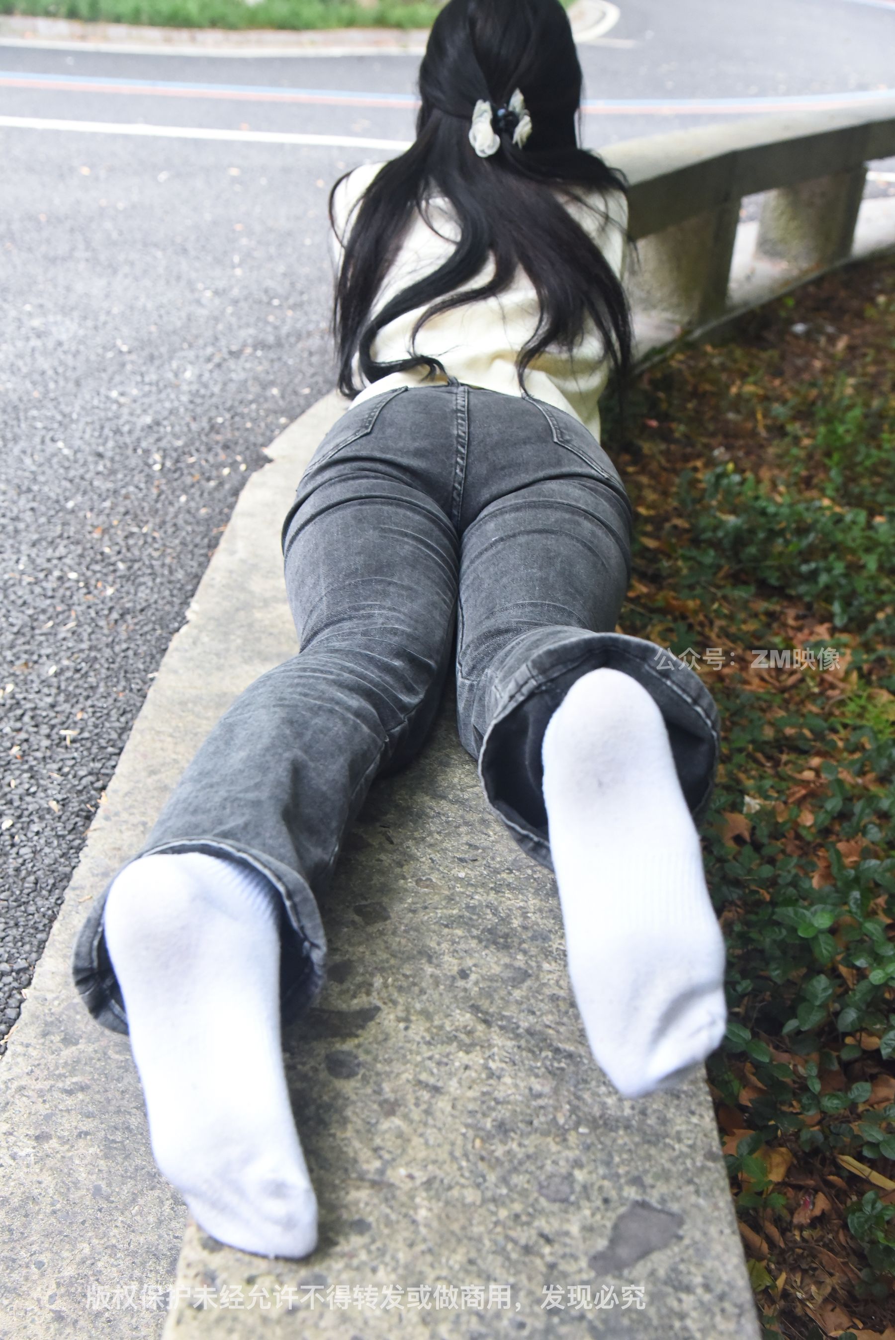 Gallery - [织梦映像] 少女牛仔裤草地白袜 - 图库库