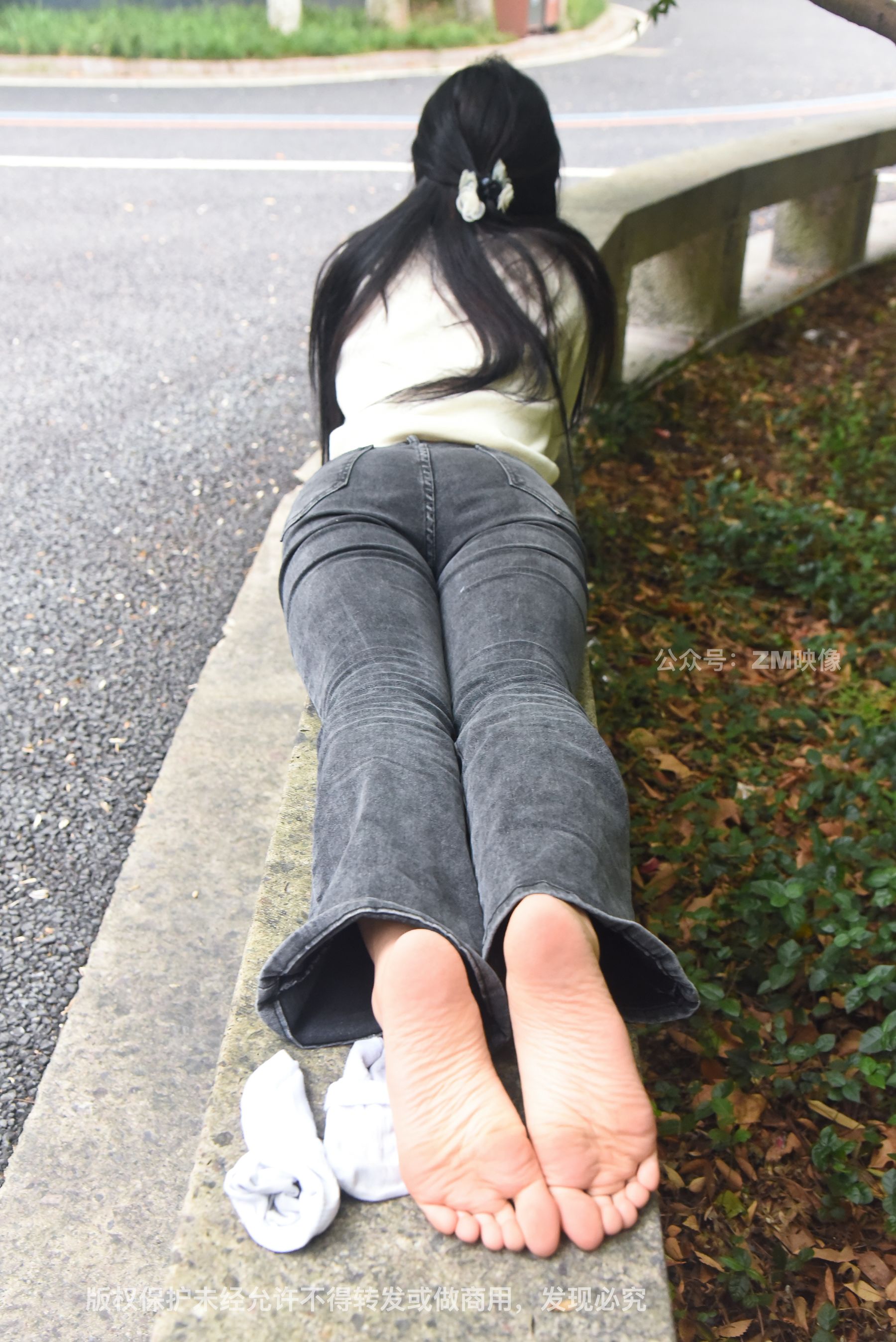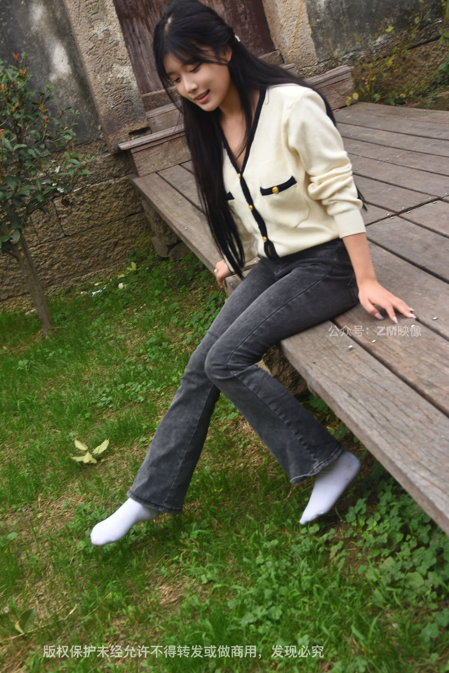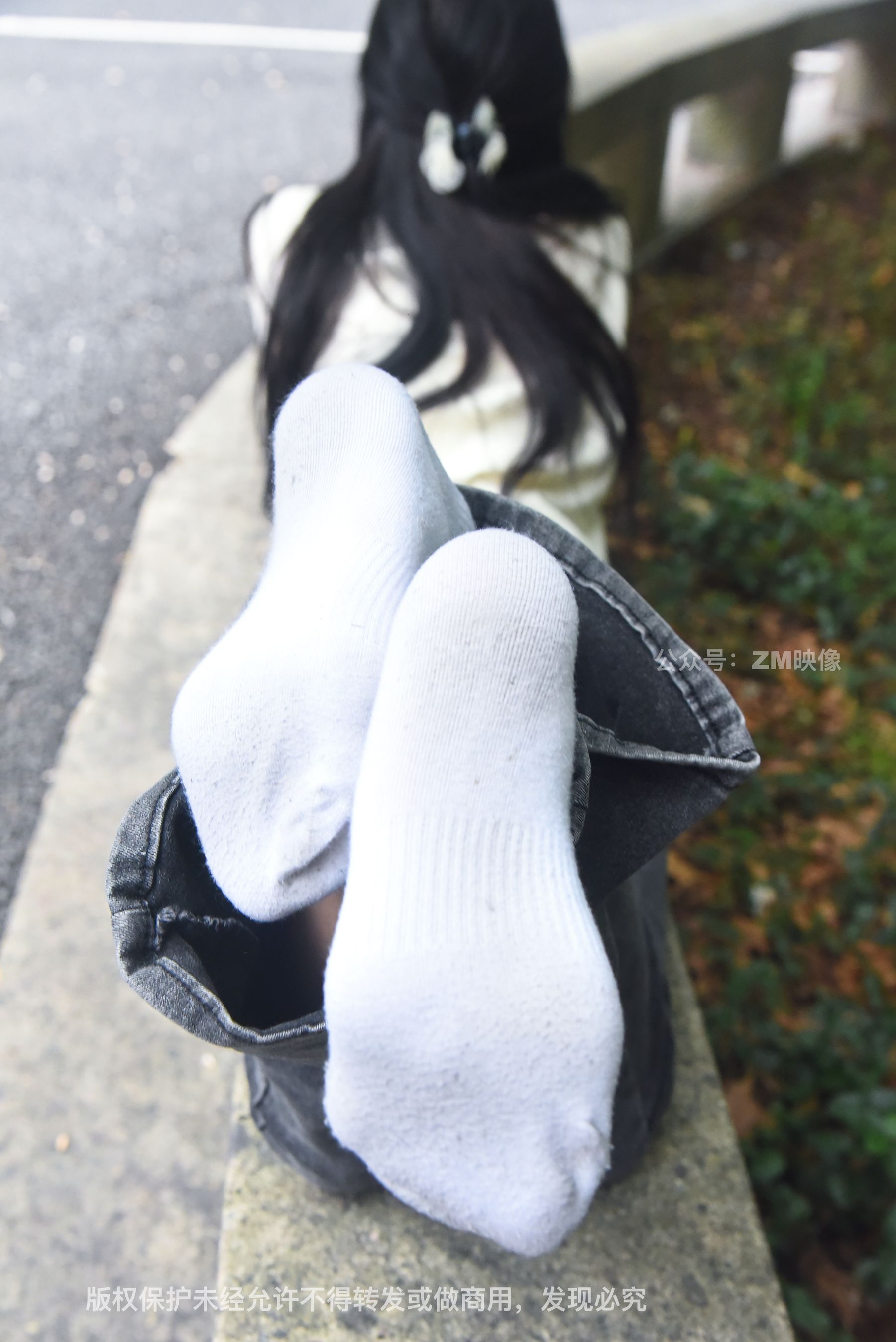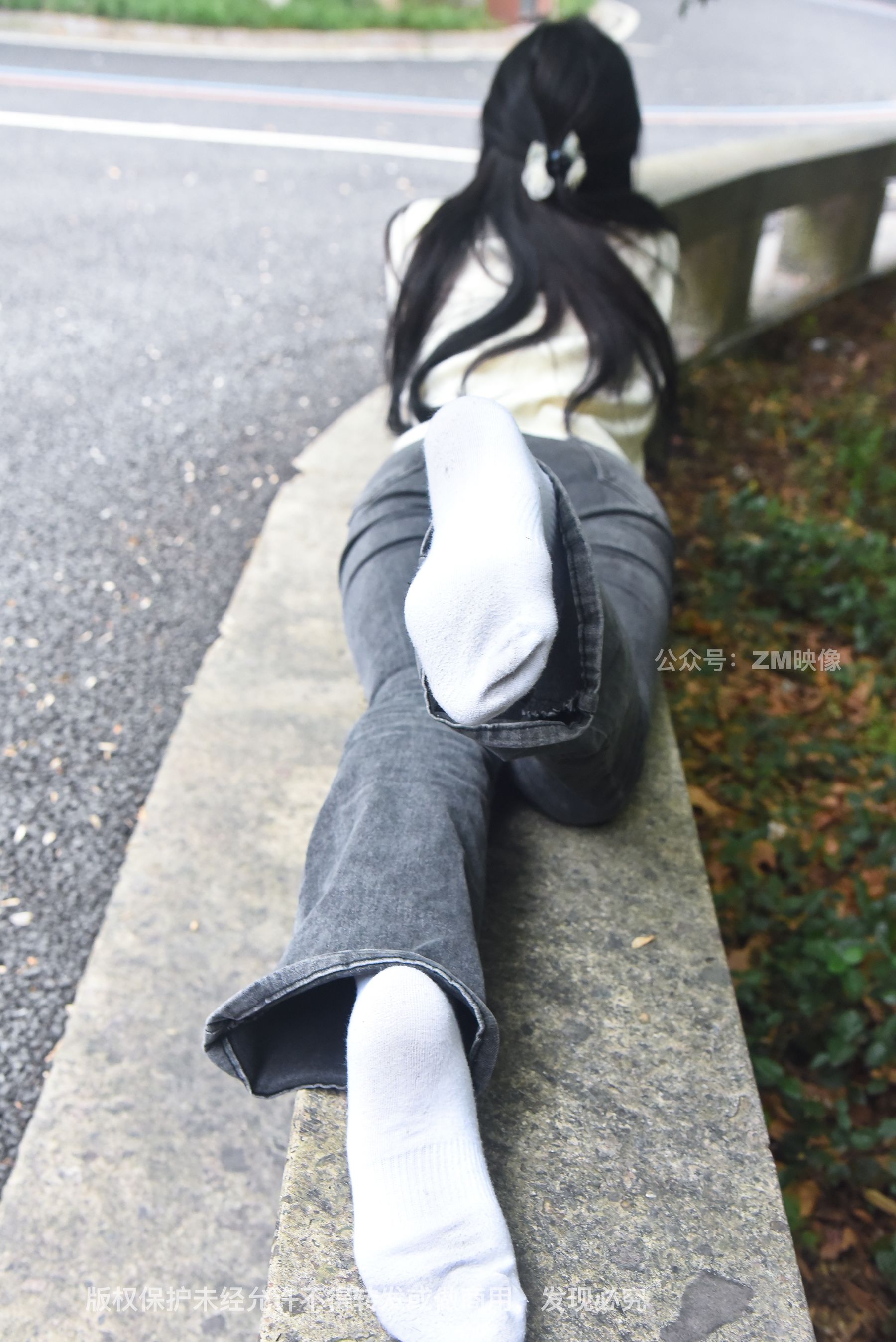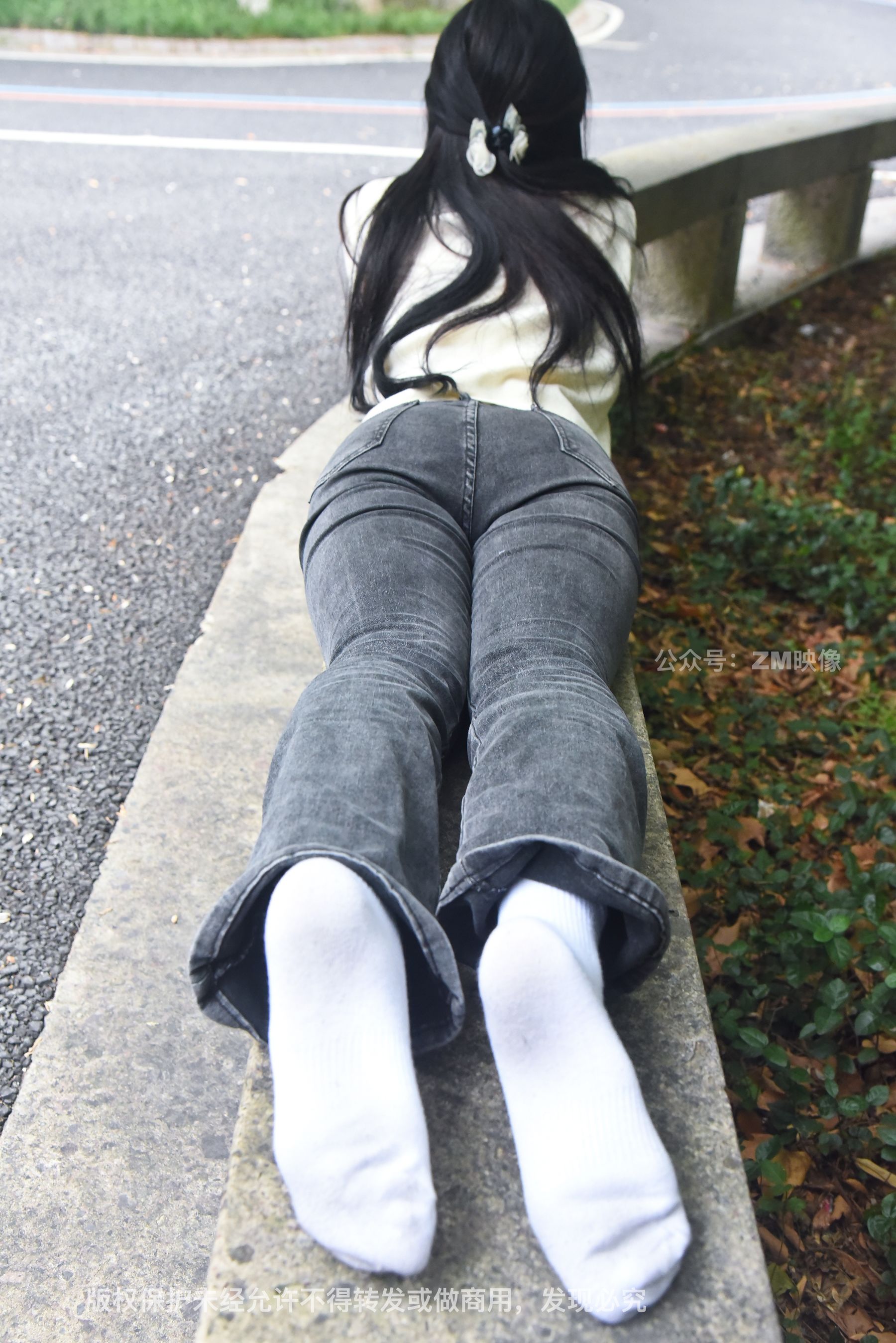 Gallery - [织梦映像] 少女牛仔裤草地白袜 - 图库库