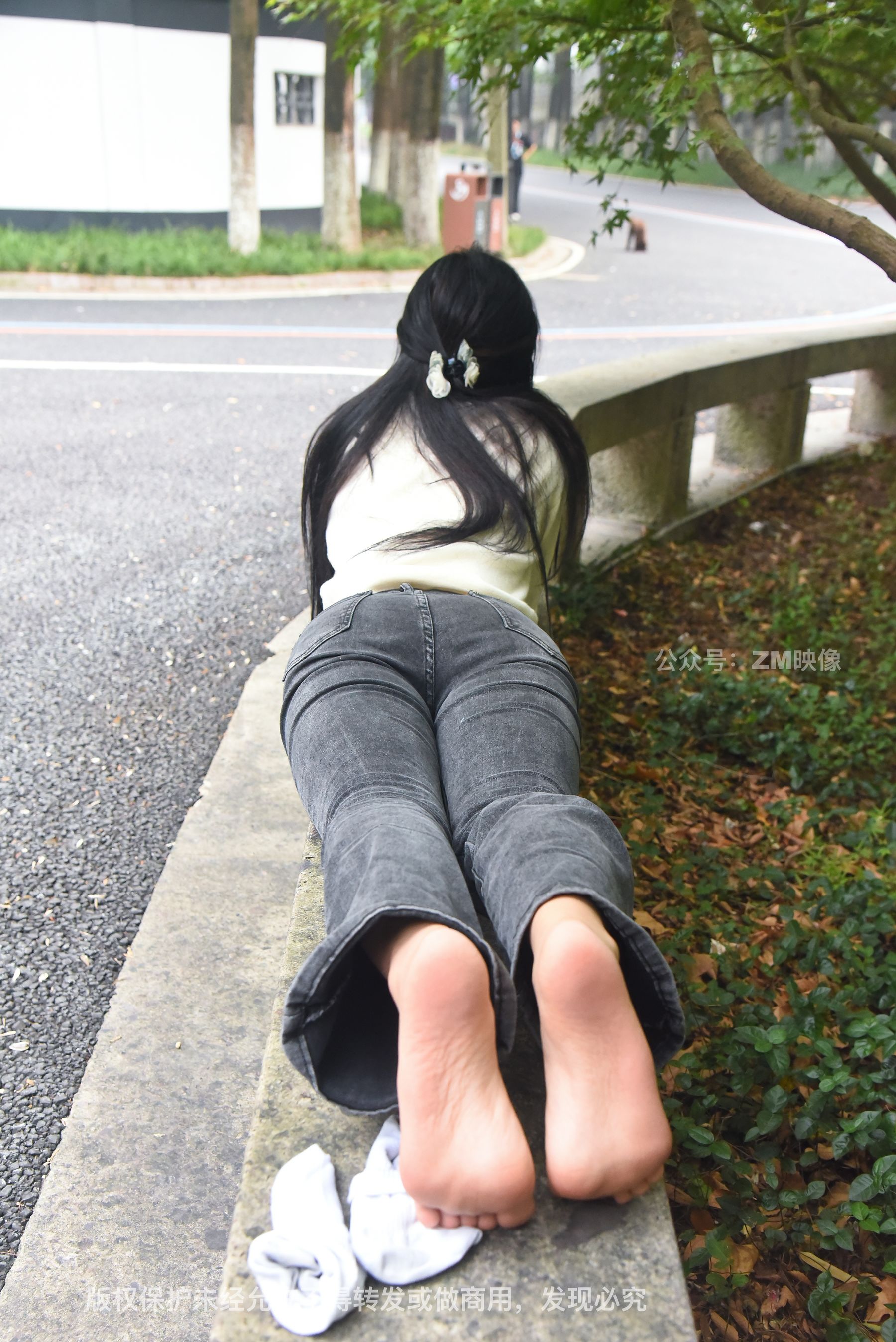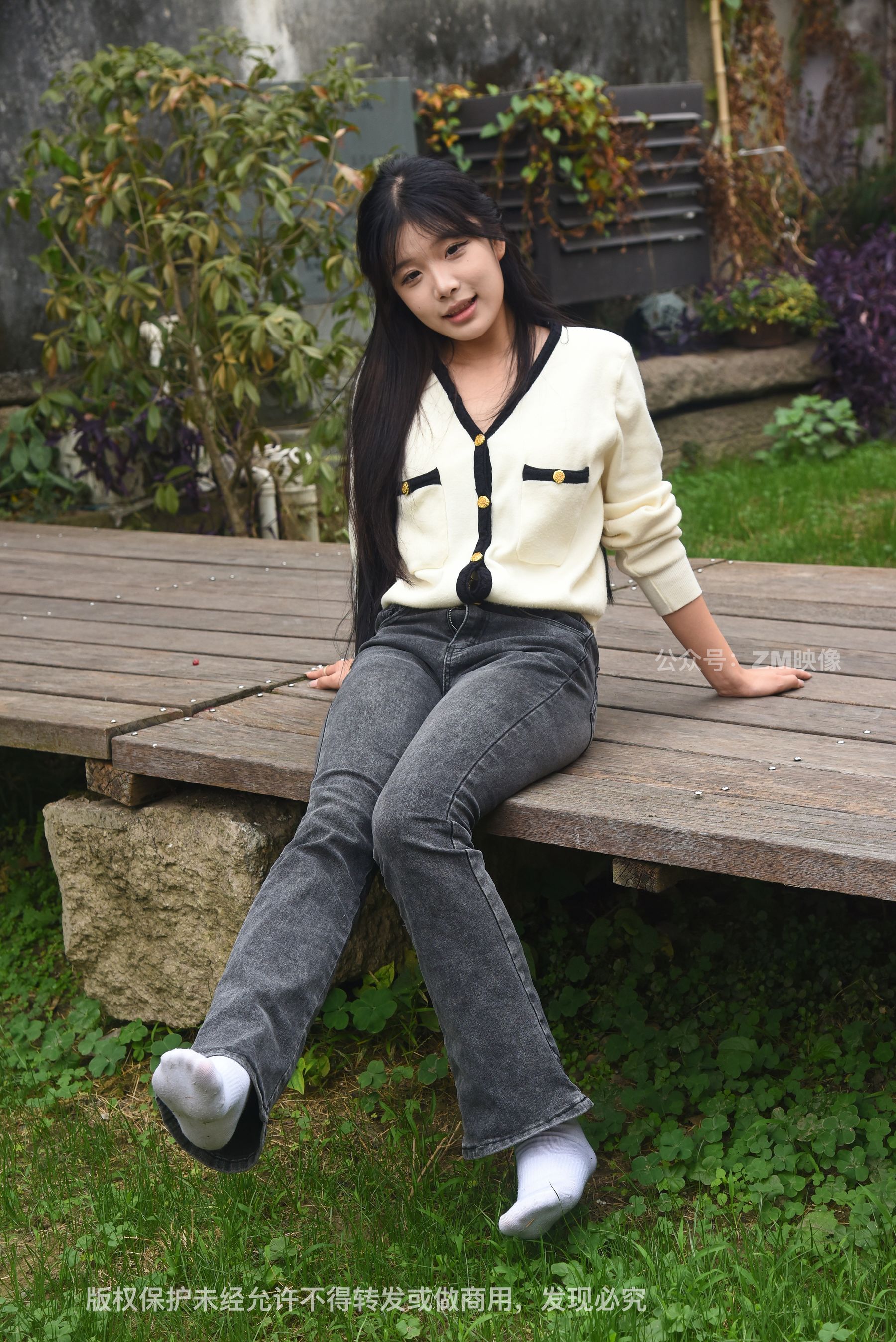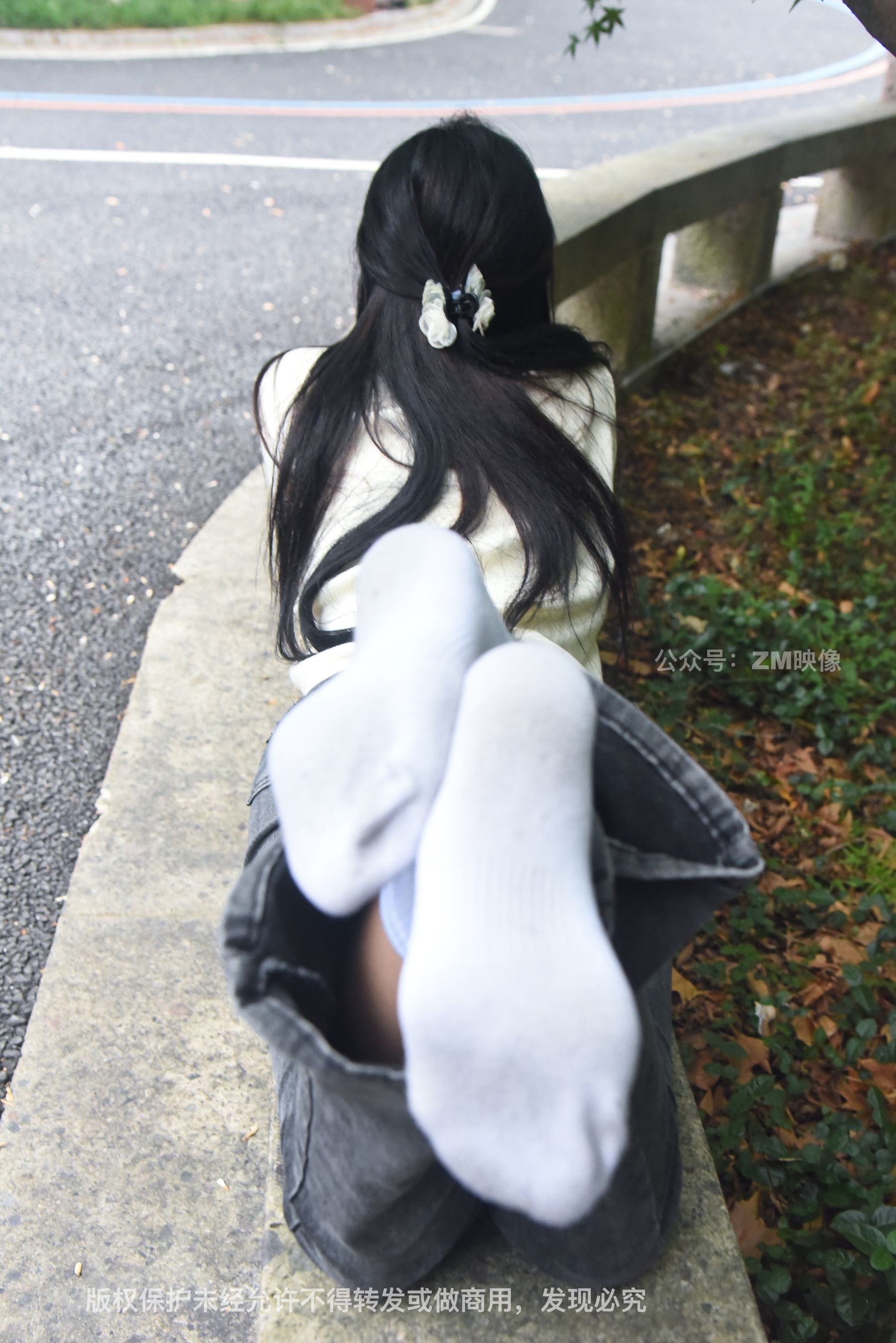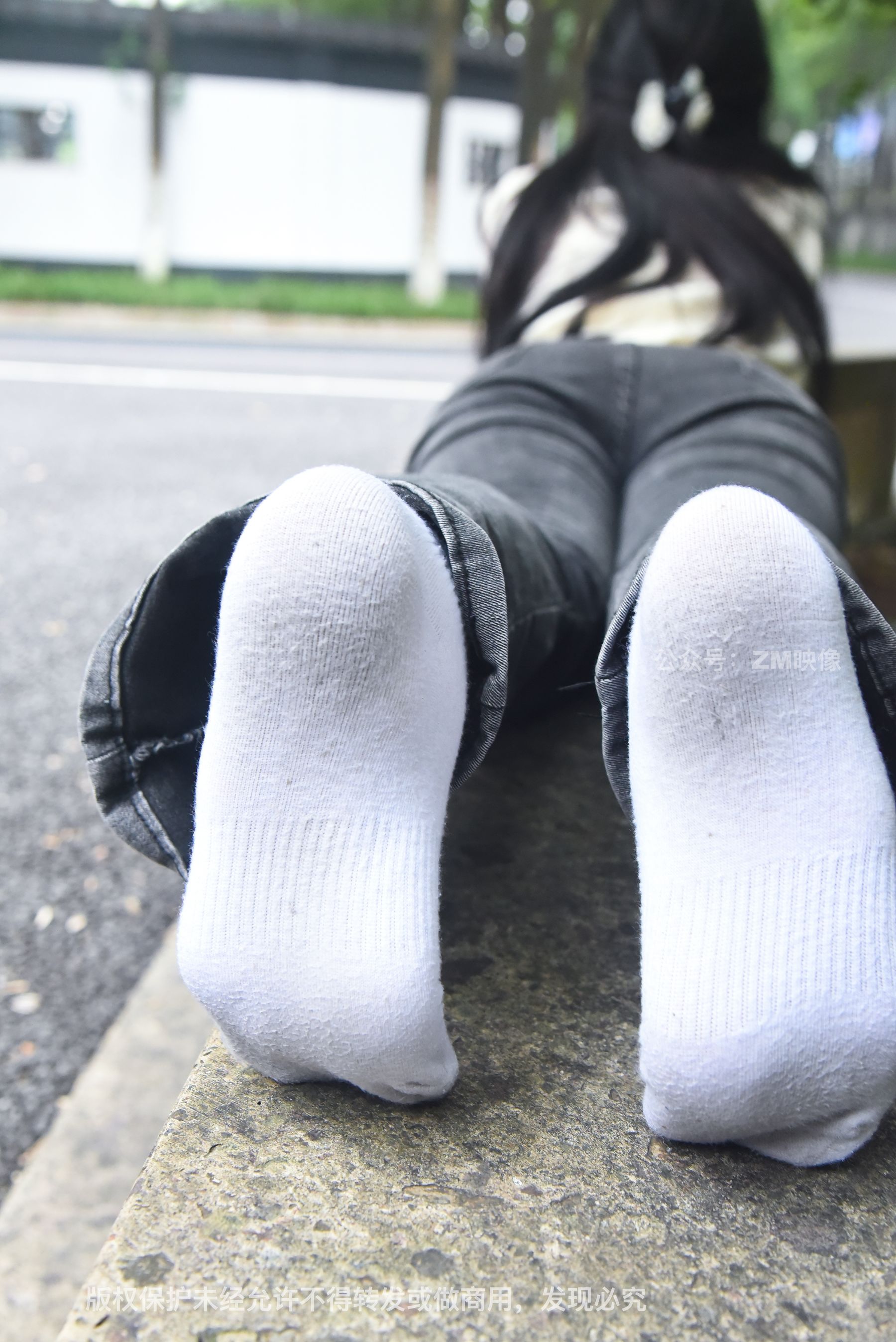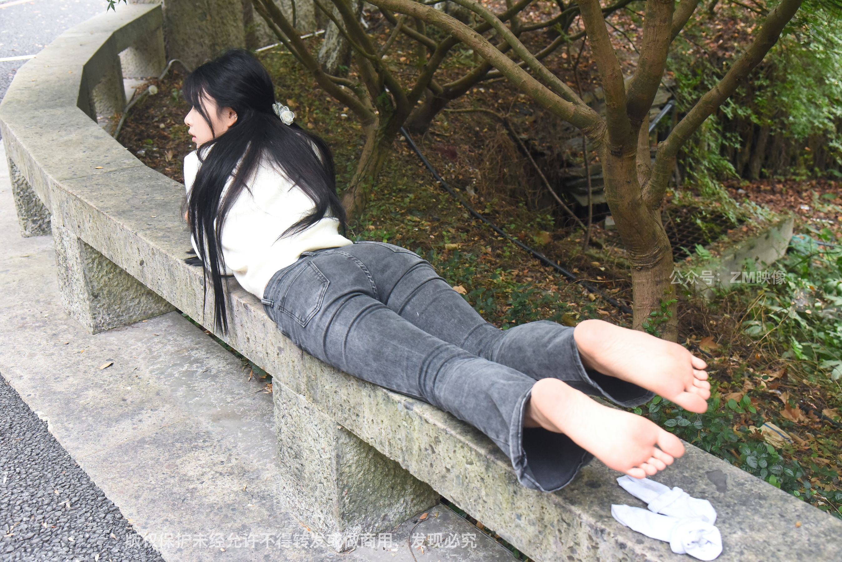 Gallery - [织梦映像] 少女牛仔裤草地白袜 - 图库库