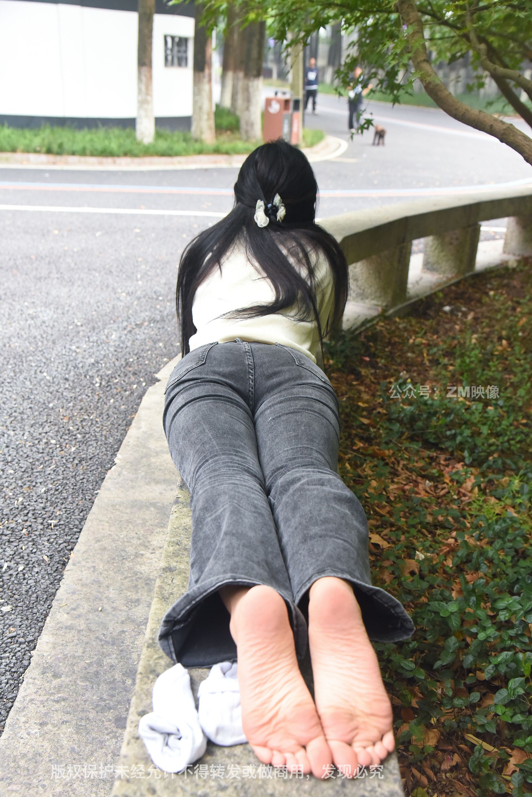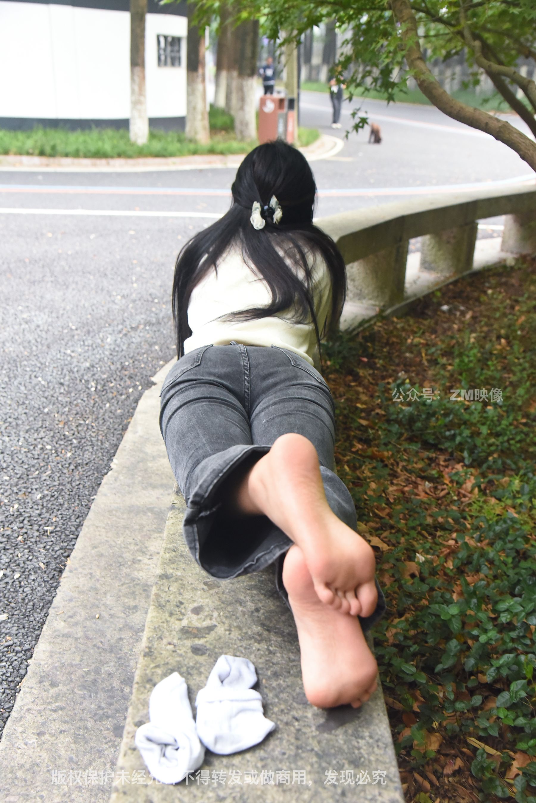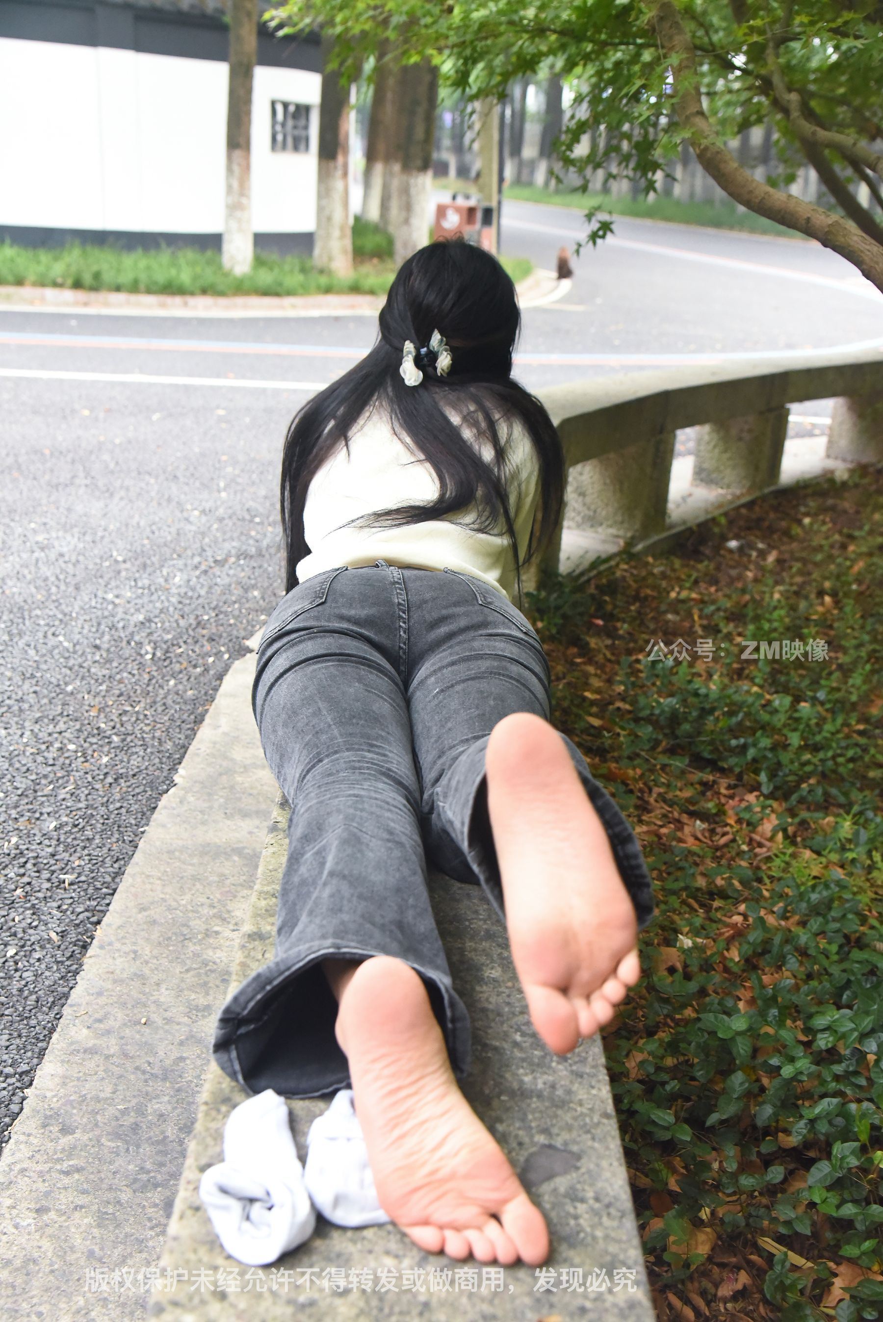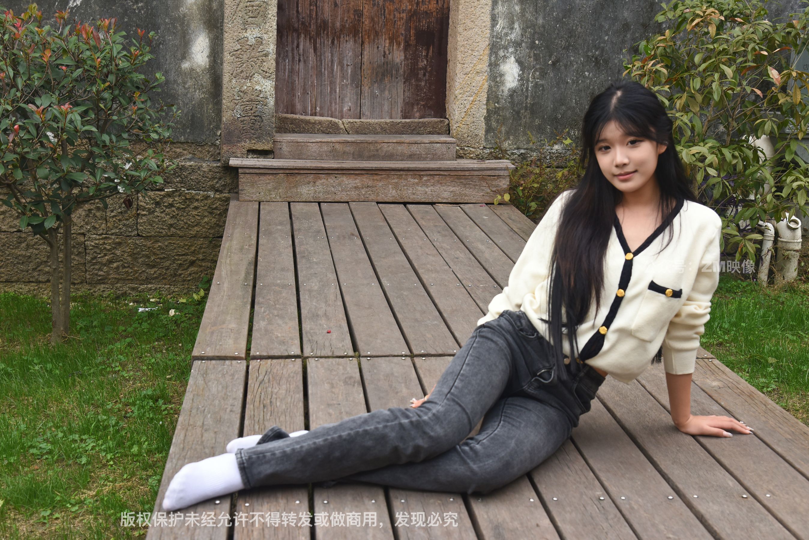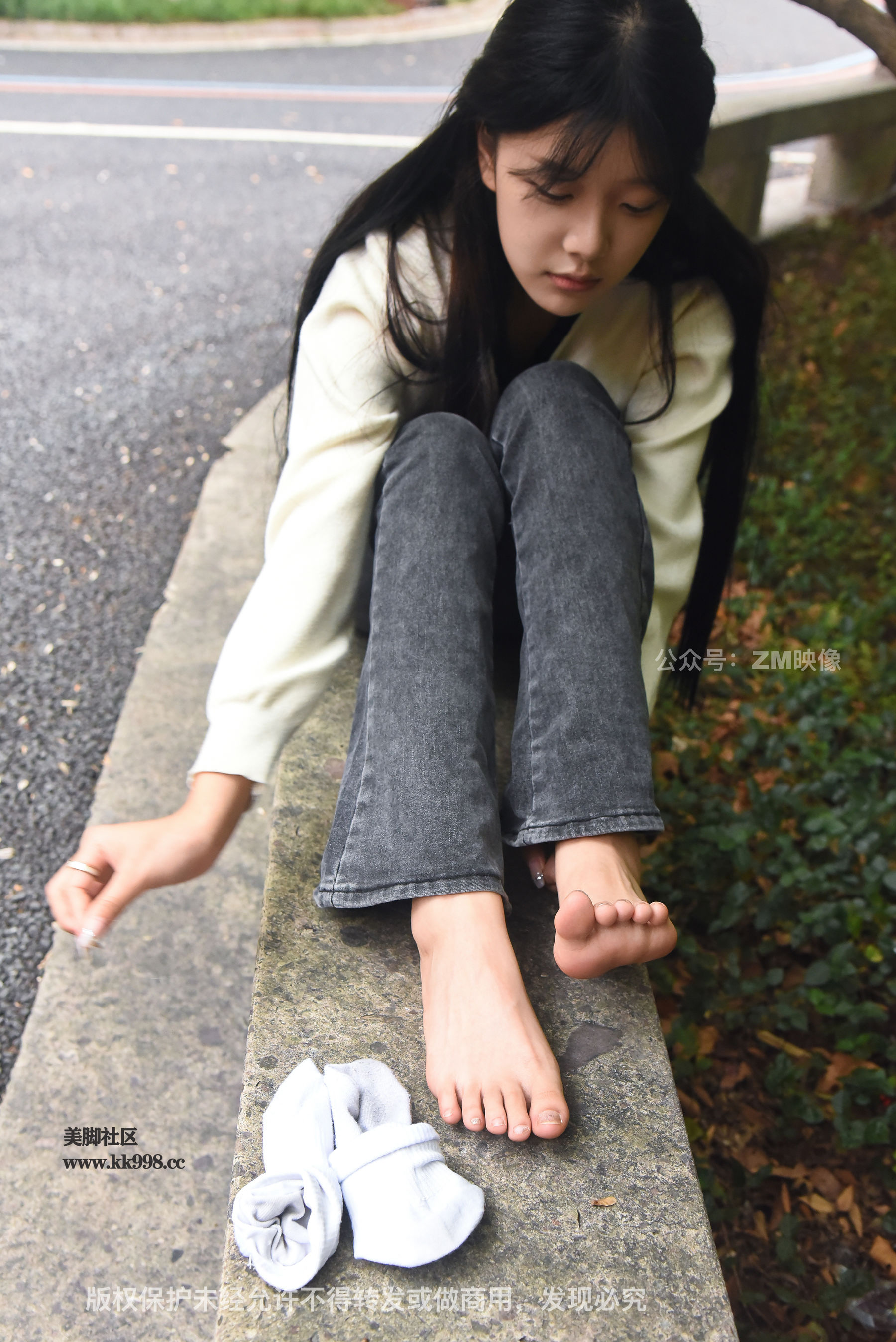 Gallery - [织梦映像] 少女牛仔裤草地白袜 - 图库库