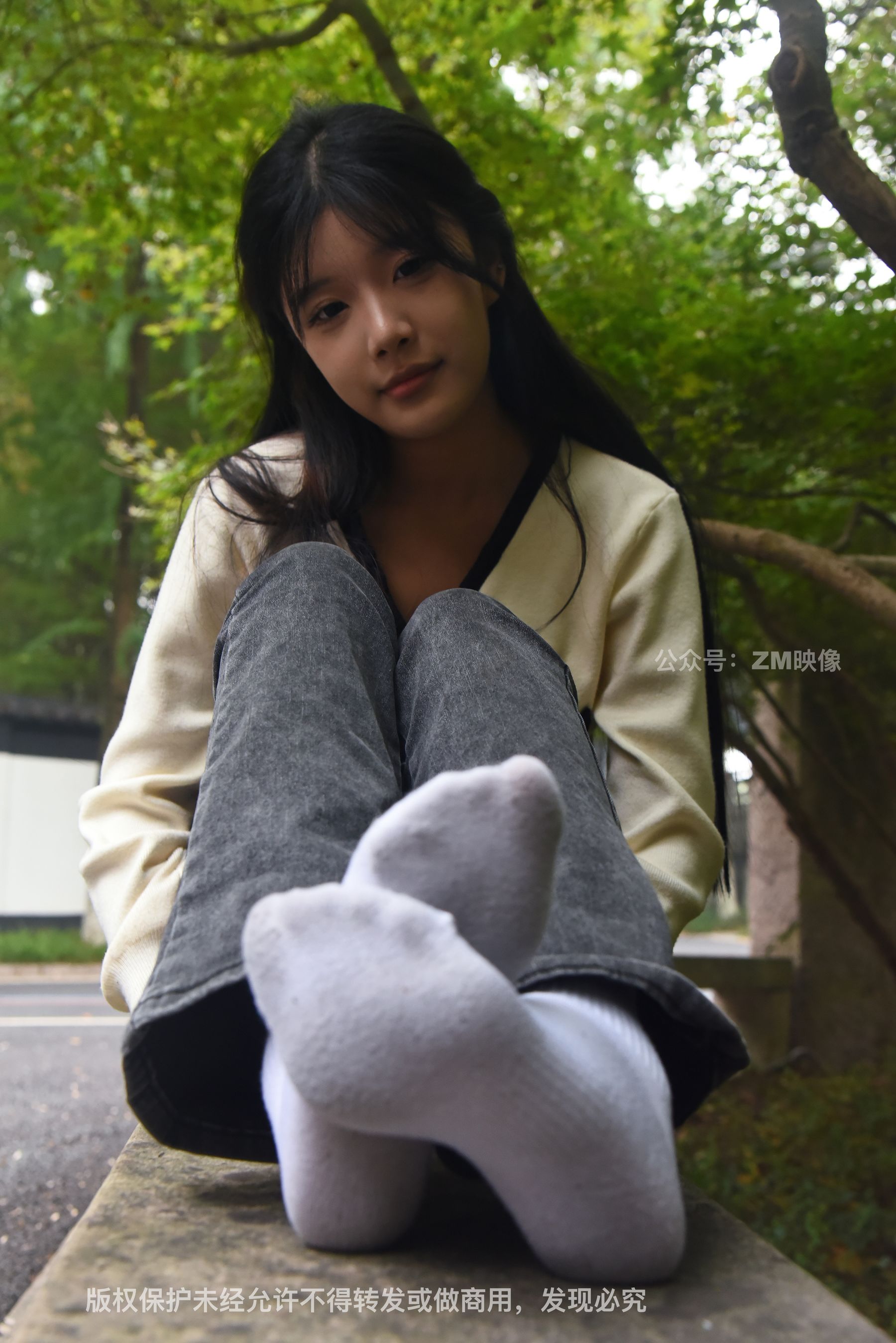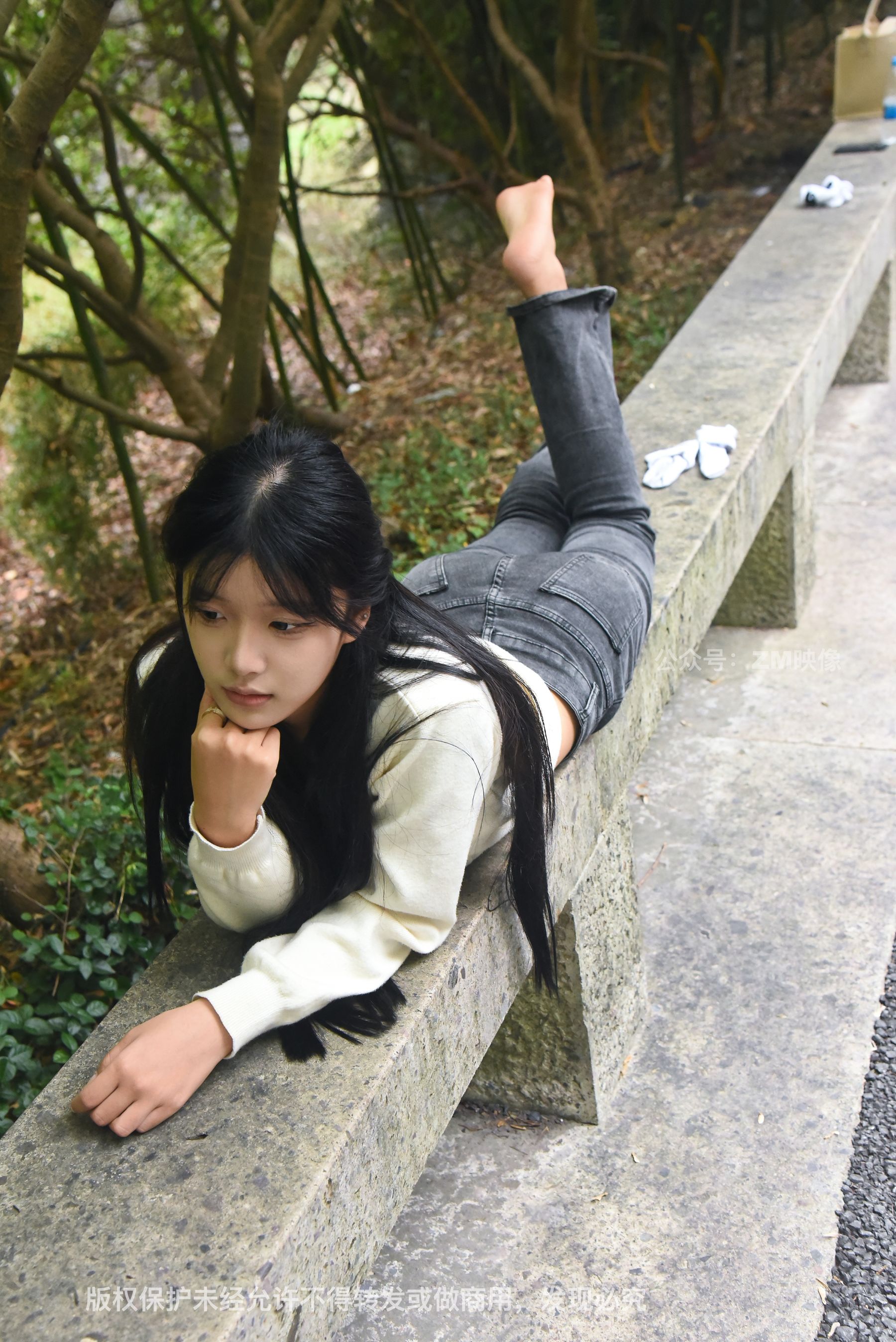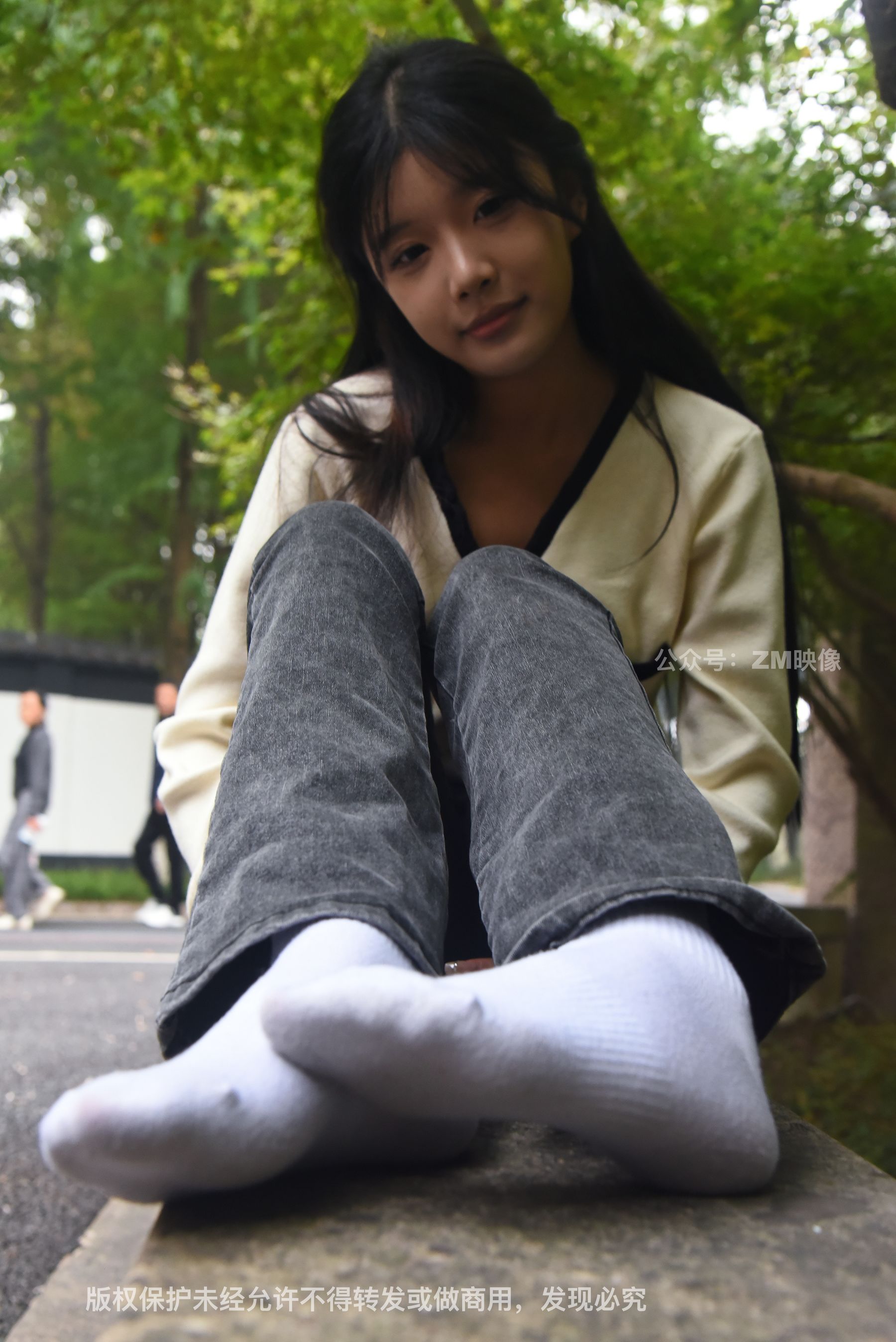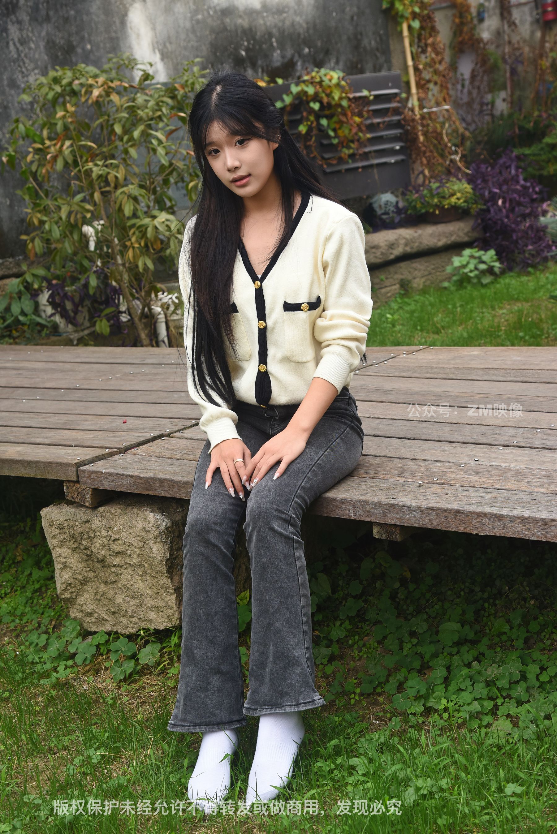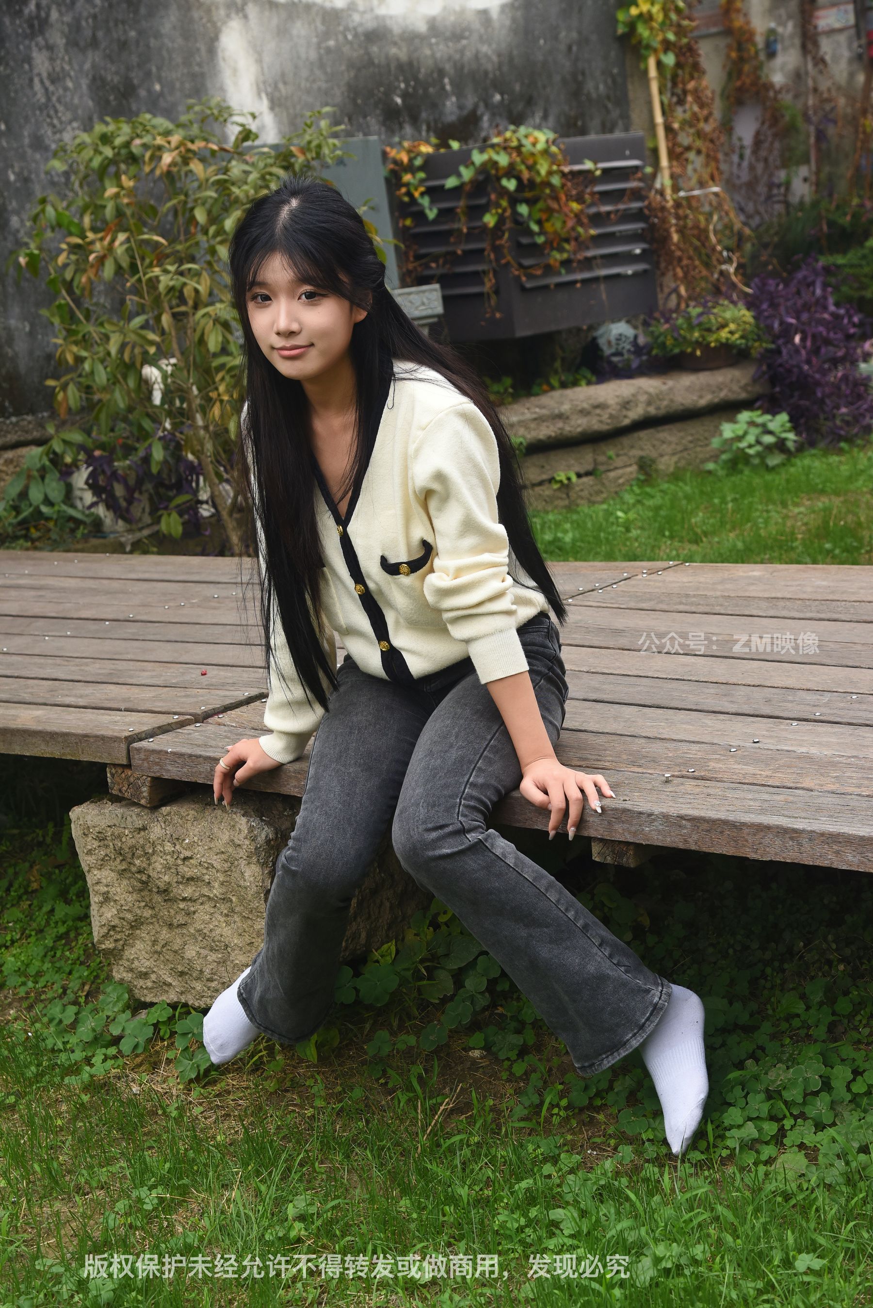 Gallery - [织梦映像] 少女牛仔裤草地白袜 - 图库库