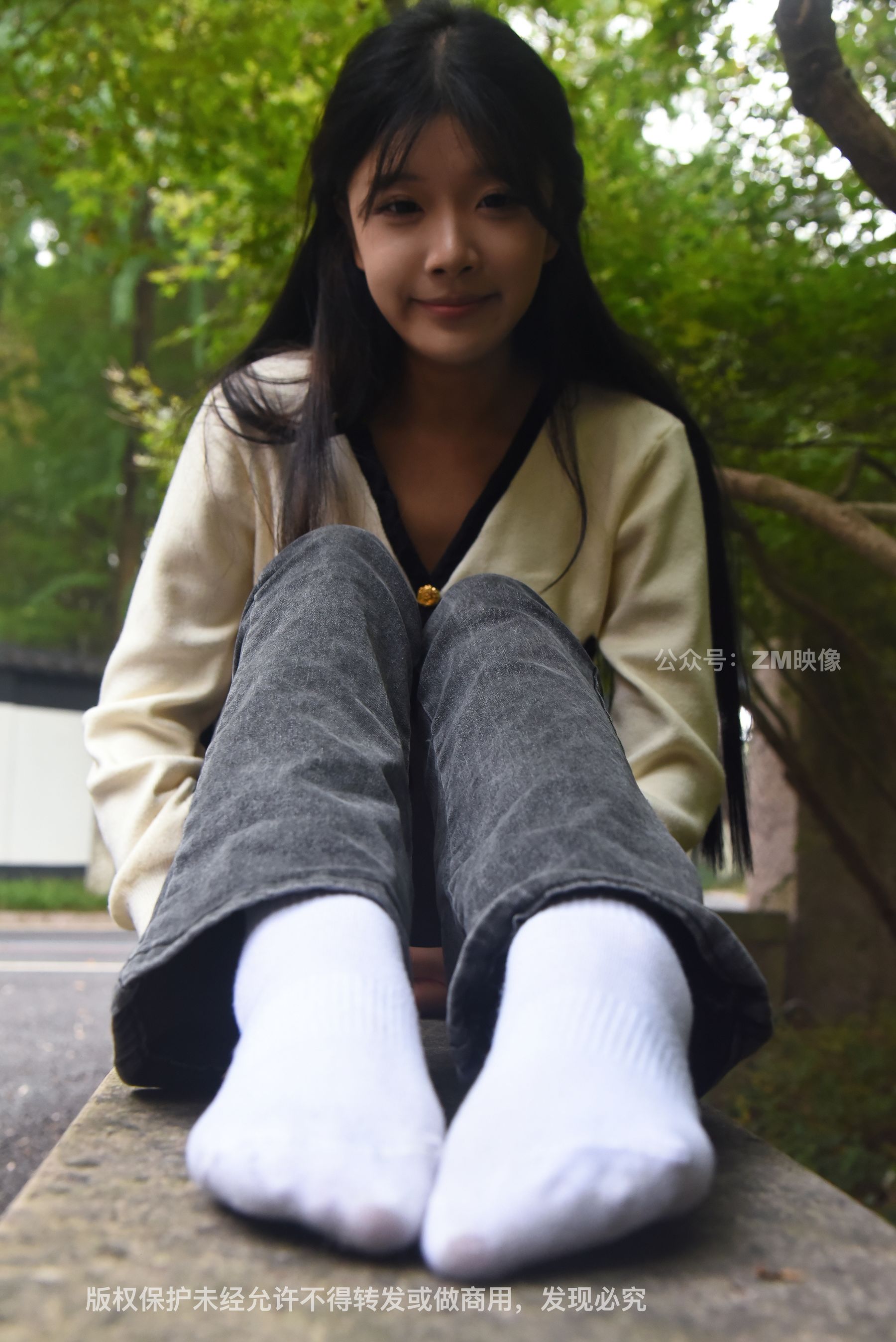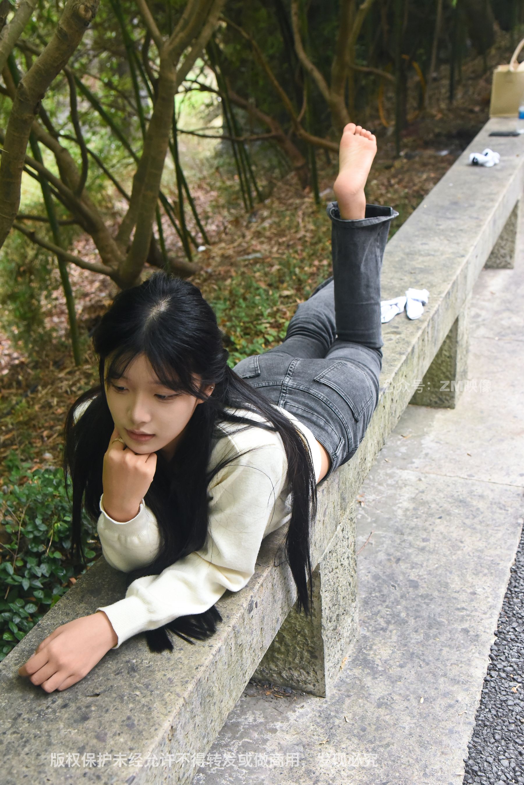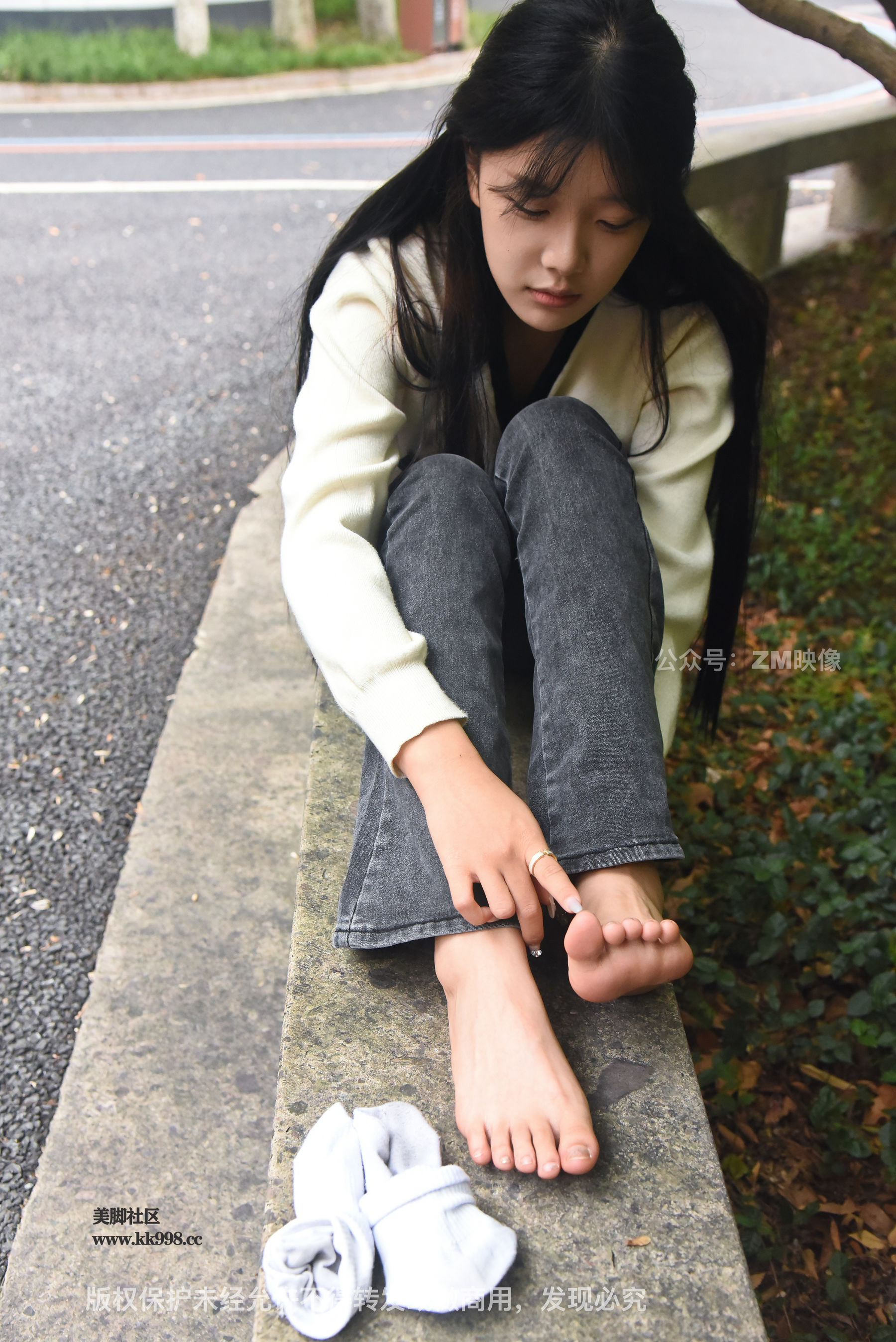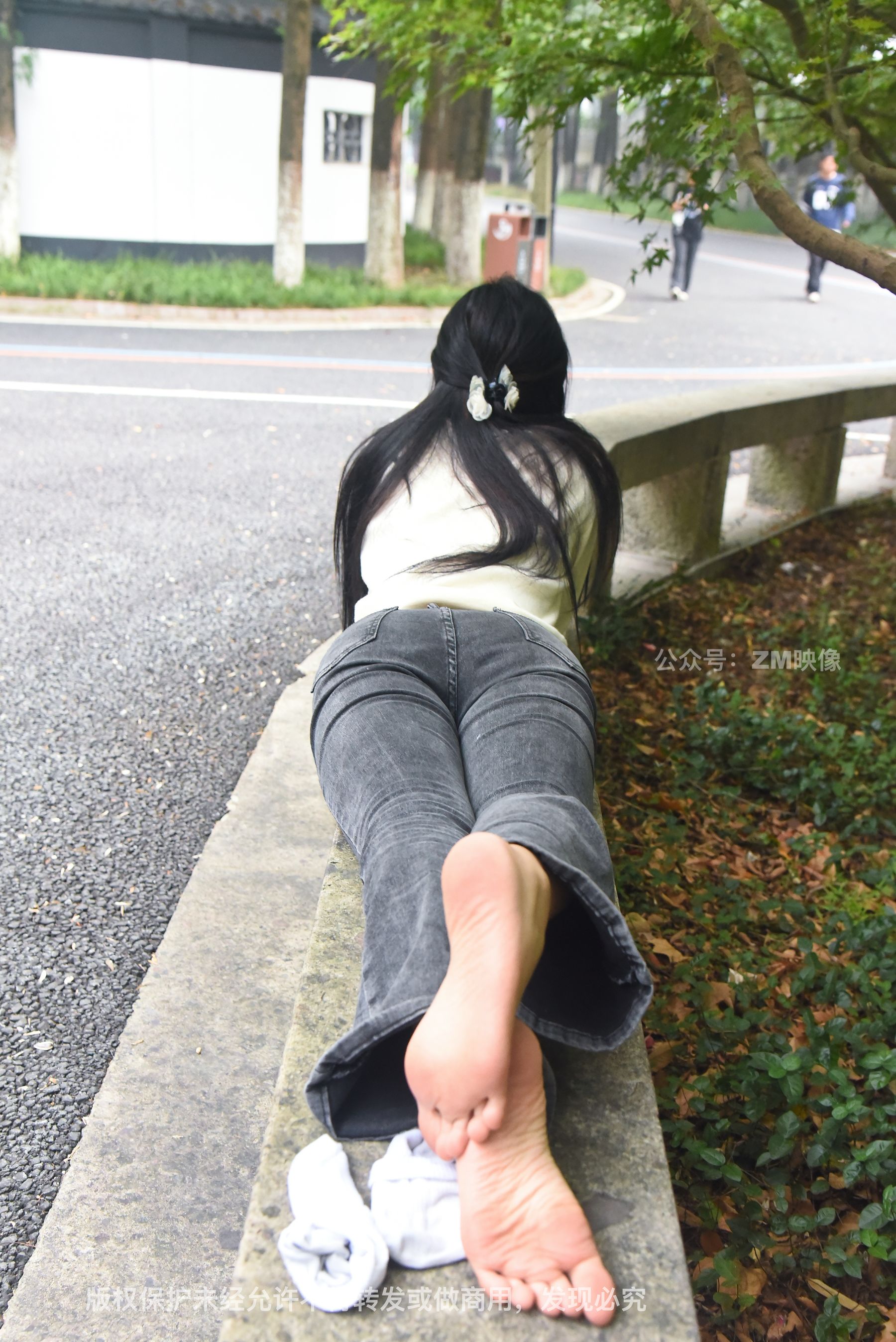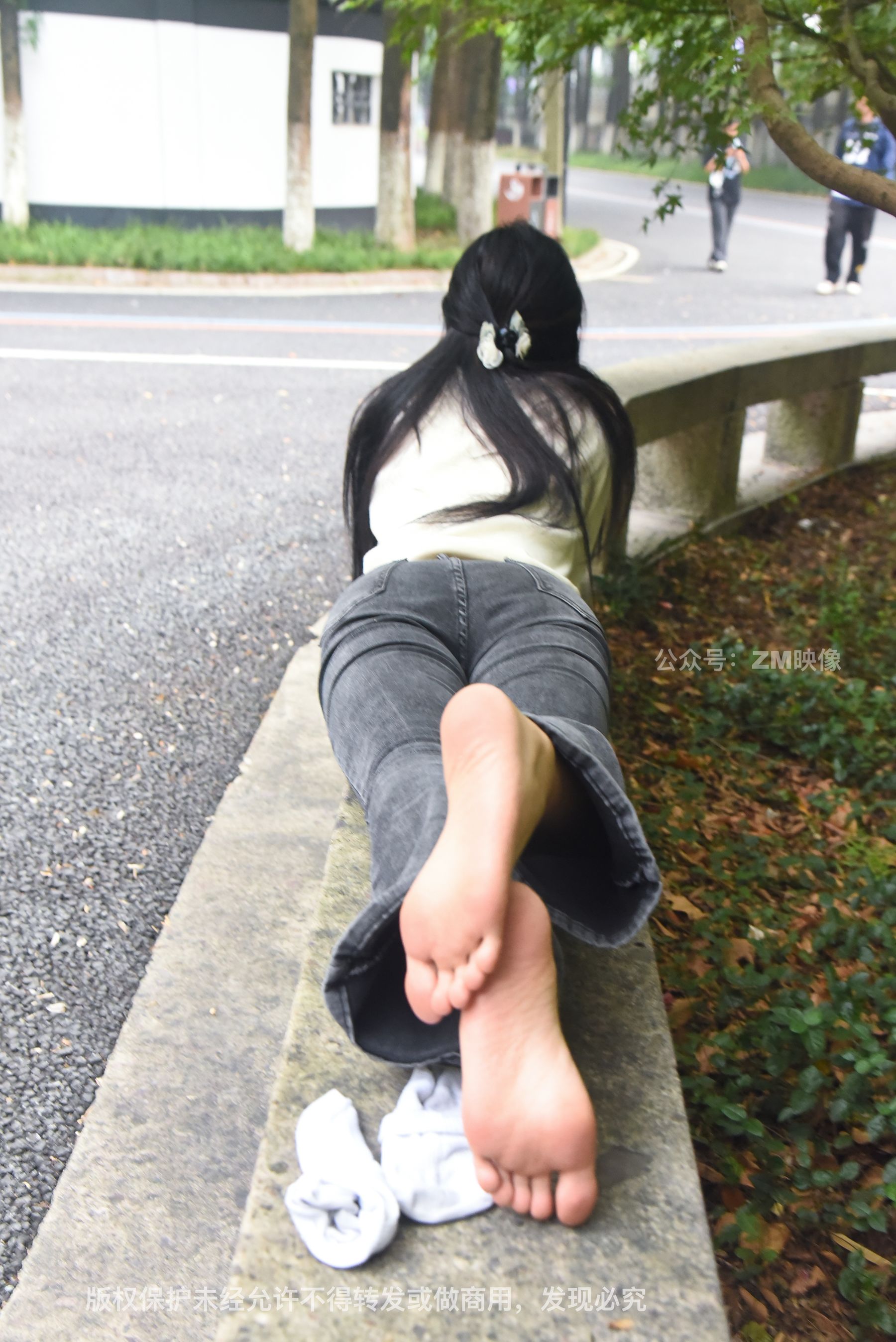 Gallery - [织梦映像] 少女牛仔裤草地白袜 - 图库库