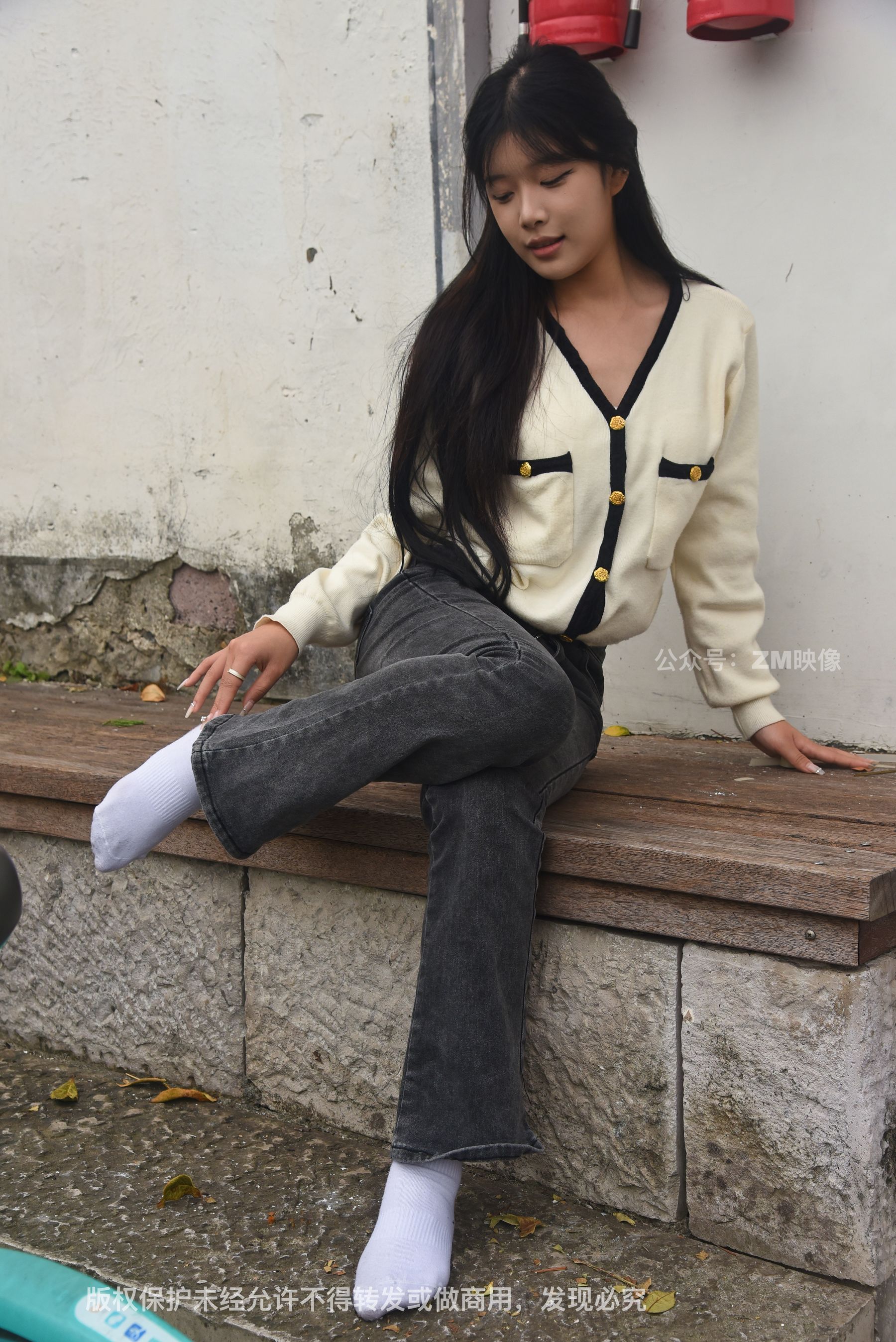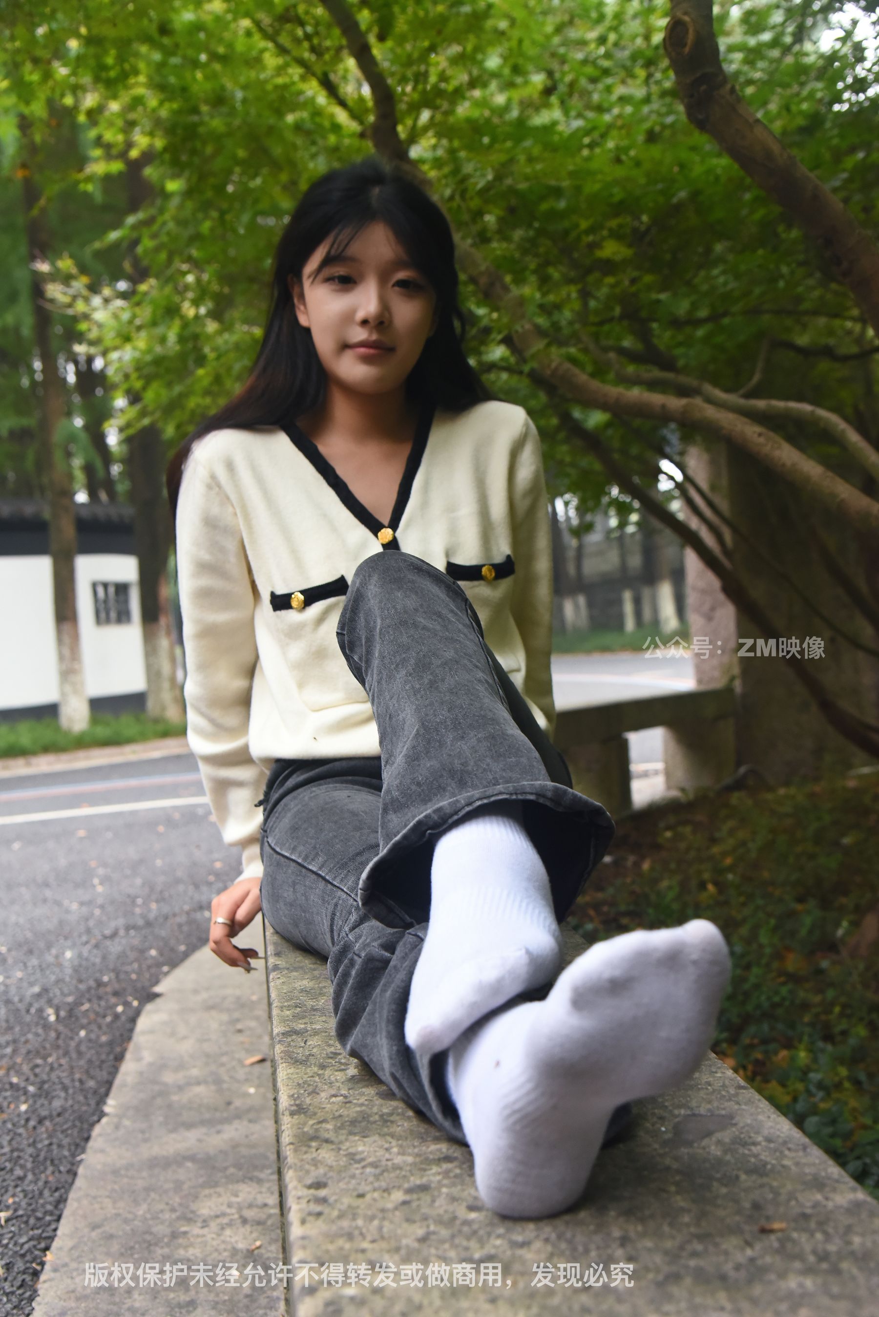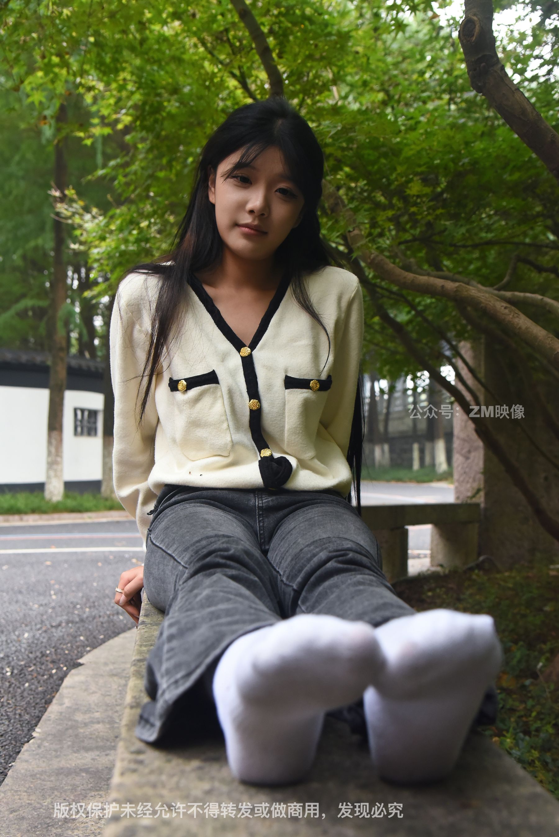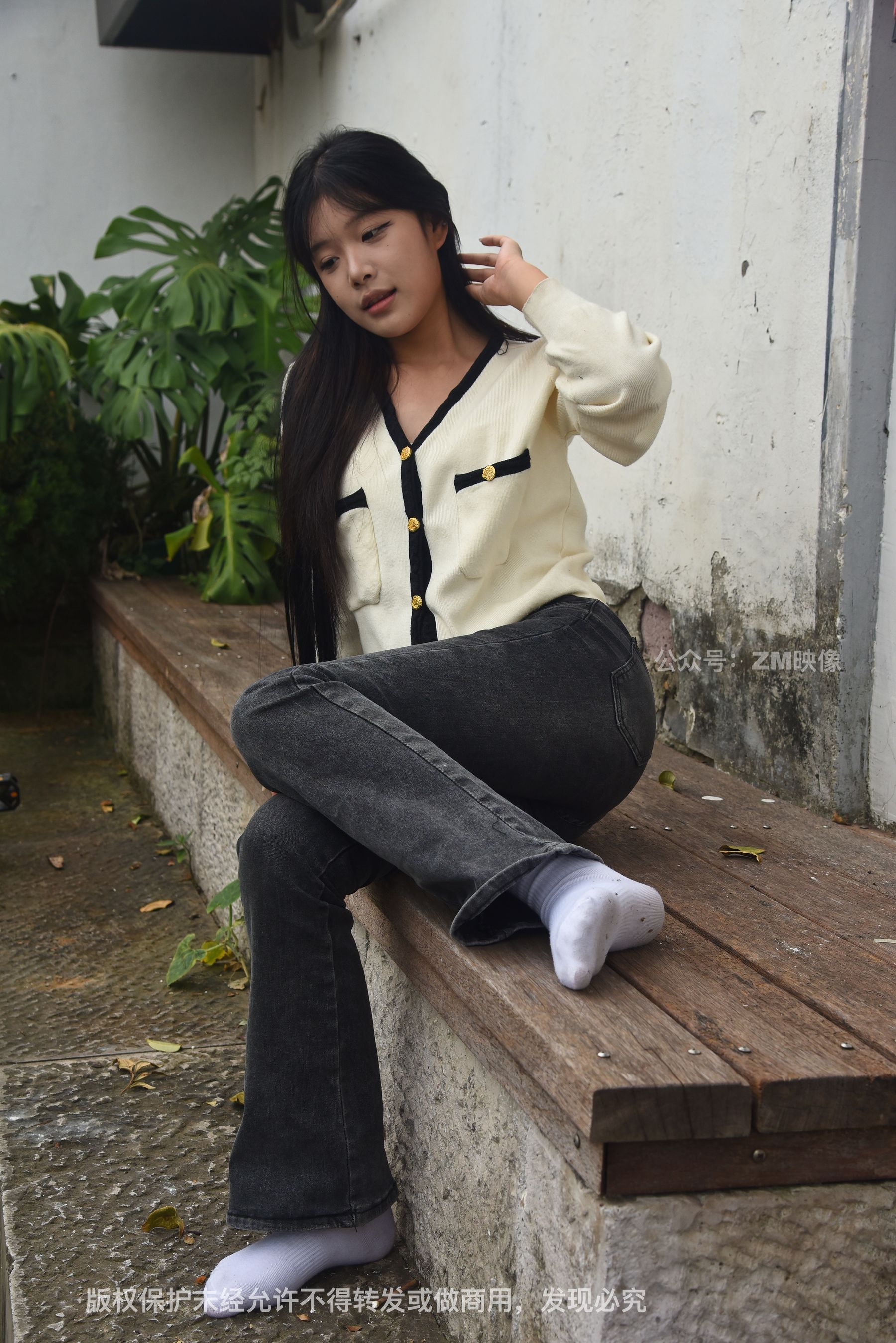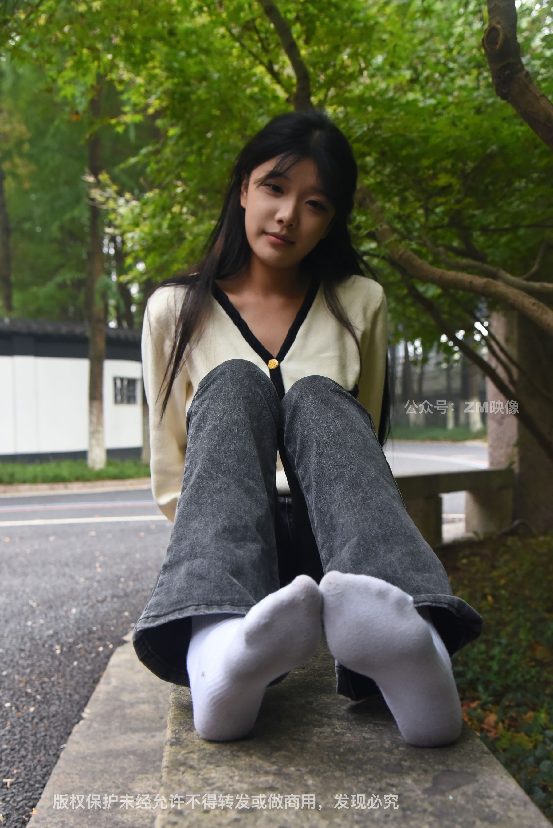 Gallery - [织梦映像] 少女牛仔裤草地白袜 - 图库库