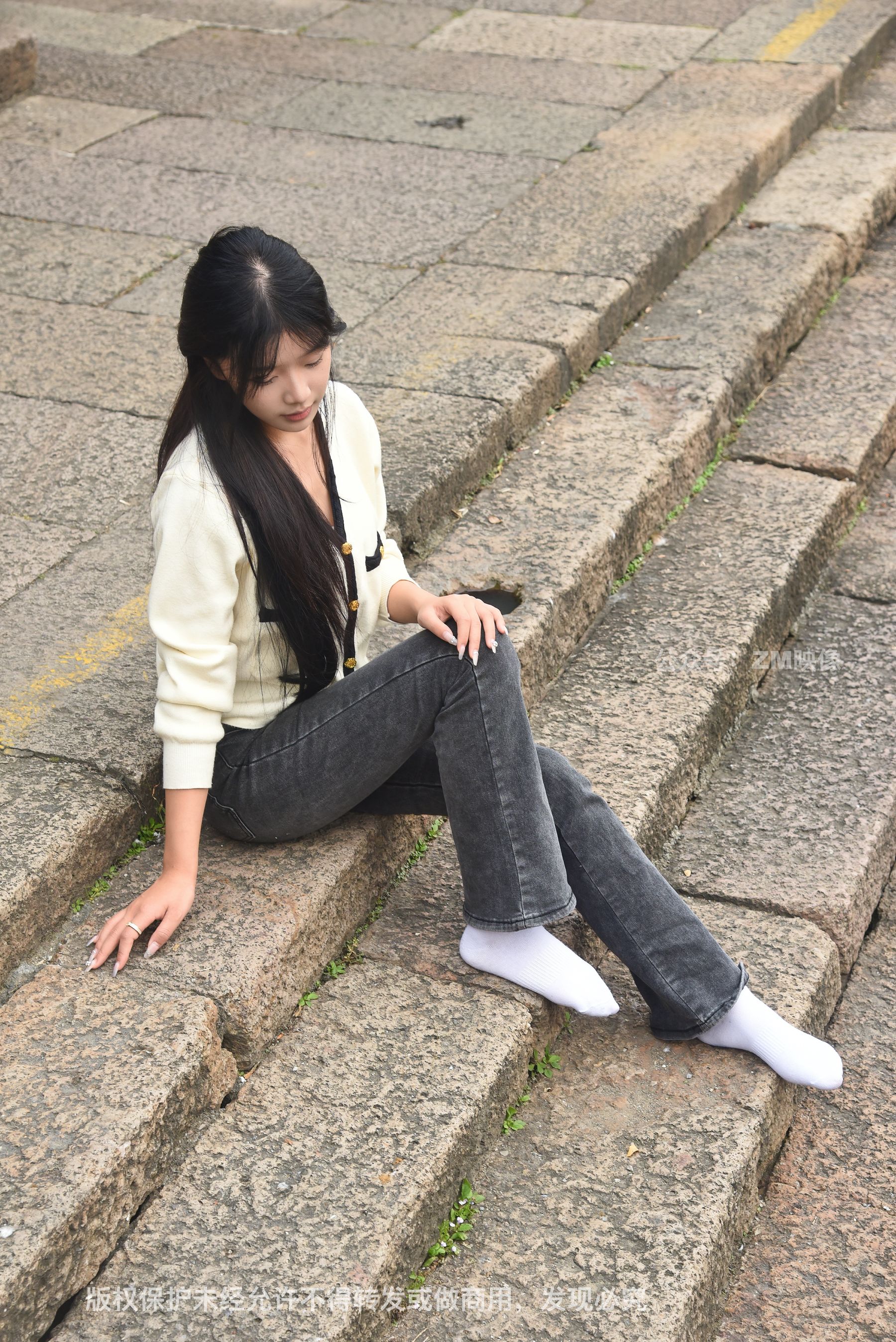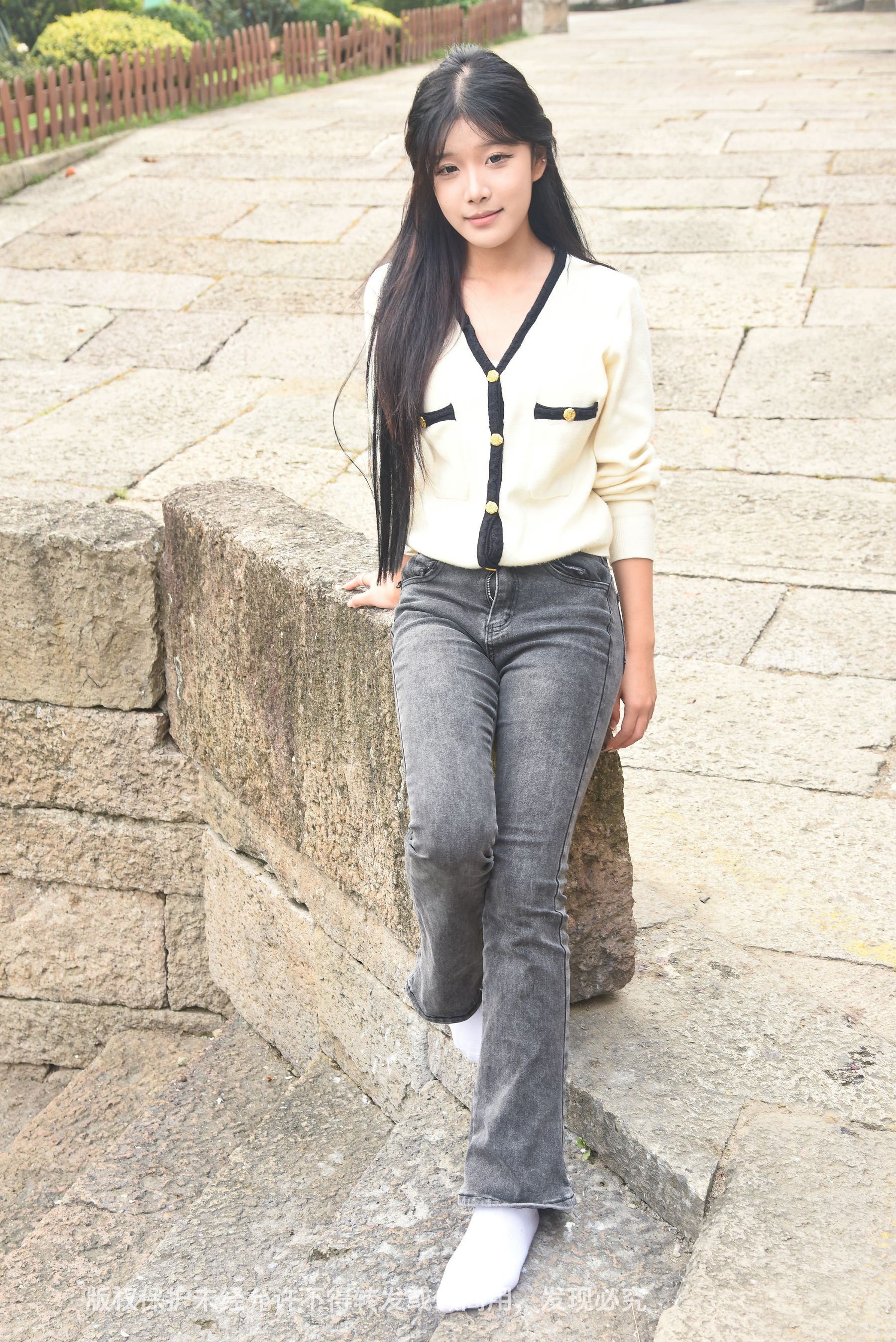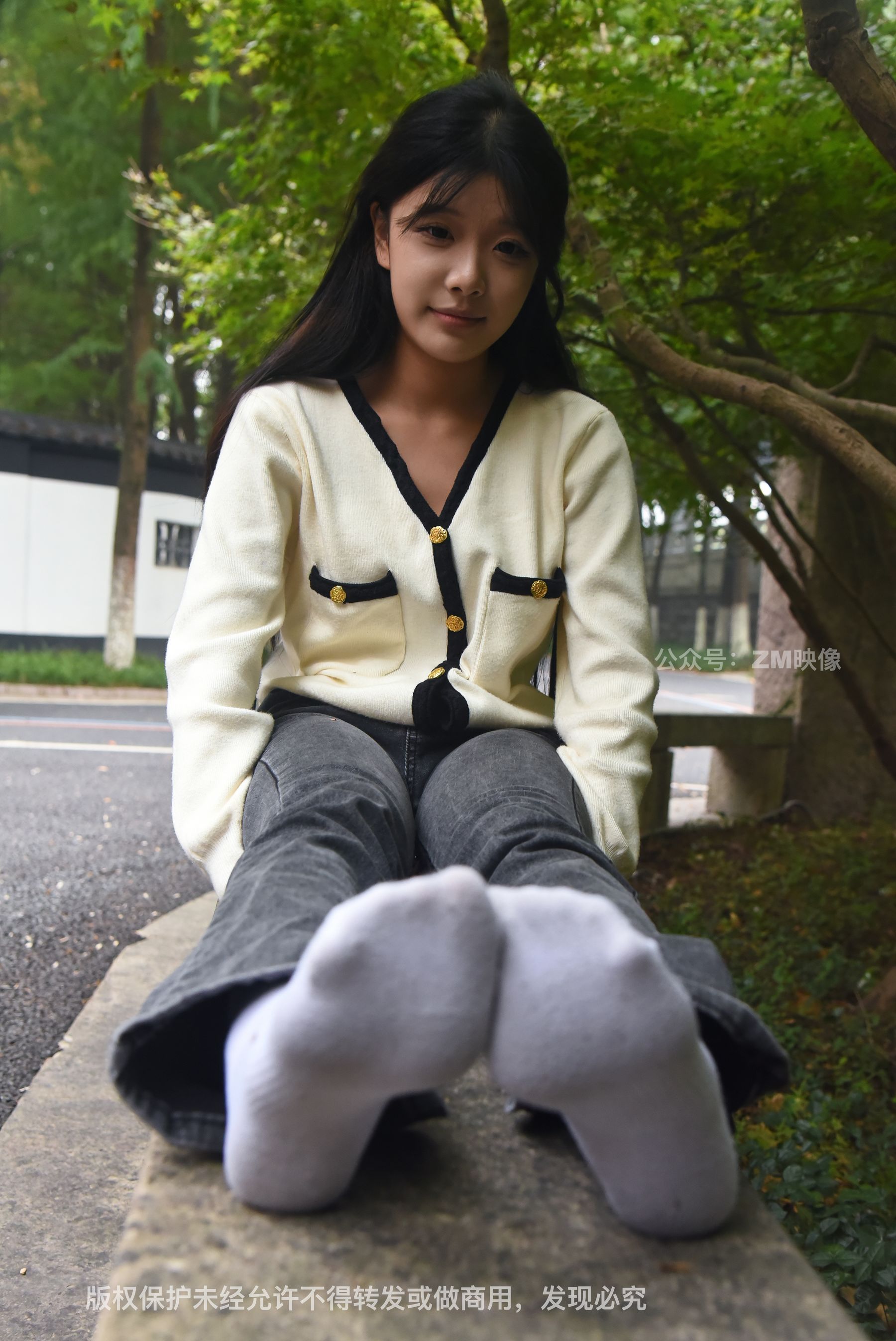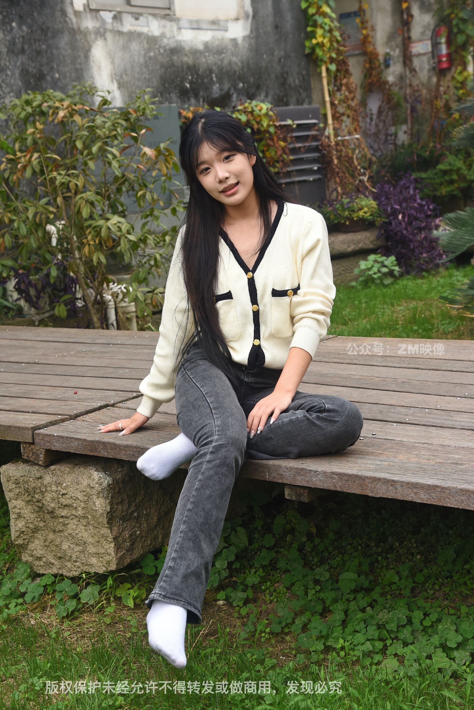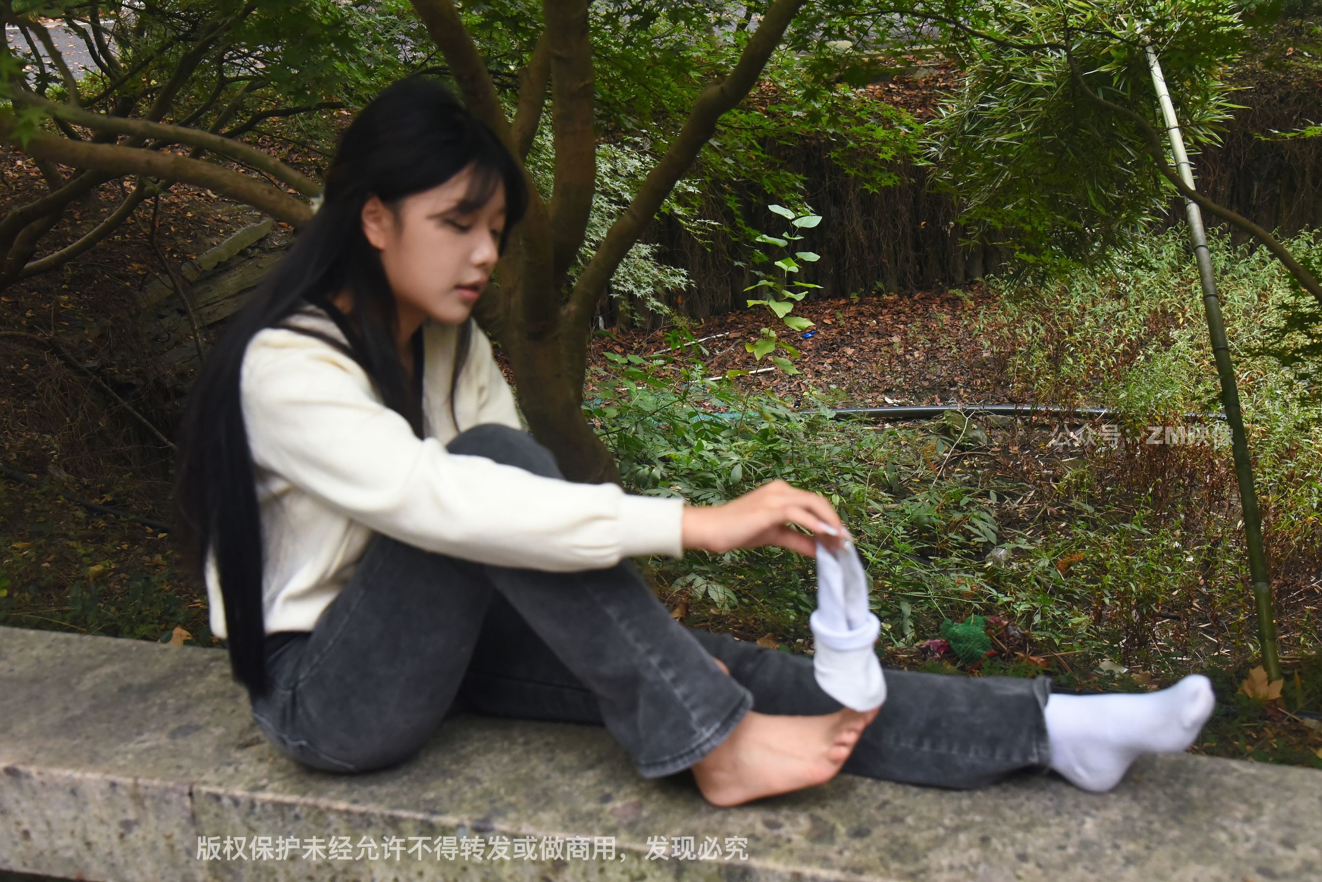 Gallery - [织梦映像] 少女牛仔裤草地白袜 - 图库库