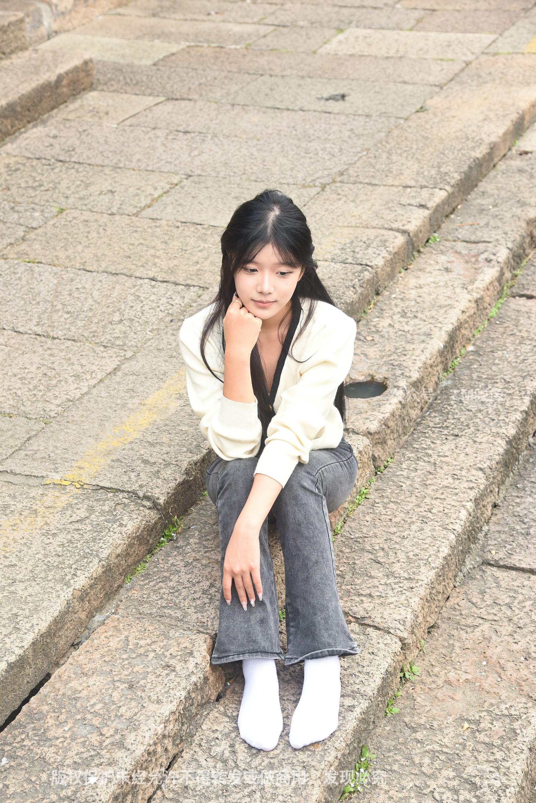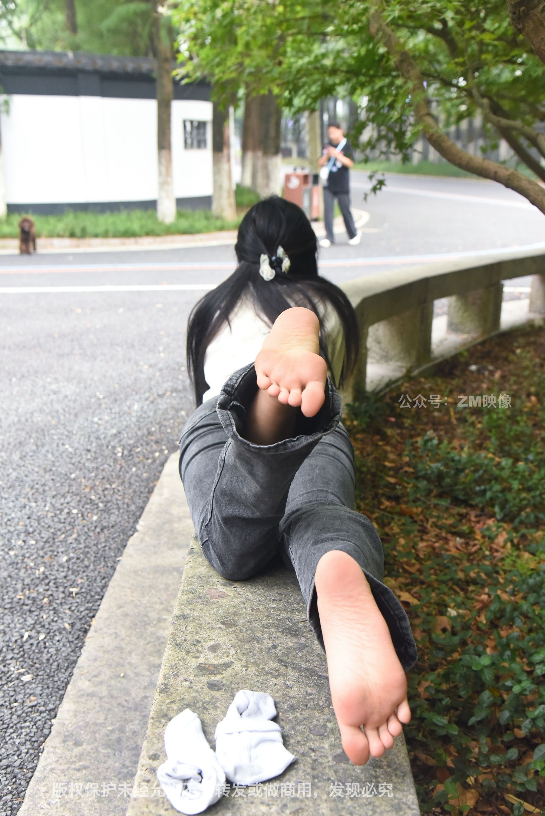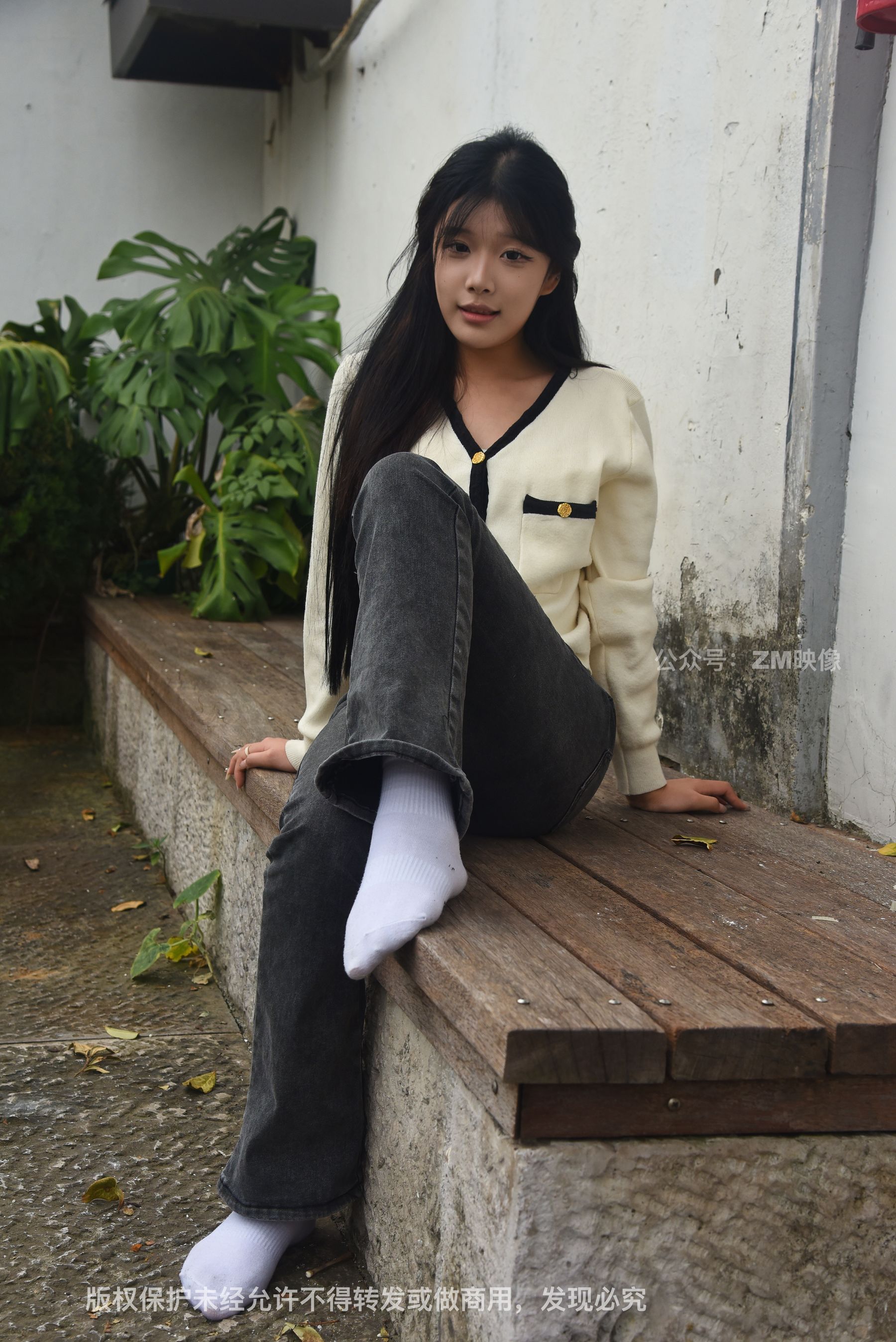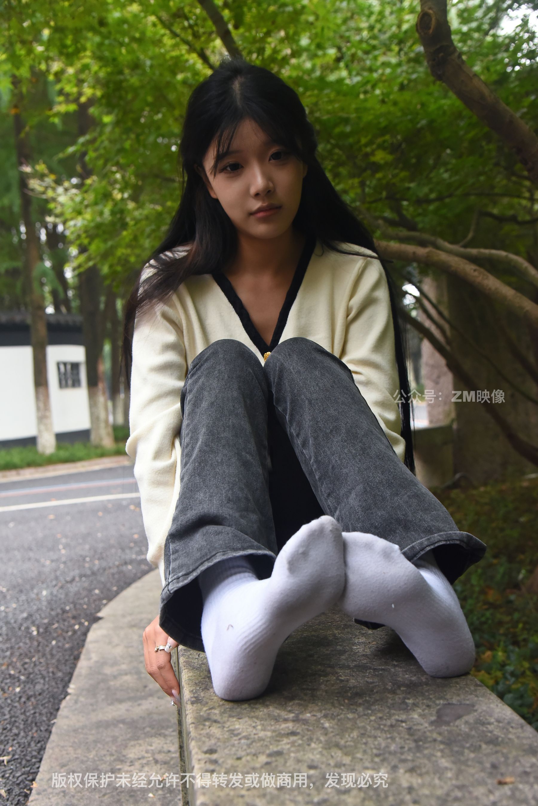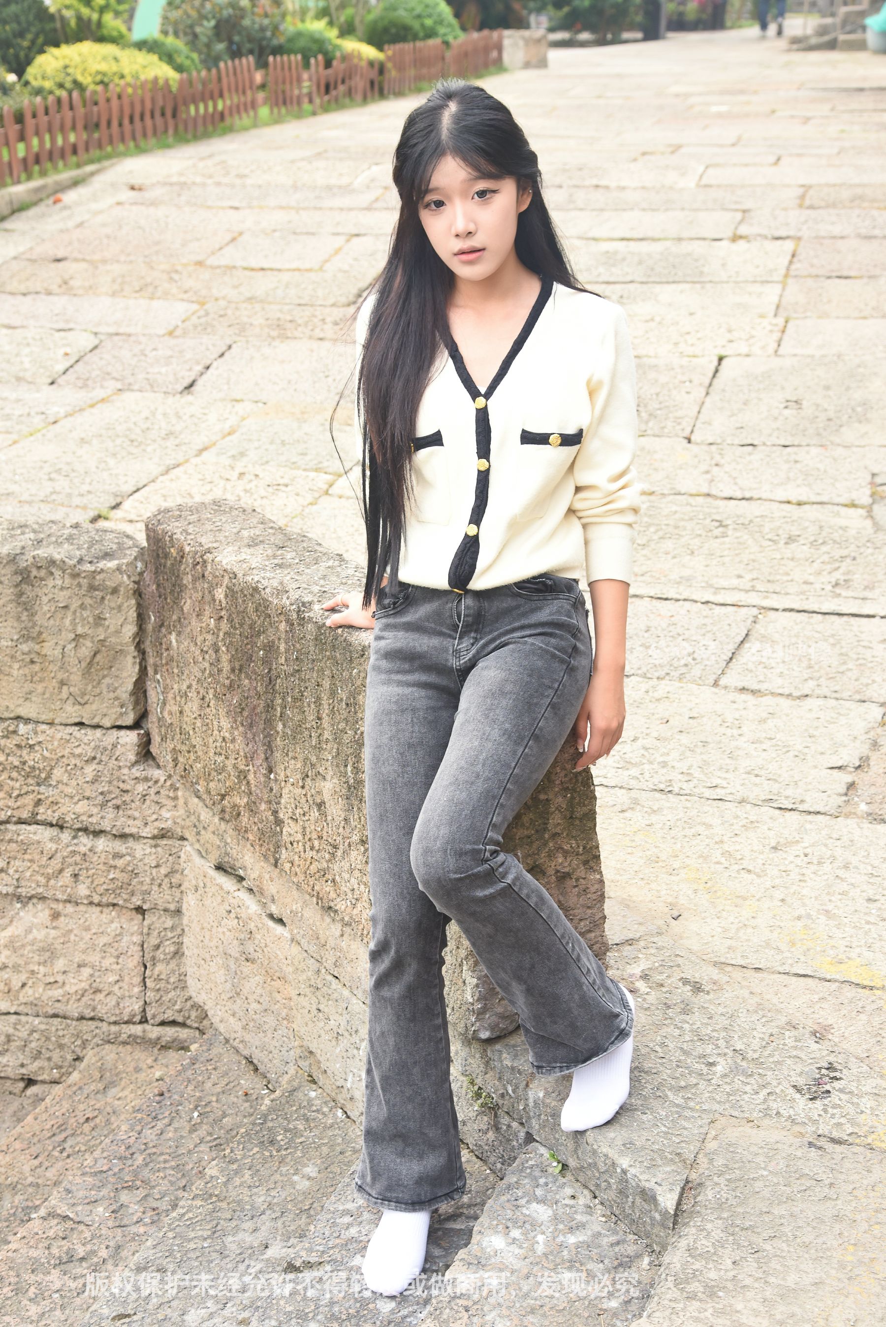 Gallery - [织梦映像] 少女牛仔裤草地白袜 - 图库库