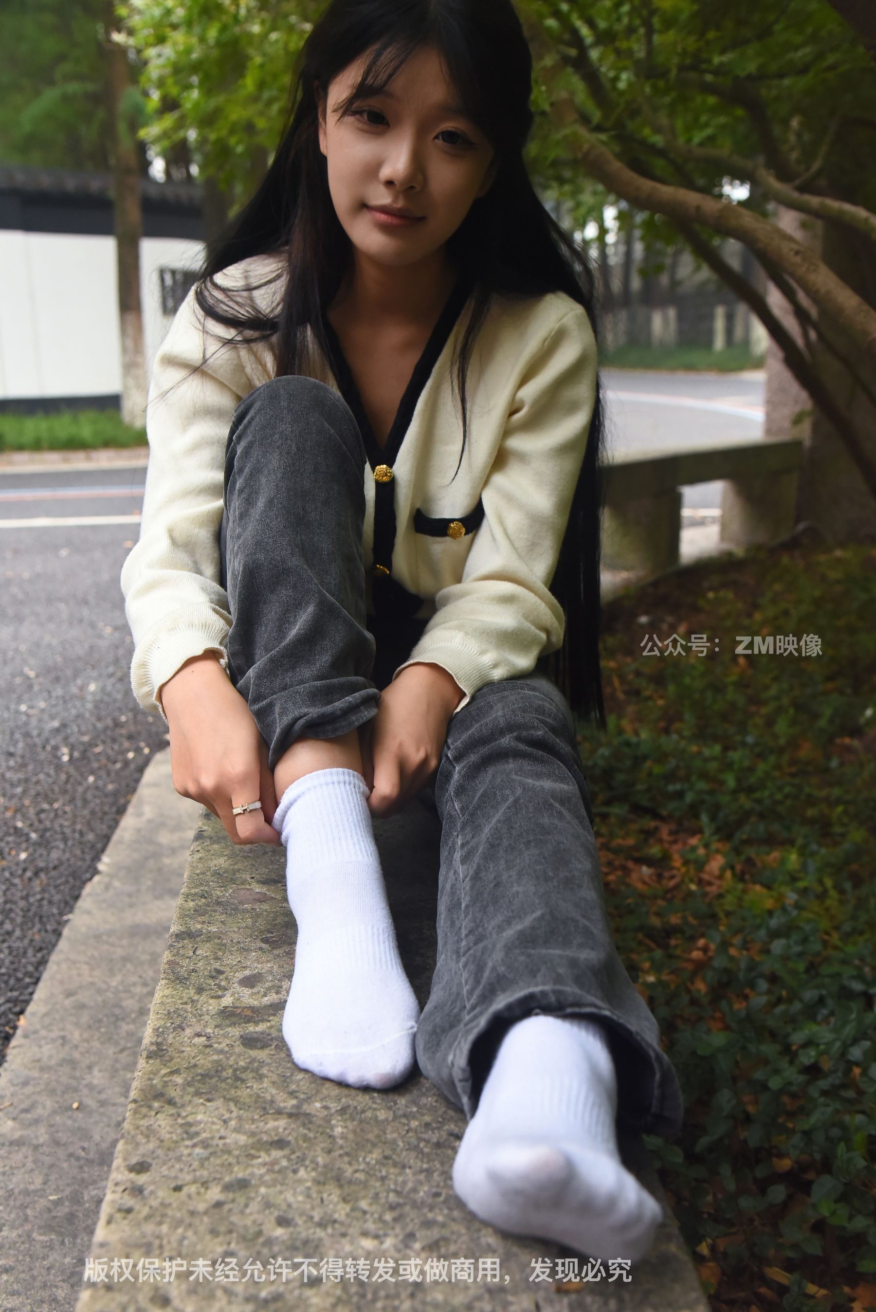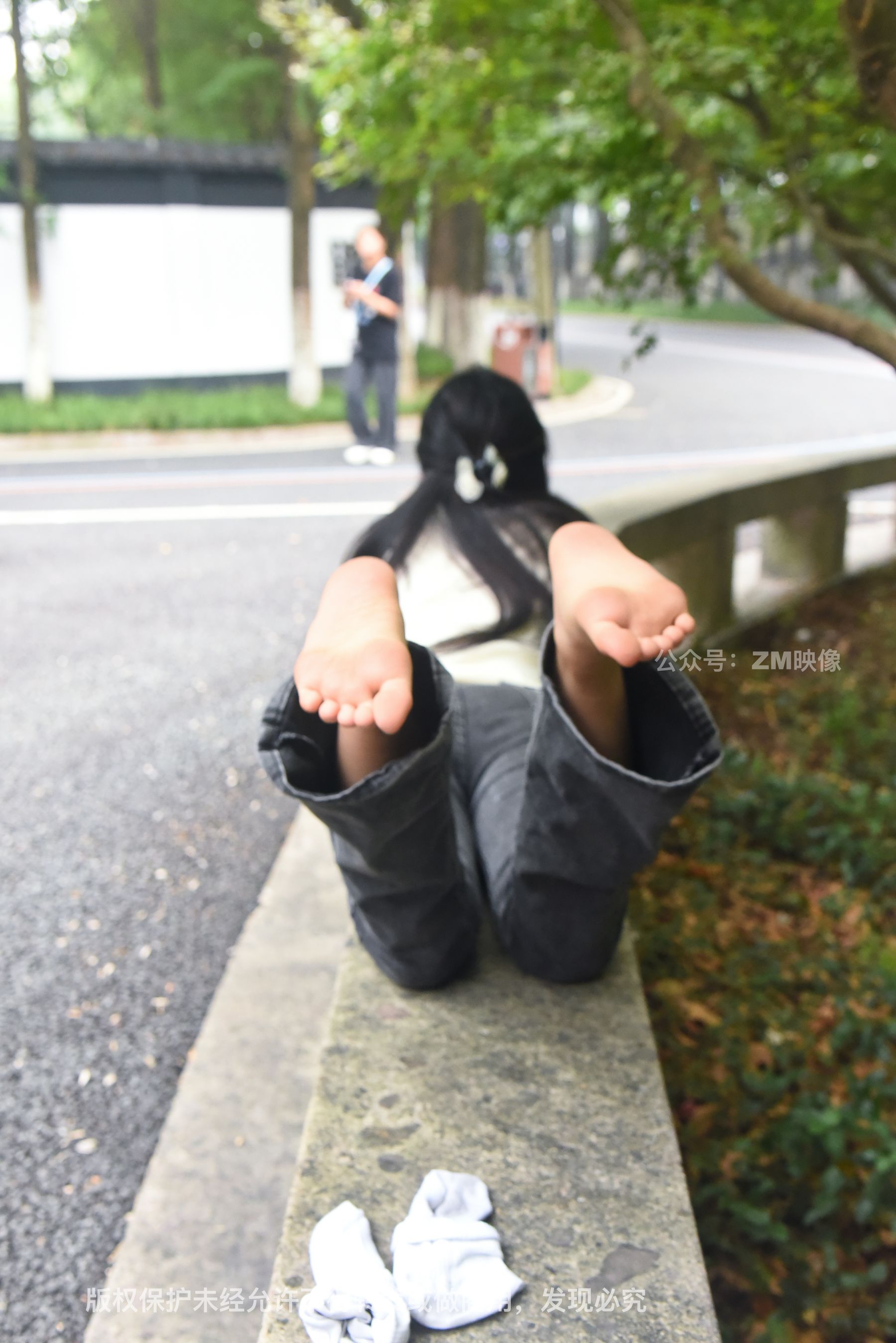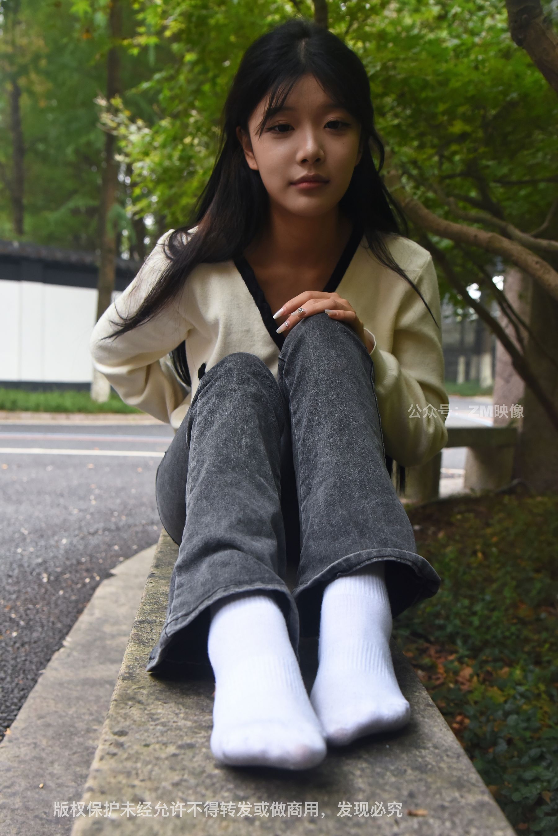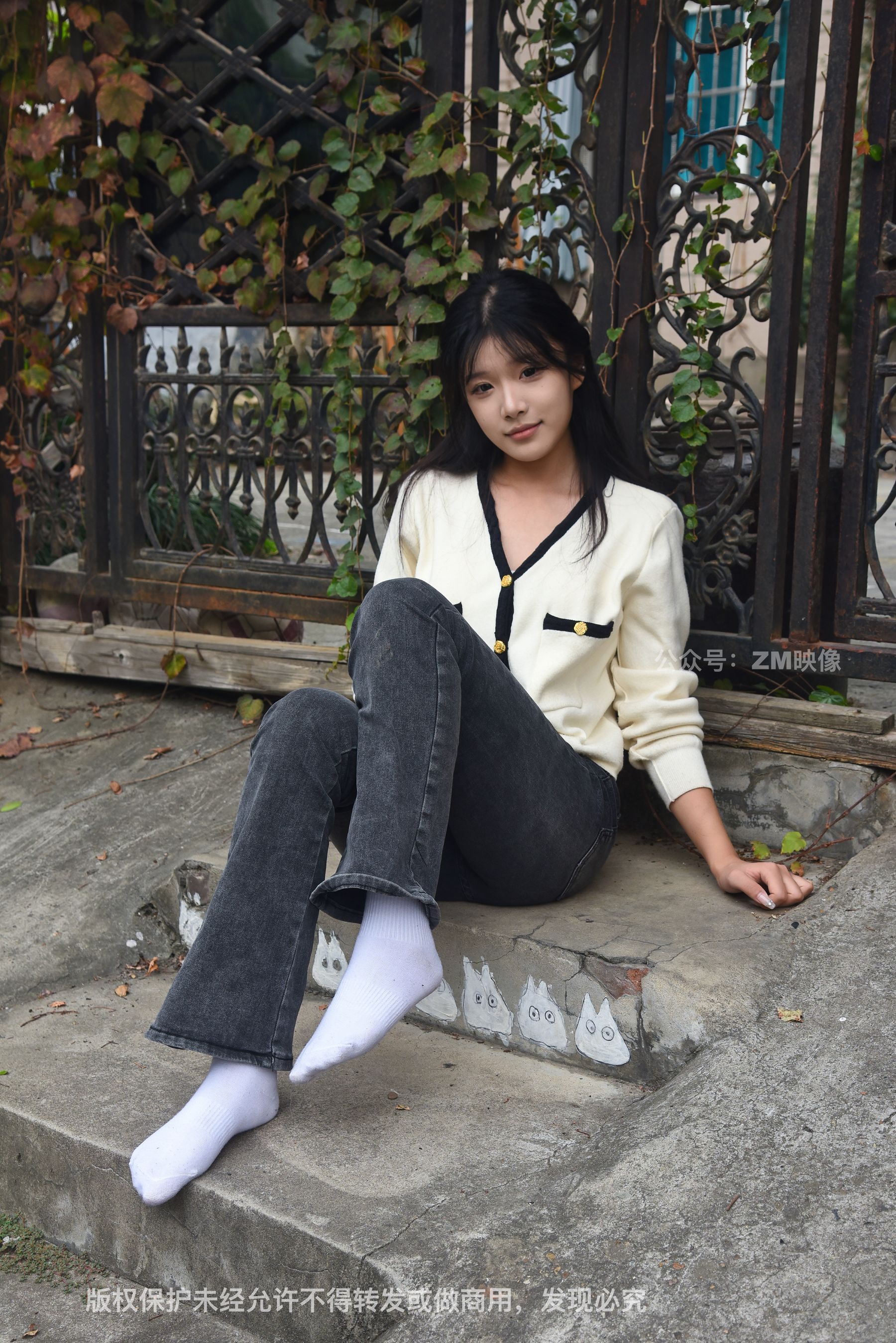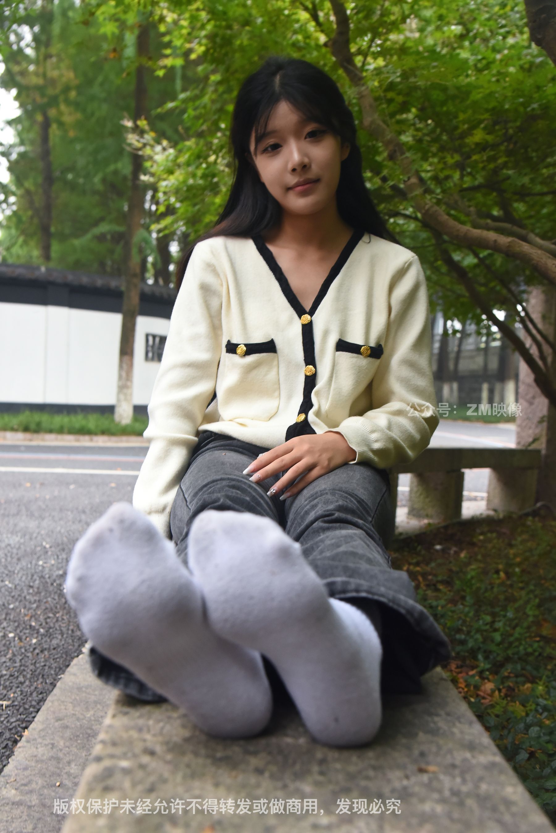 Gallery - [织梦映像] 少女牛仔裤草地白袜 - 图库库