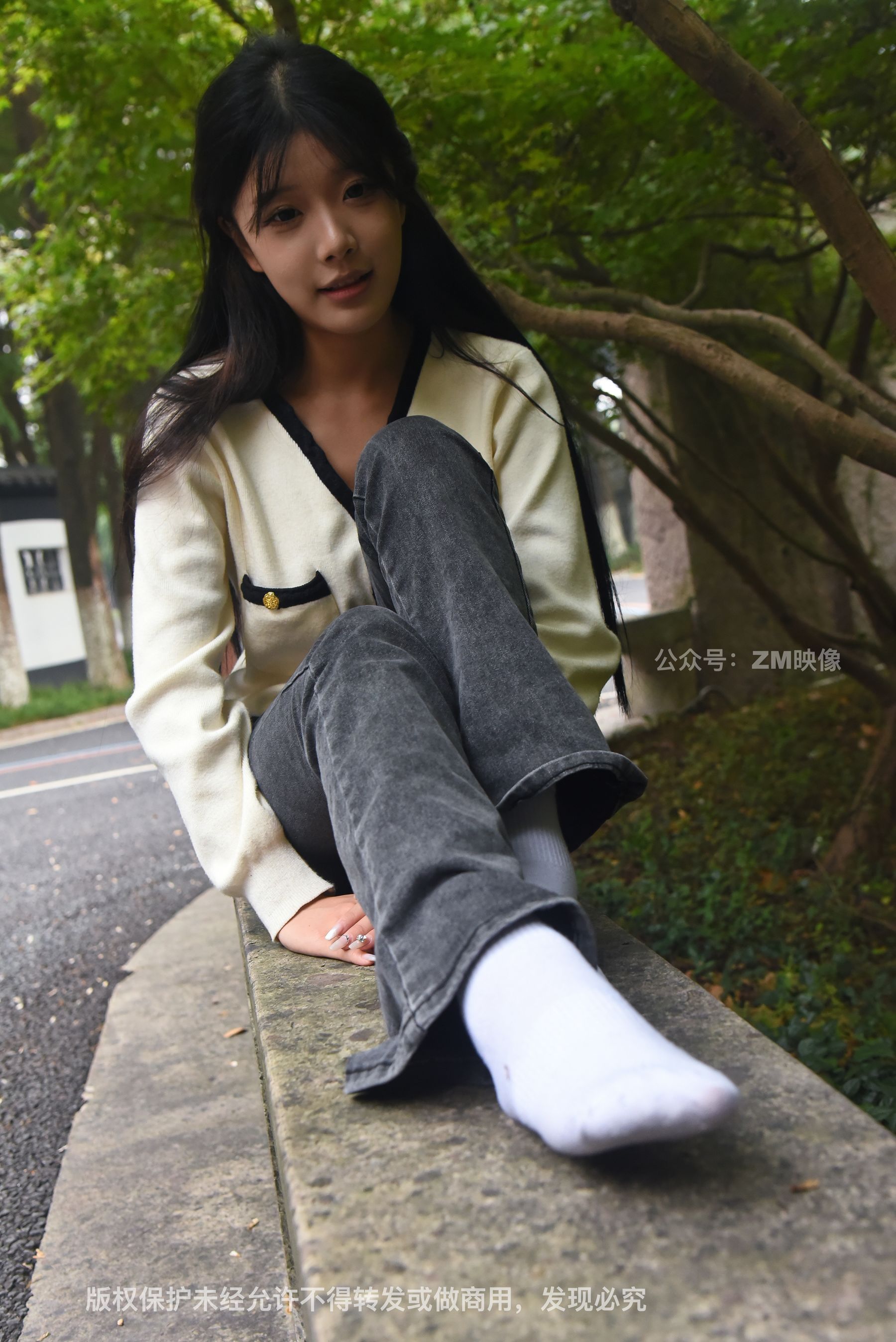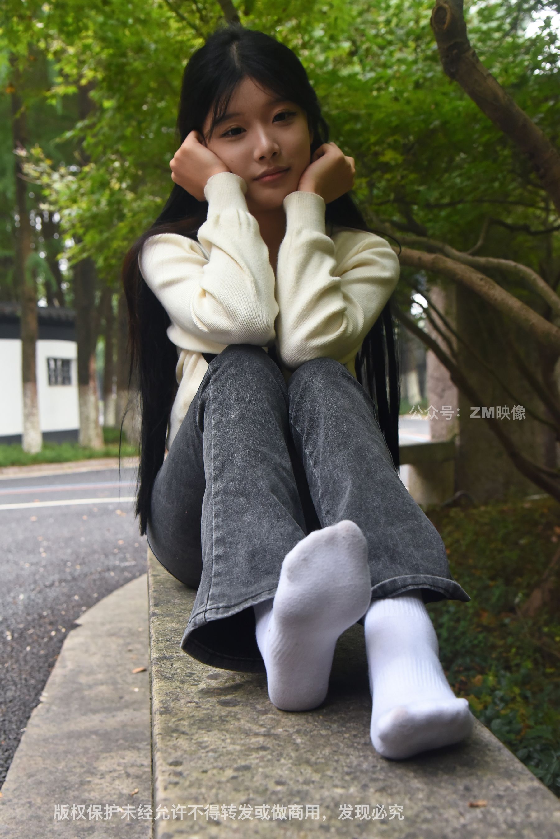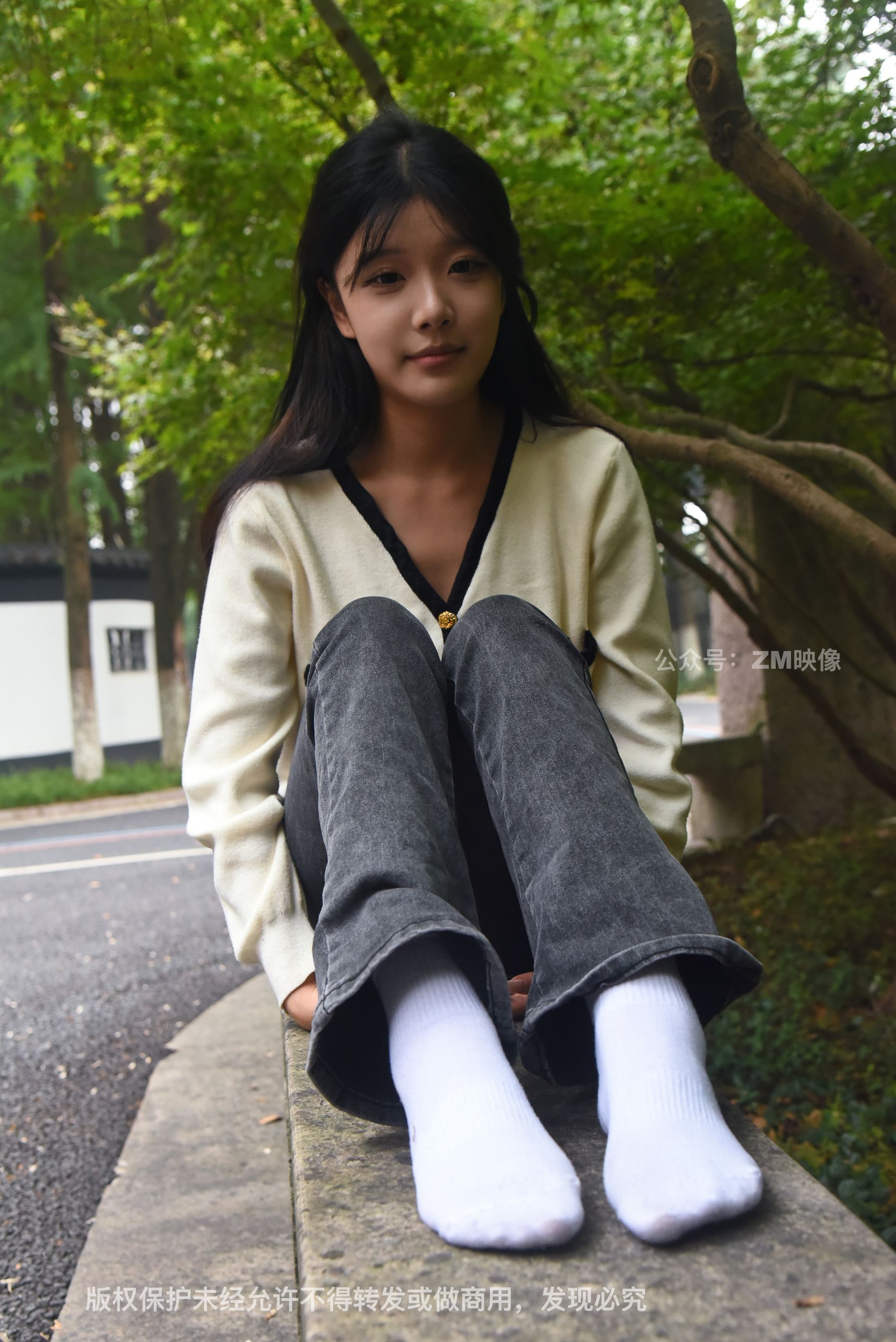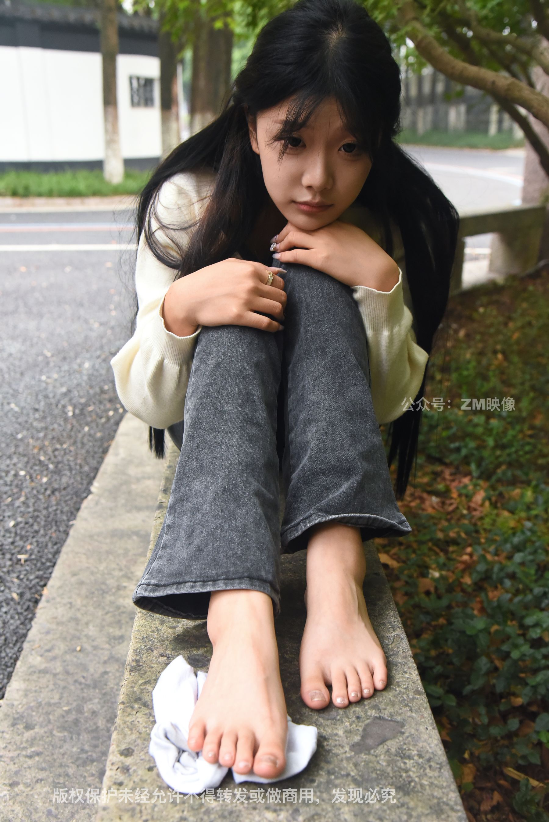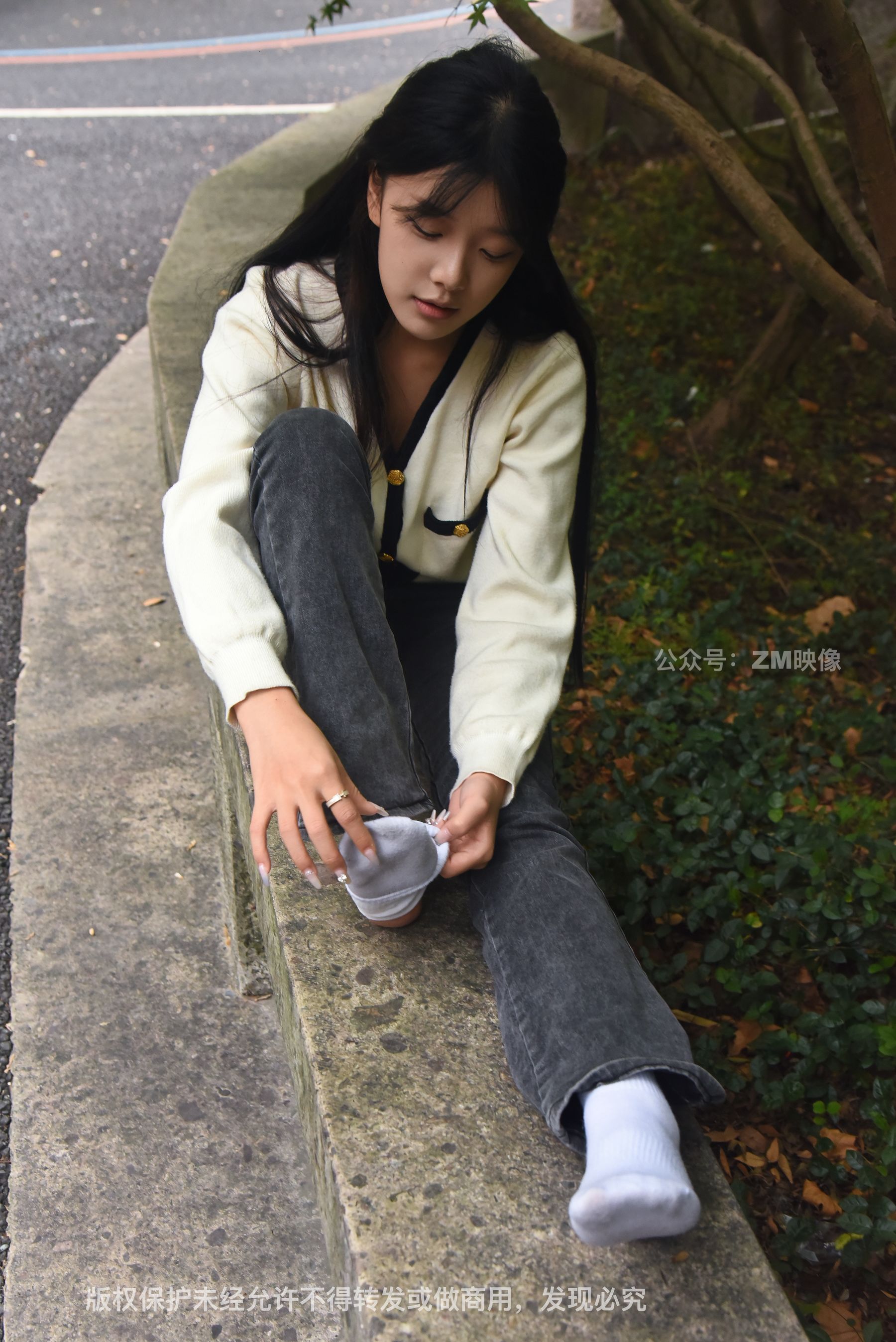 Gallery - [织梦映像] 少女牛仔裤草地白袜 - 图库库