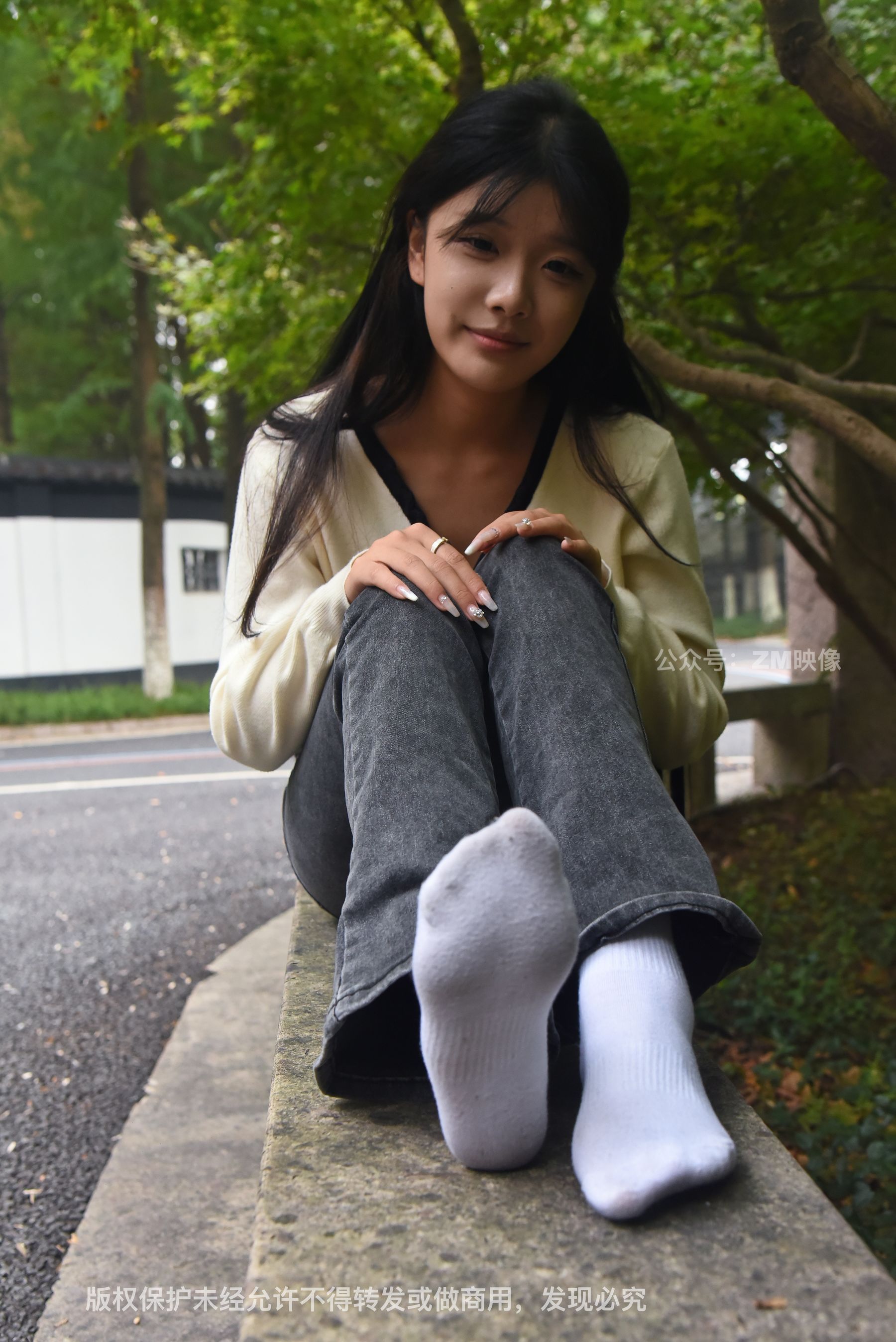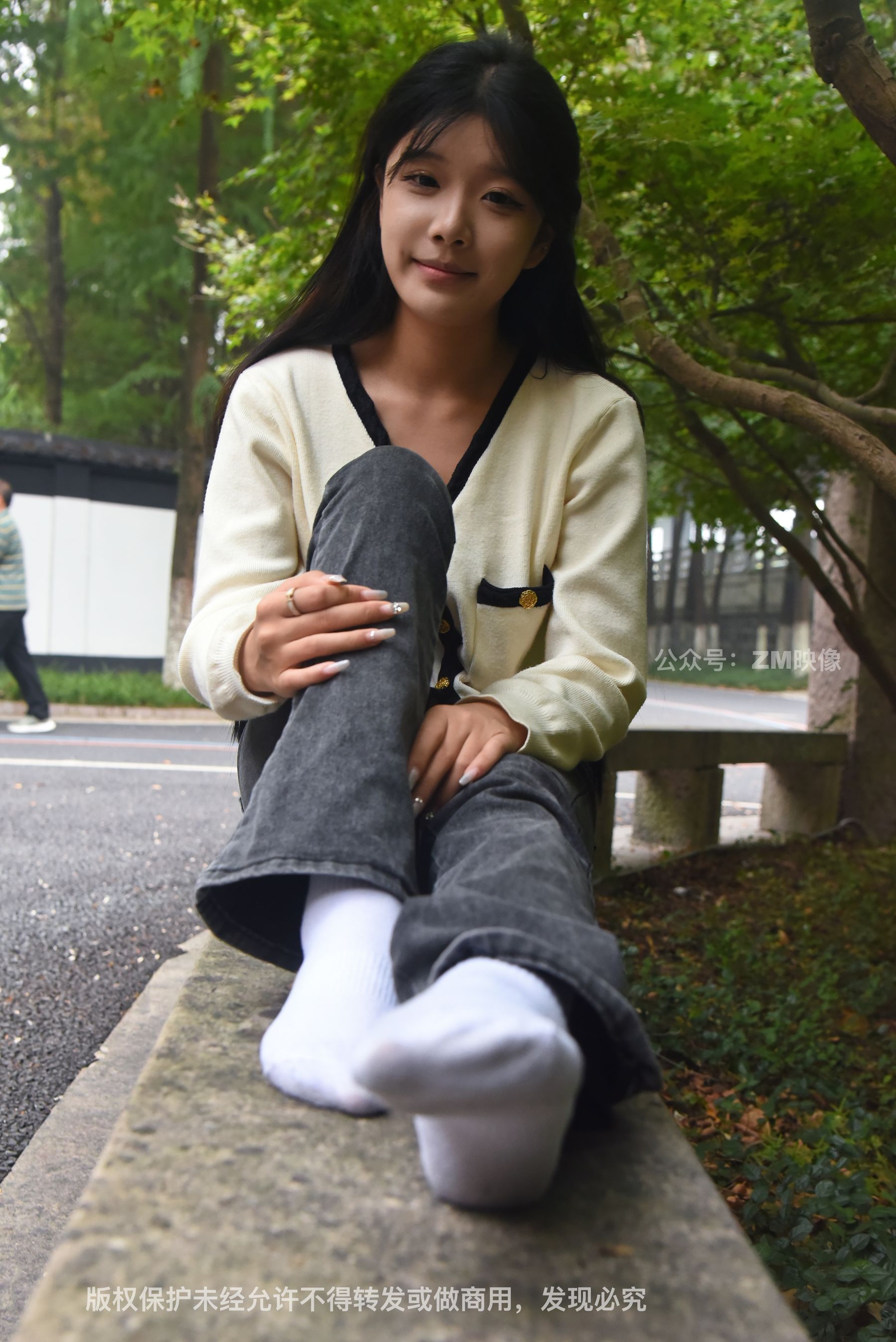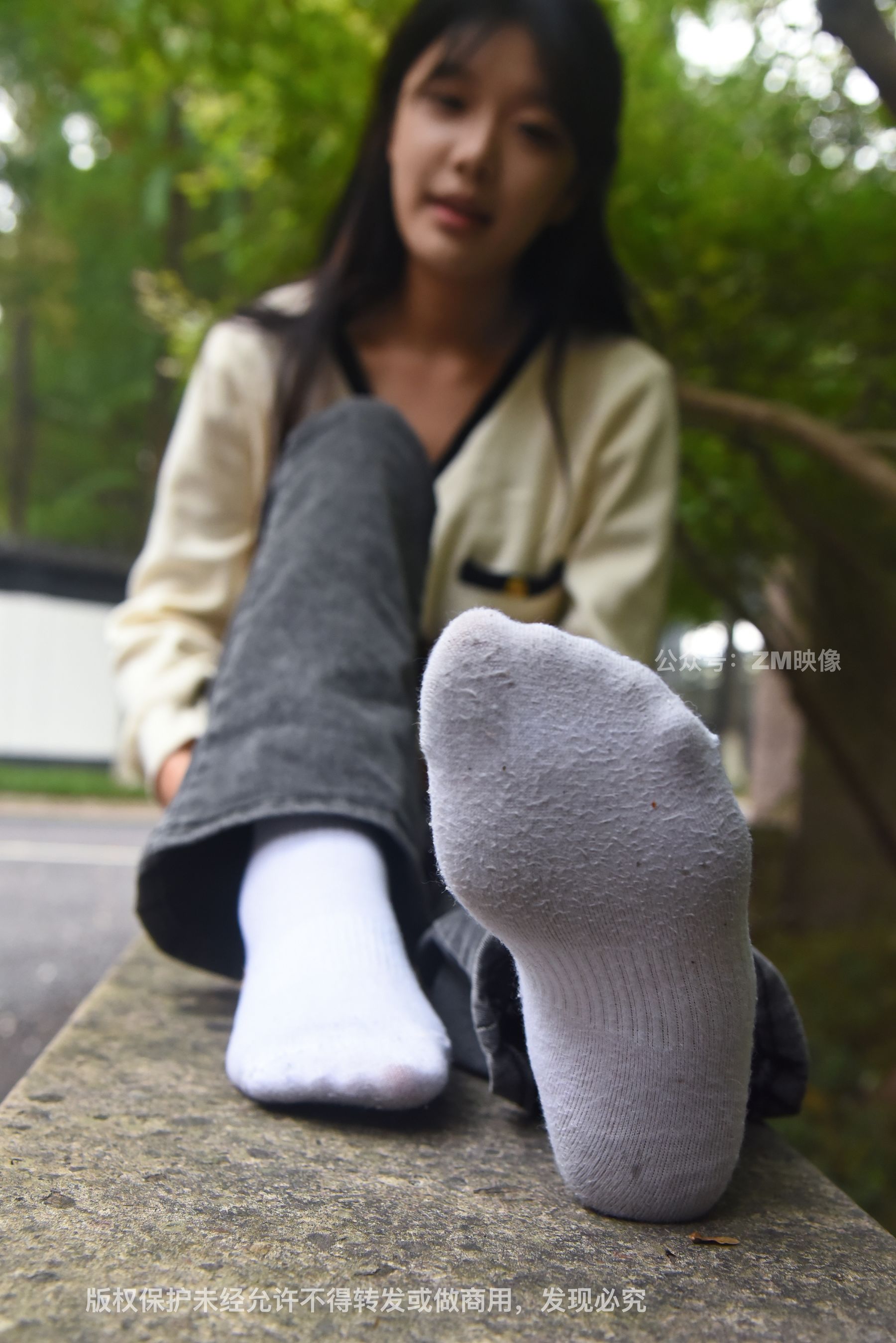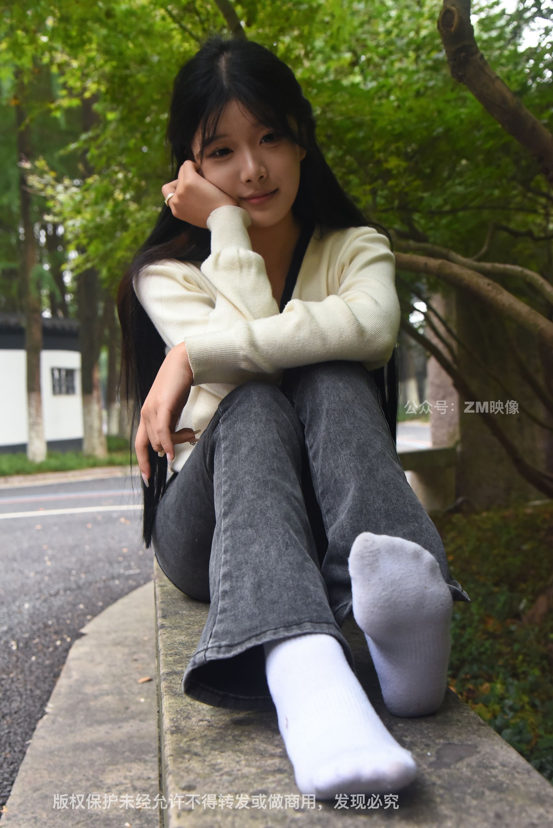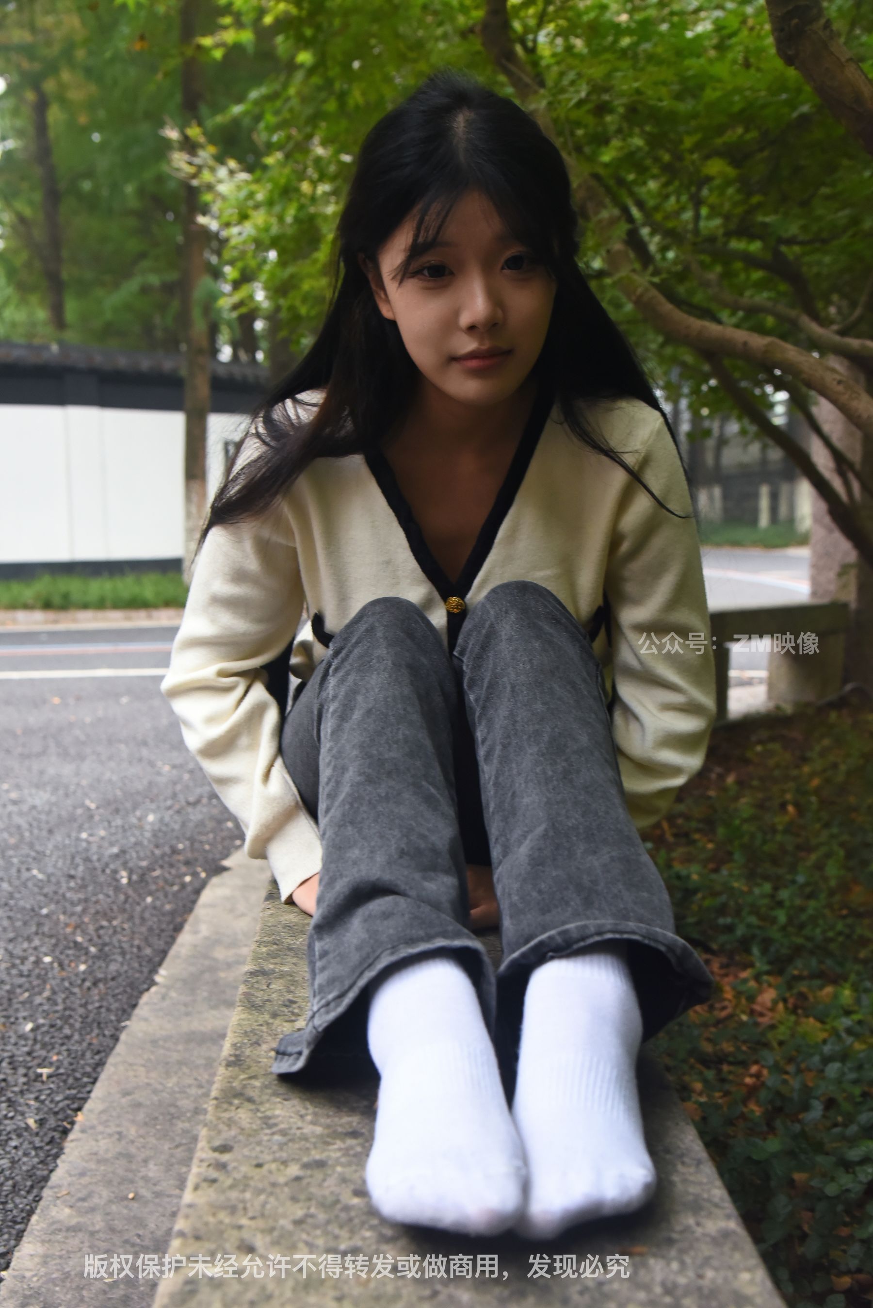 Gallery - [织梦映像] 少女牛仔裤草地白袜 - 图库库