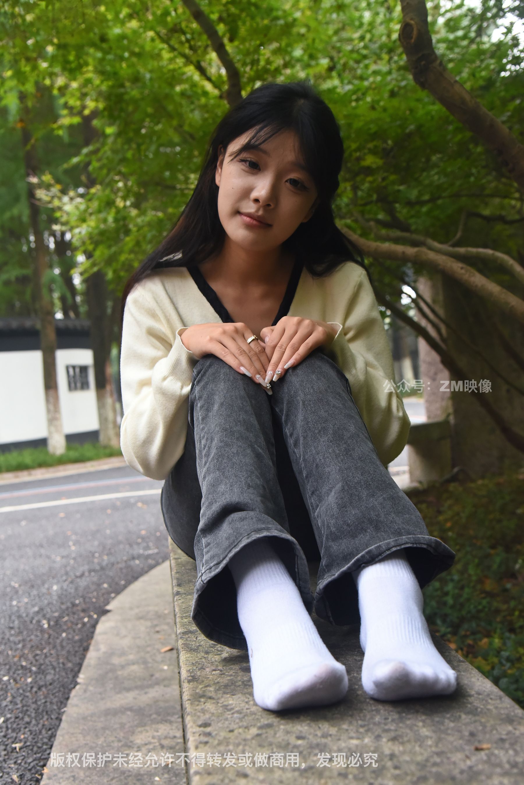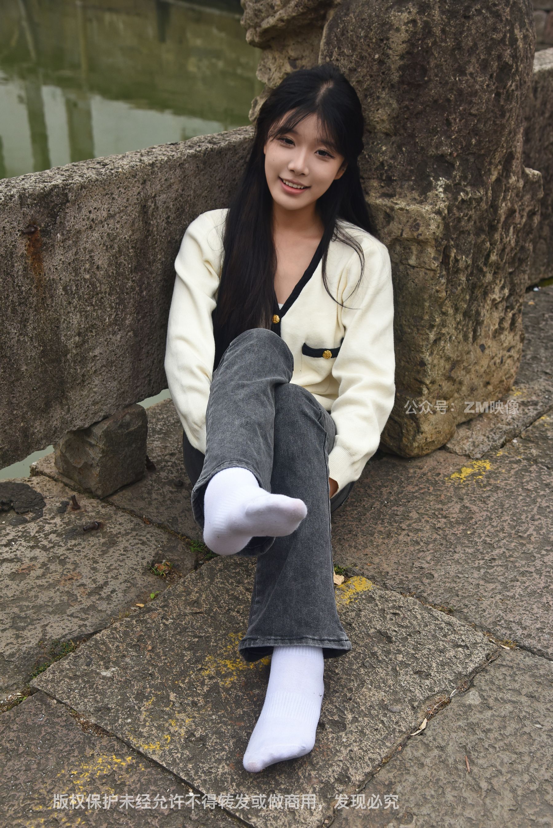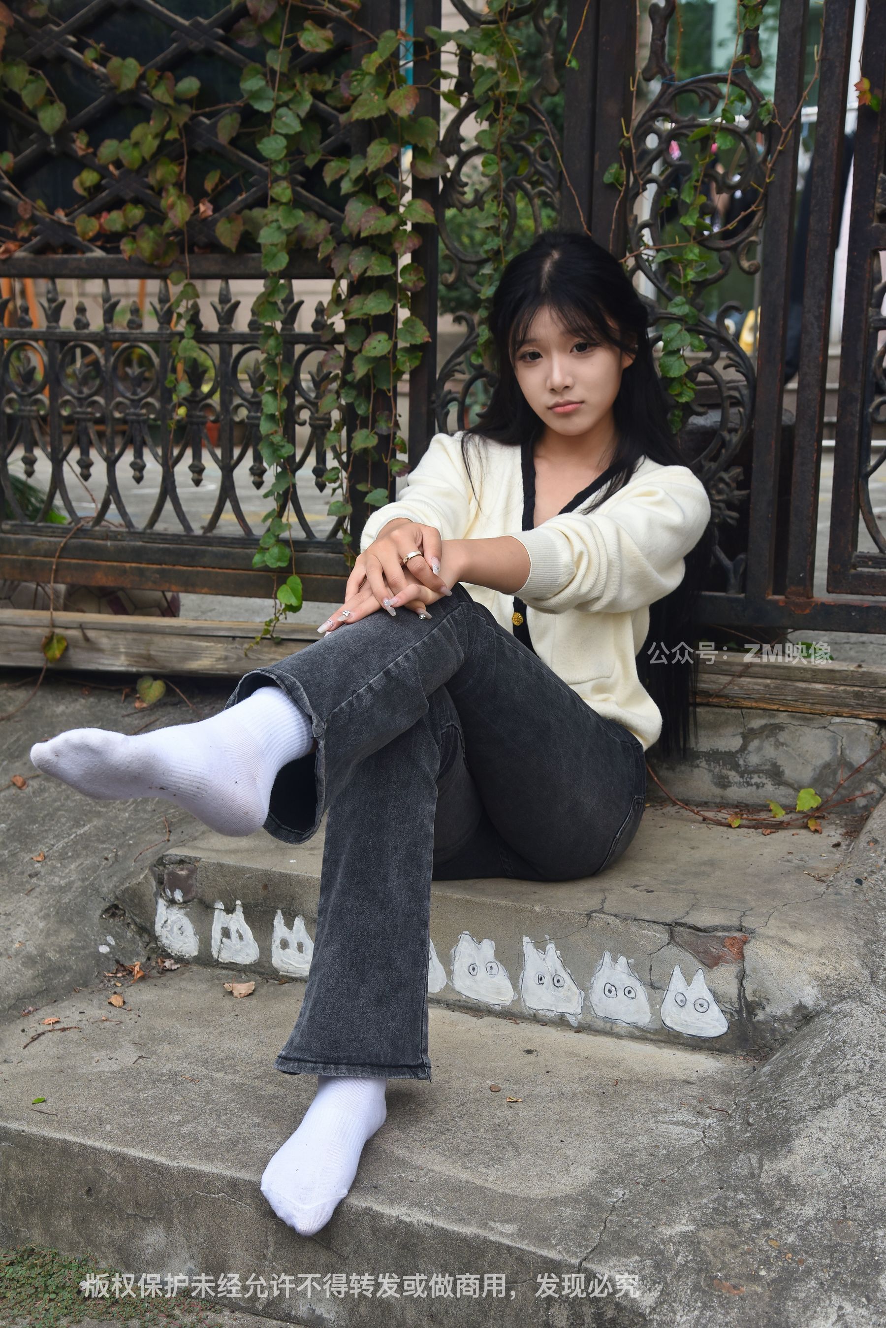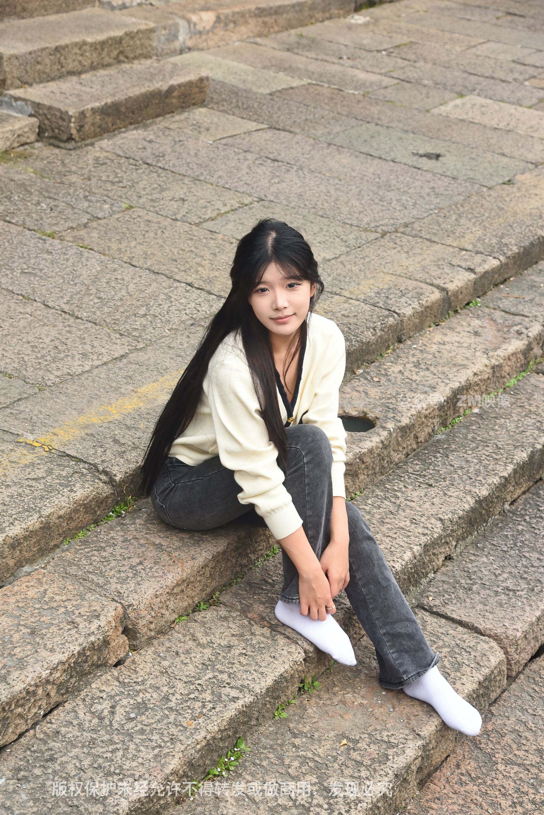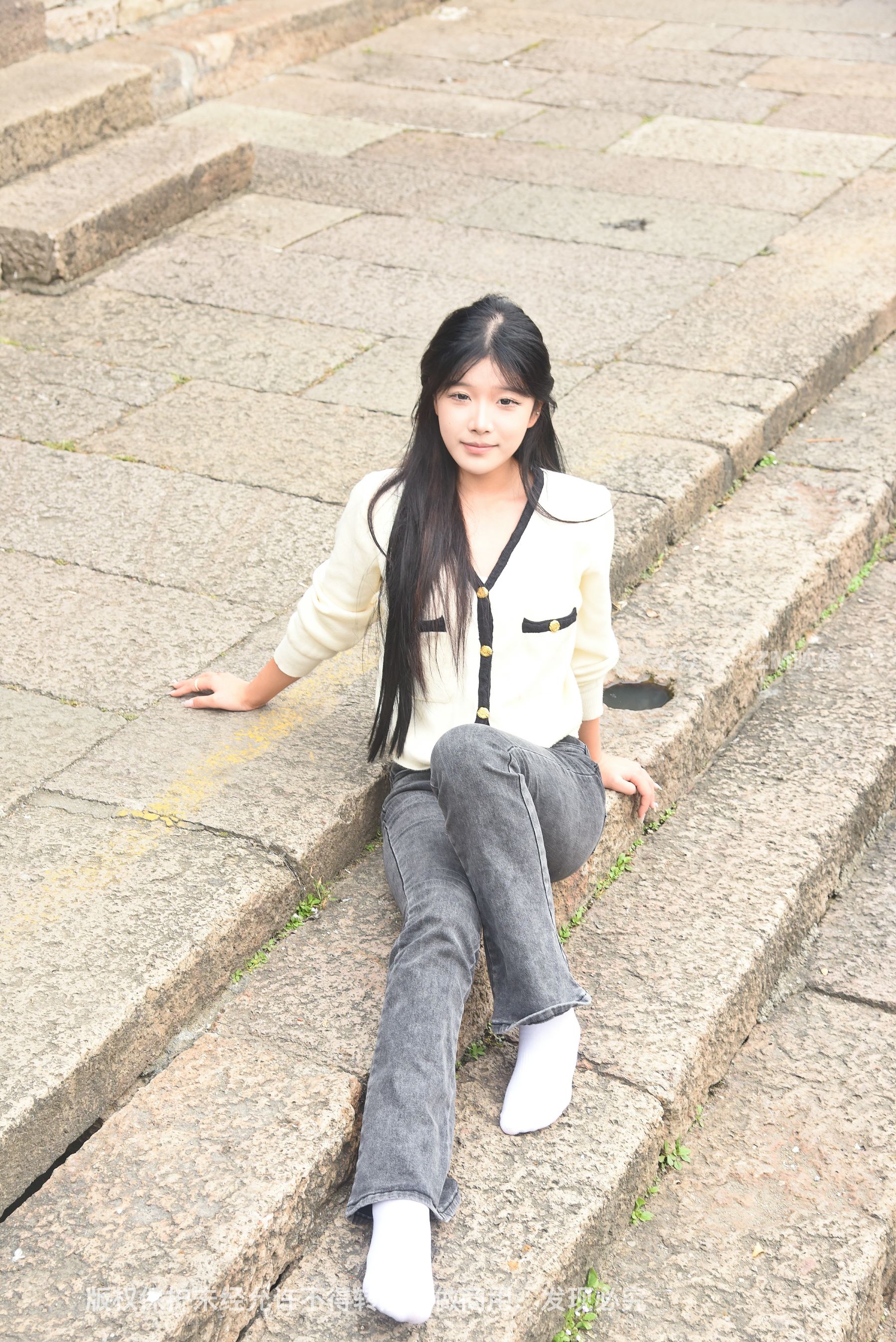 Gallery - [织梦映像] 少女牛仔裤草地白袜 - 图库库