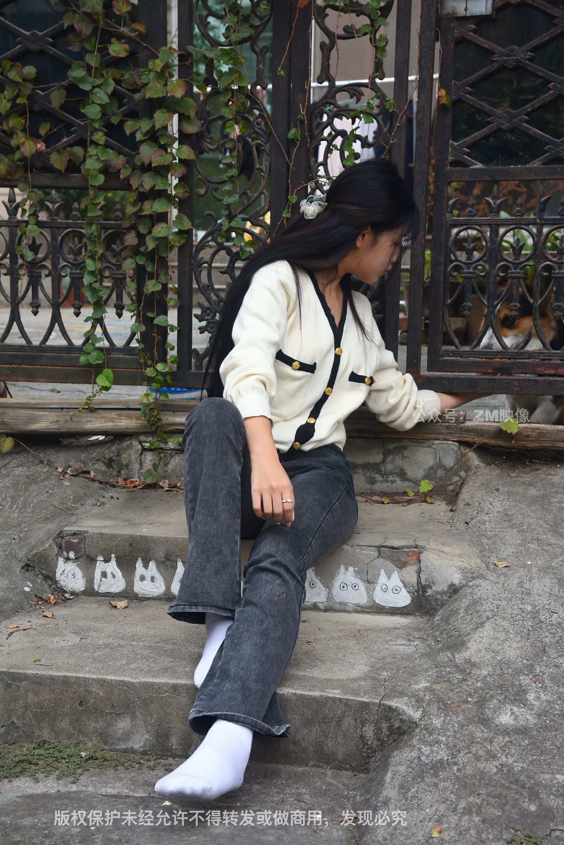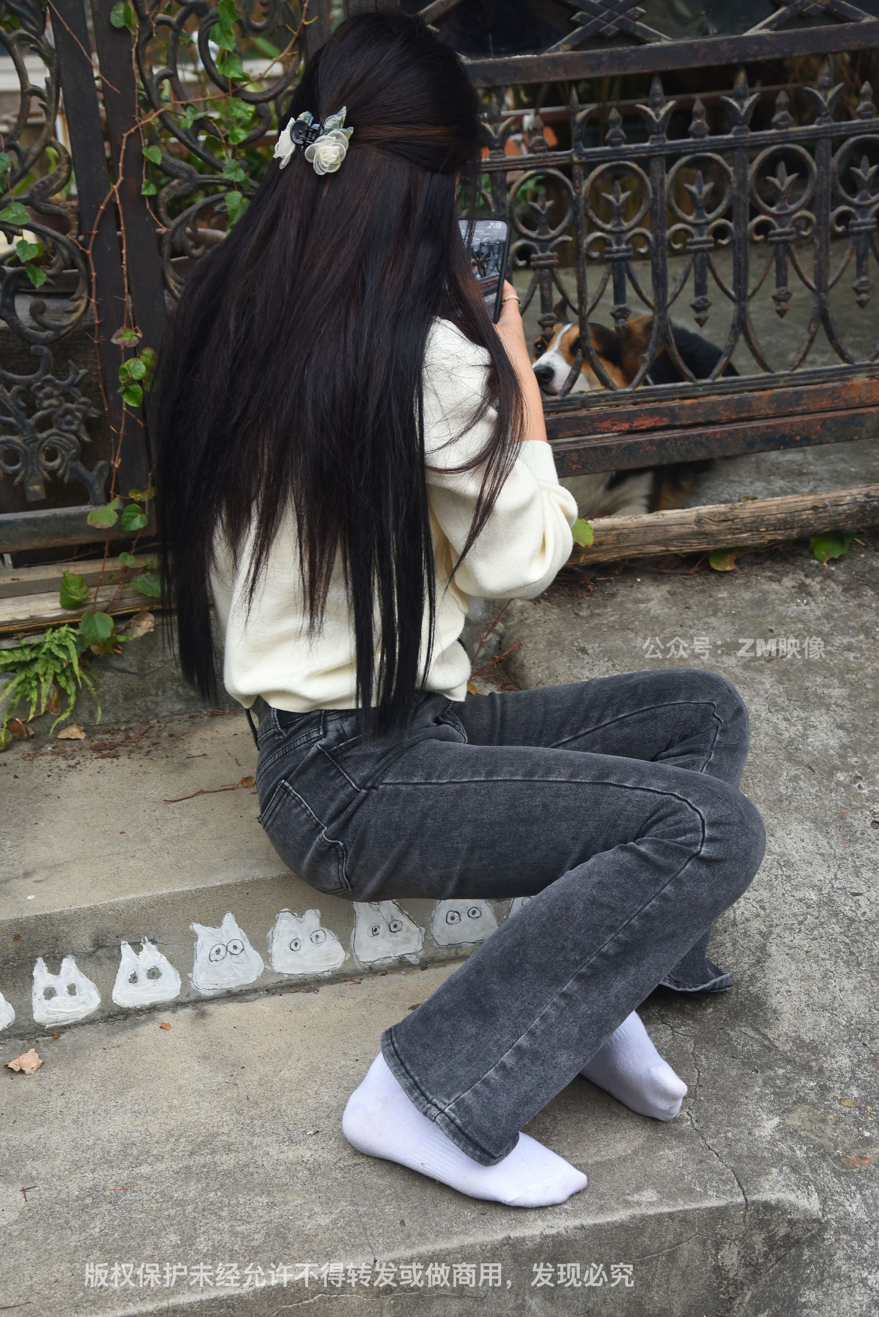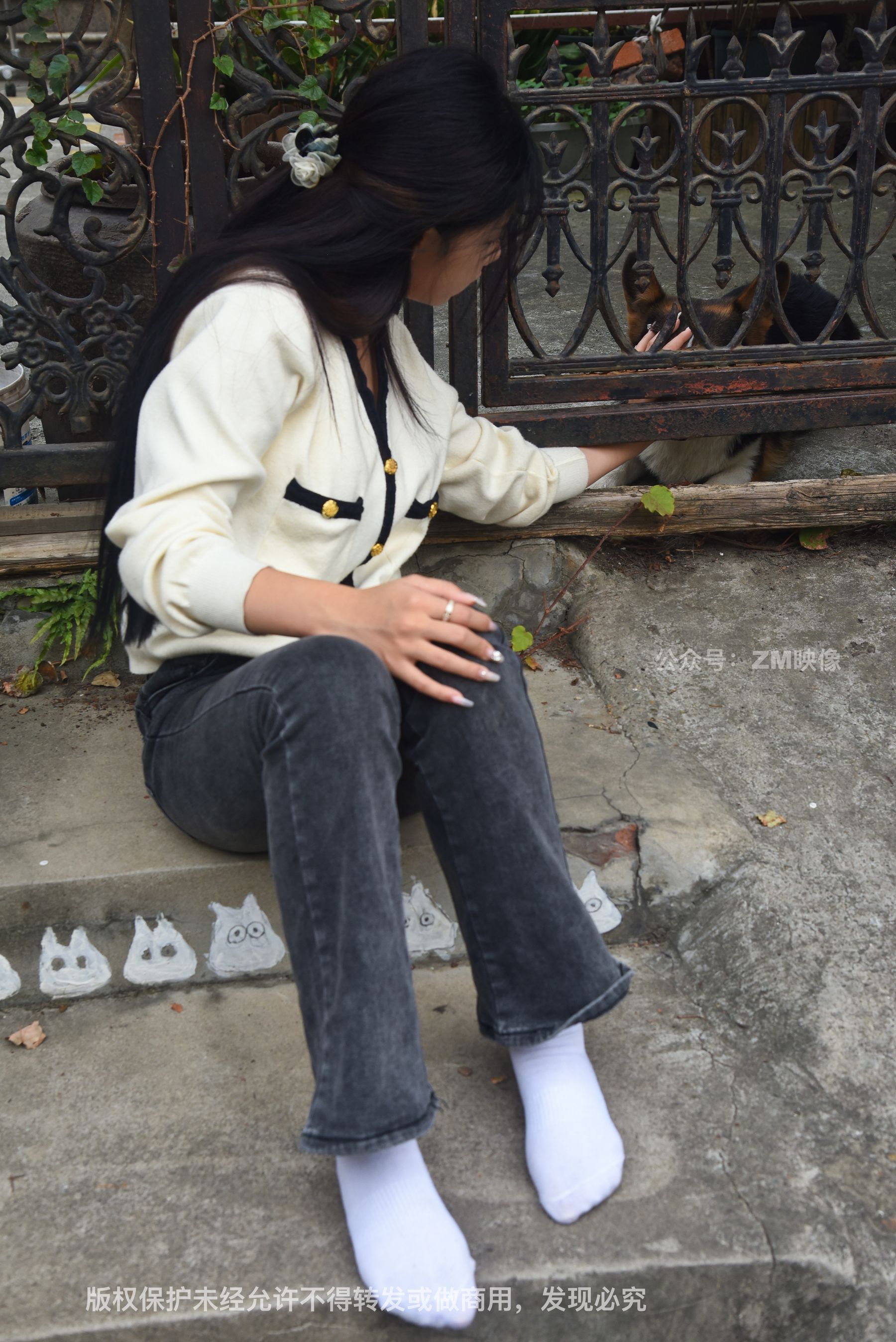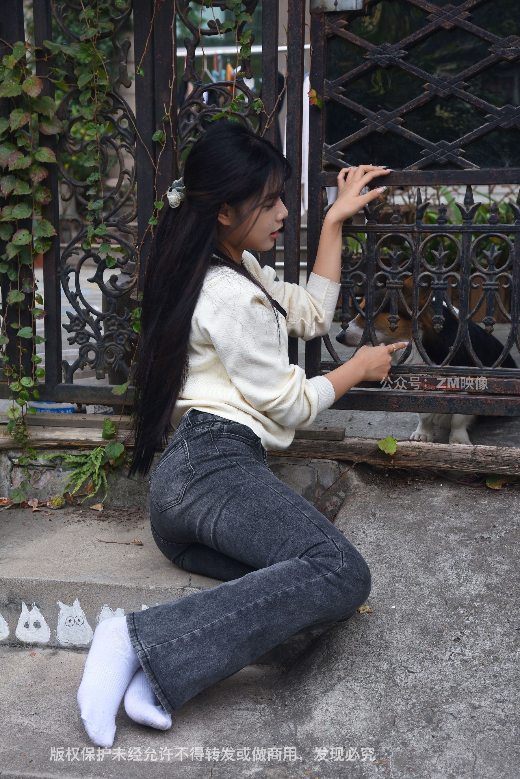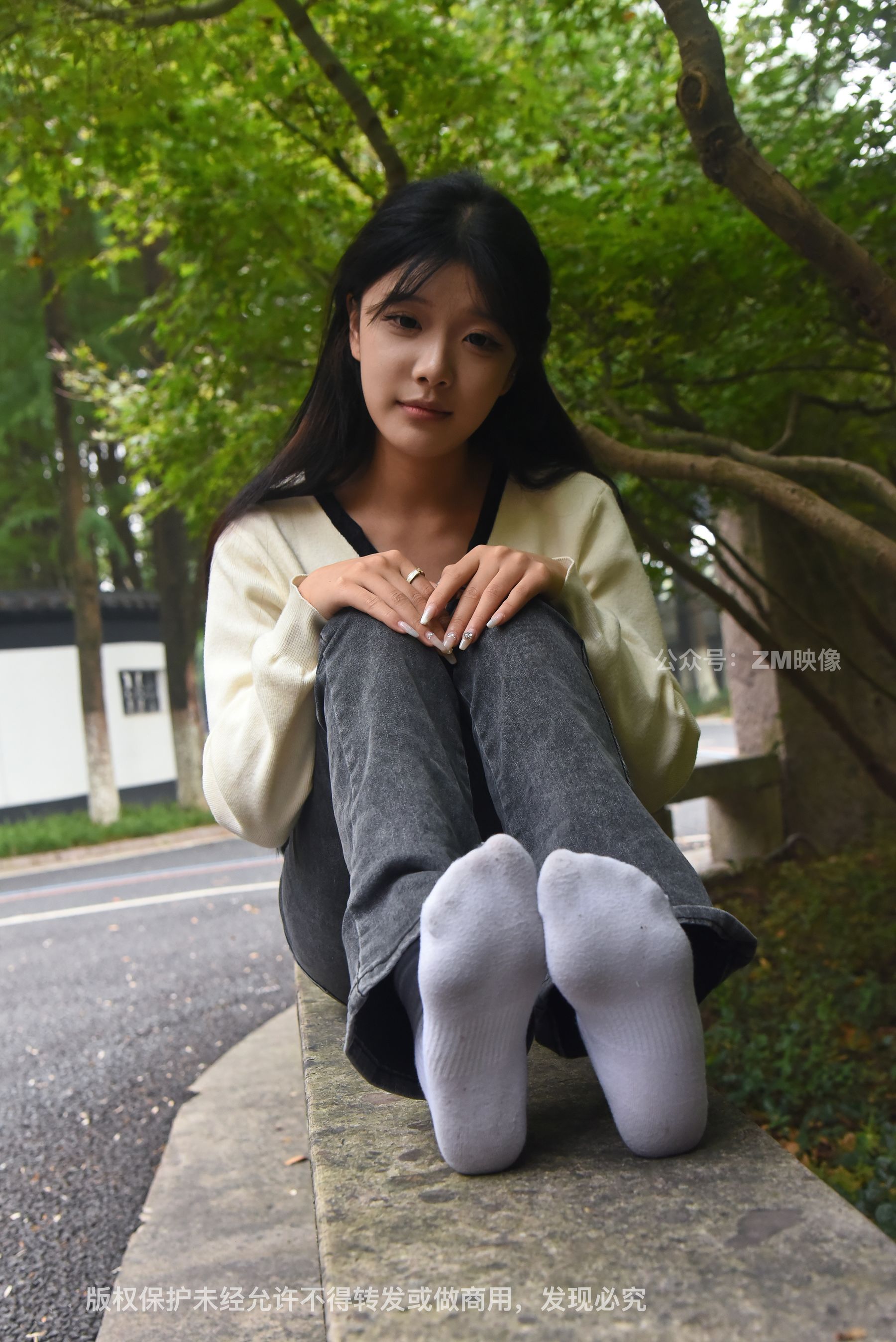 Gallery - [织梦映像] 少女牛仔裤草地白袜 - 图库库
